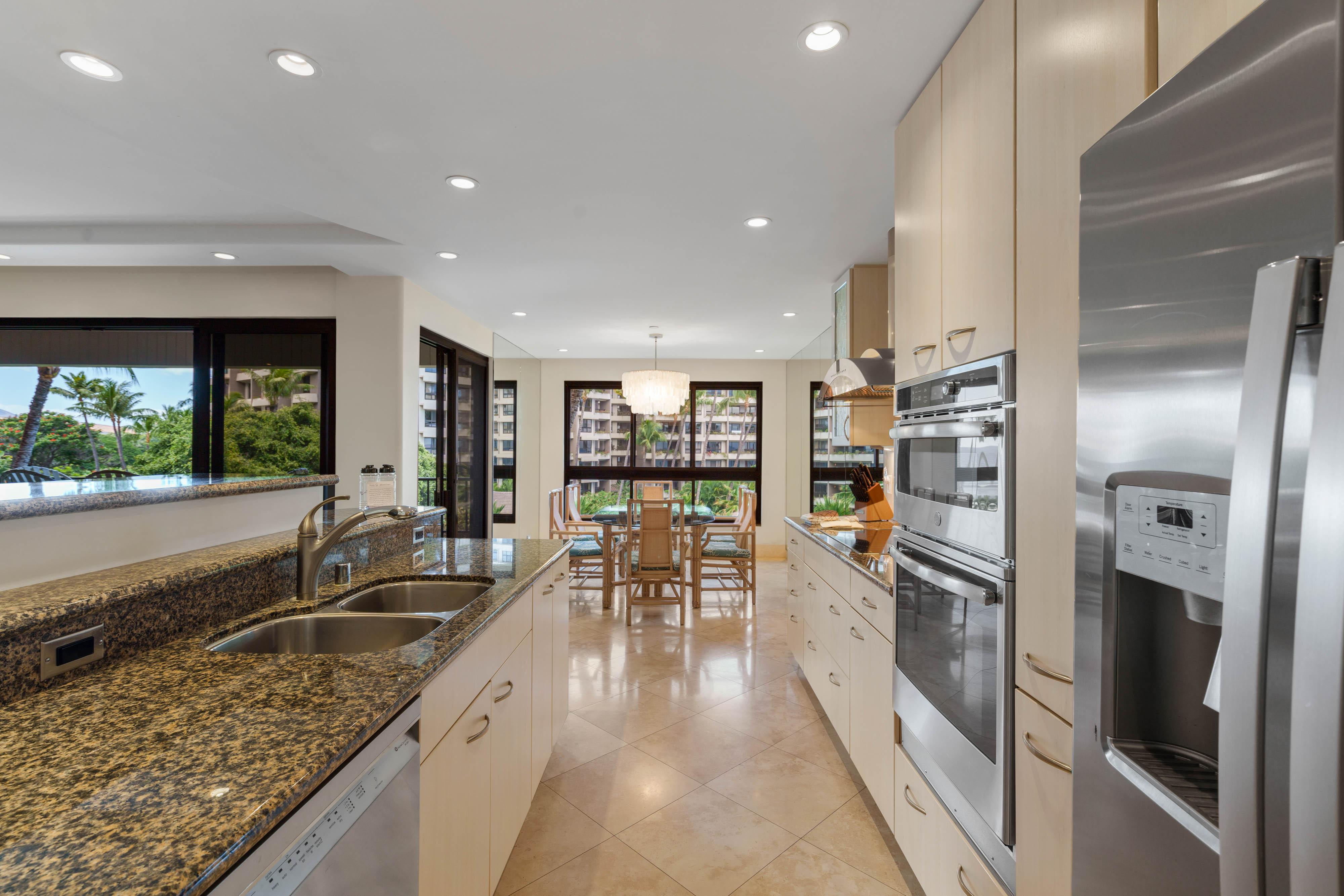 The bright, modern kitchen features stainless steel appliances, granite countertops, and everything needed to prepare meals together. Its open layout flows seamlessly into the dining and living areas, making it easy to gather with family or friends. Enjoy dining indoors at the large table or outdoors on the lanai while feeling the gentle ocean breeze. Condo 144 combines modern elegance, comfort, and island charm for an unforgettable Maui escape.