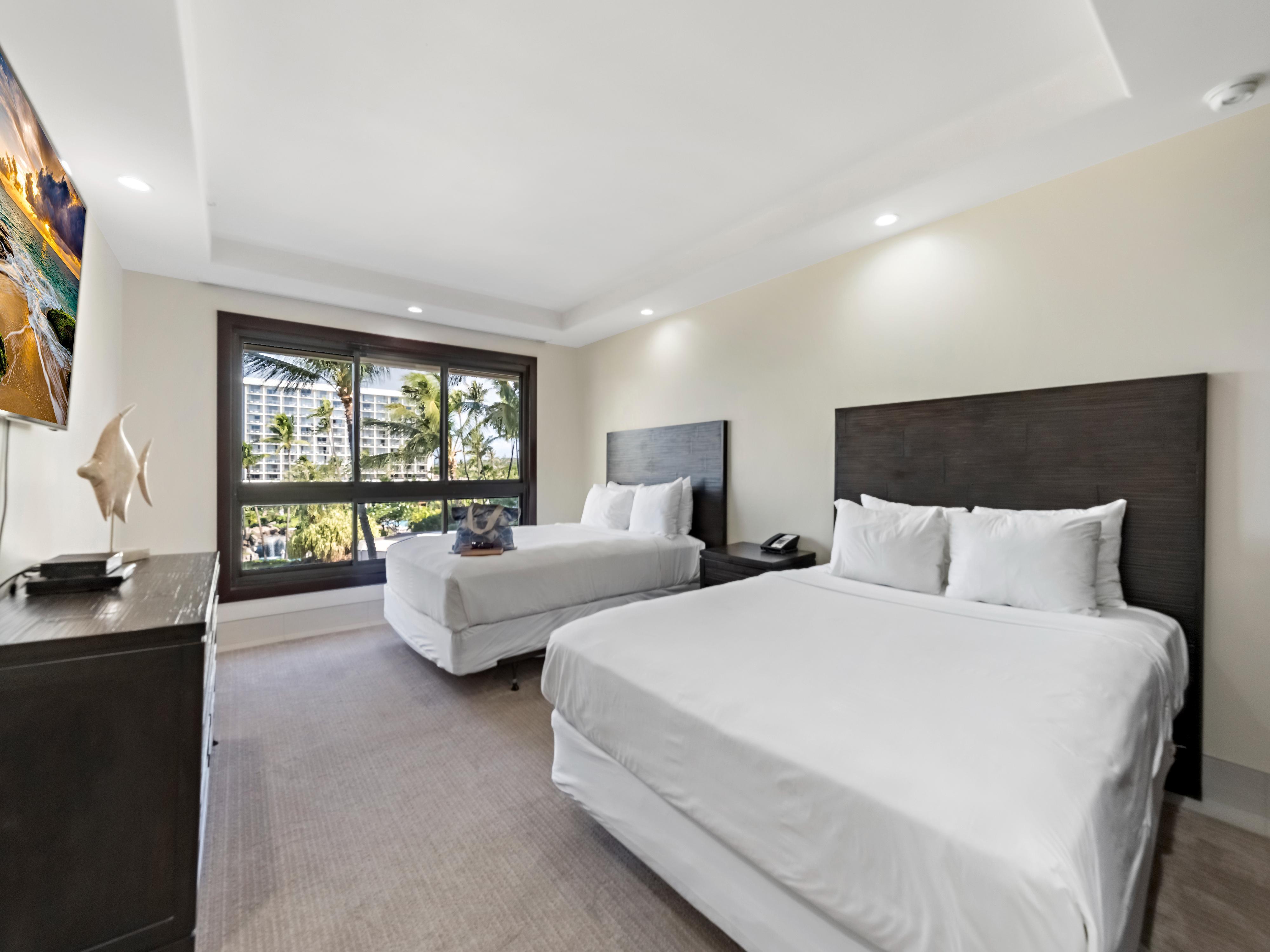 Both bedrooms are thoughtfully designed to provide a serene ambiance and a restful night's sleep. The primary suite boasts a comfortable California king-sized bed and an en-suite with a shower. The second bedroom offers two queen beds, perfect for families or friends traveling together. Wake up to the gentle sound of waves and start your day with a cup of freshly brewed coffee, as you prepare for another day of adventure and relaxation in paradise.