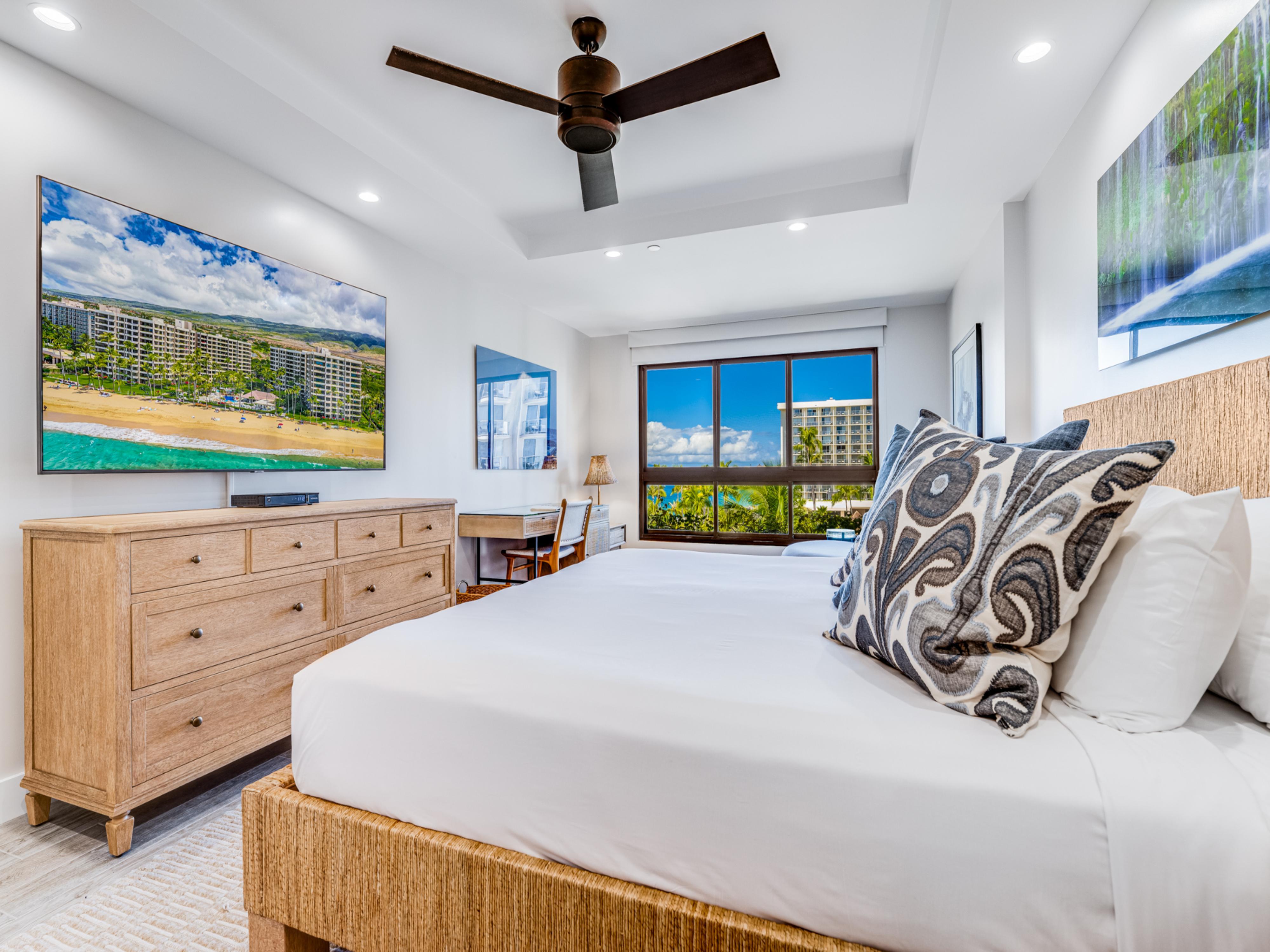 Kaanapali Alii 171 includes modern amenities such as smart TVs in both sleeping areas, wood and tile flooring throughout, and air conditioning to ensure year-round comfort. With its refreshed design, partial ocean view, and thoughtful upgrades, this residence offers a serene and stylish home base for your Maui adventure. Enjoy your stay in paradise.