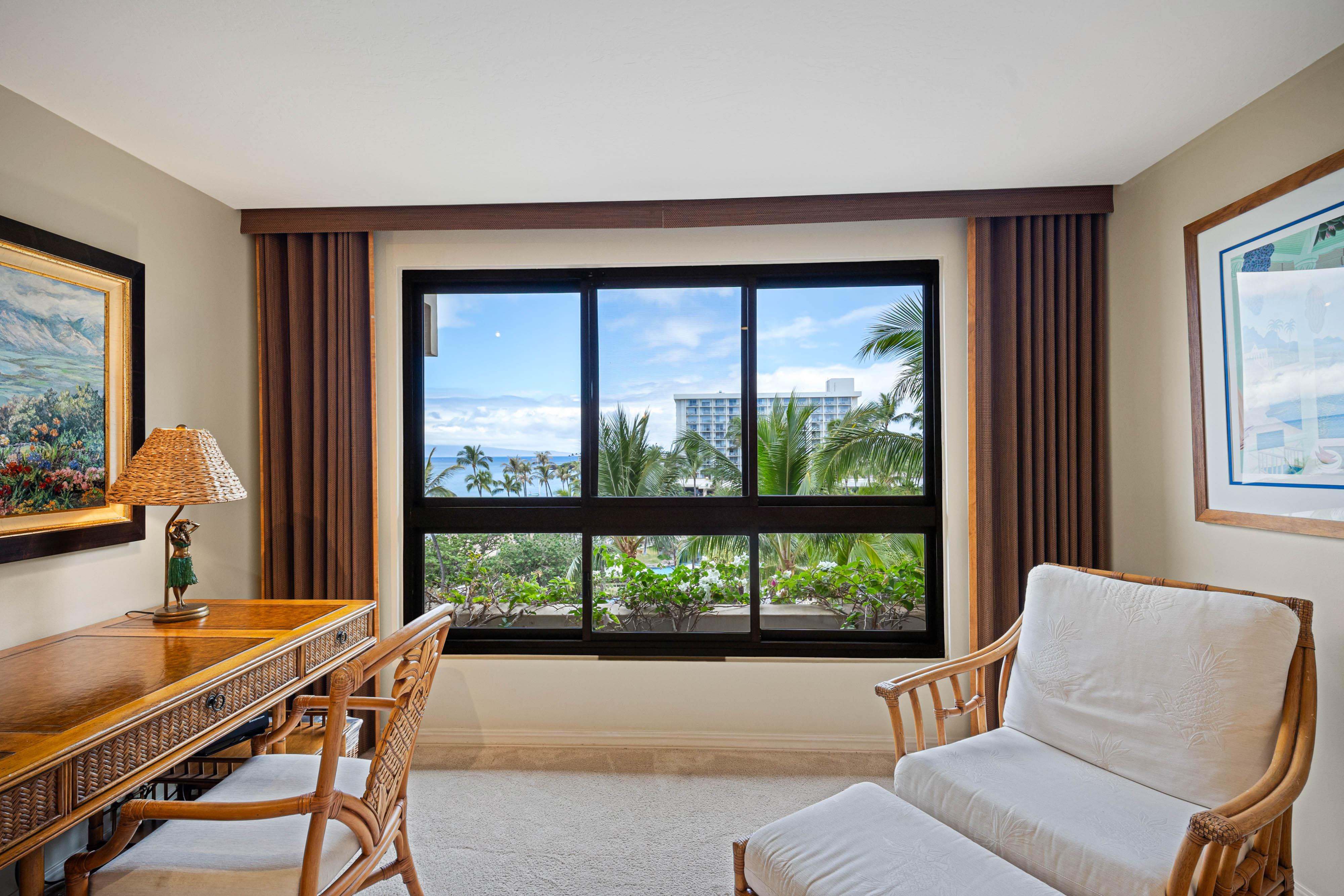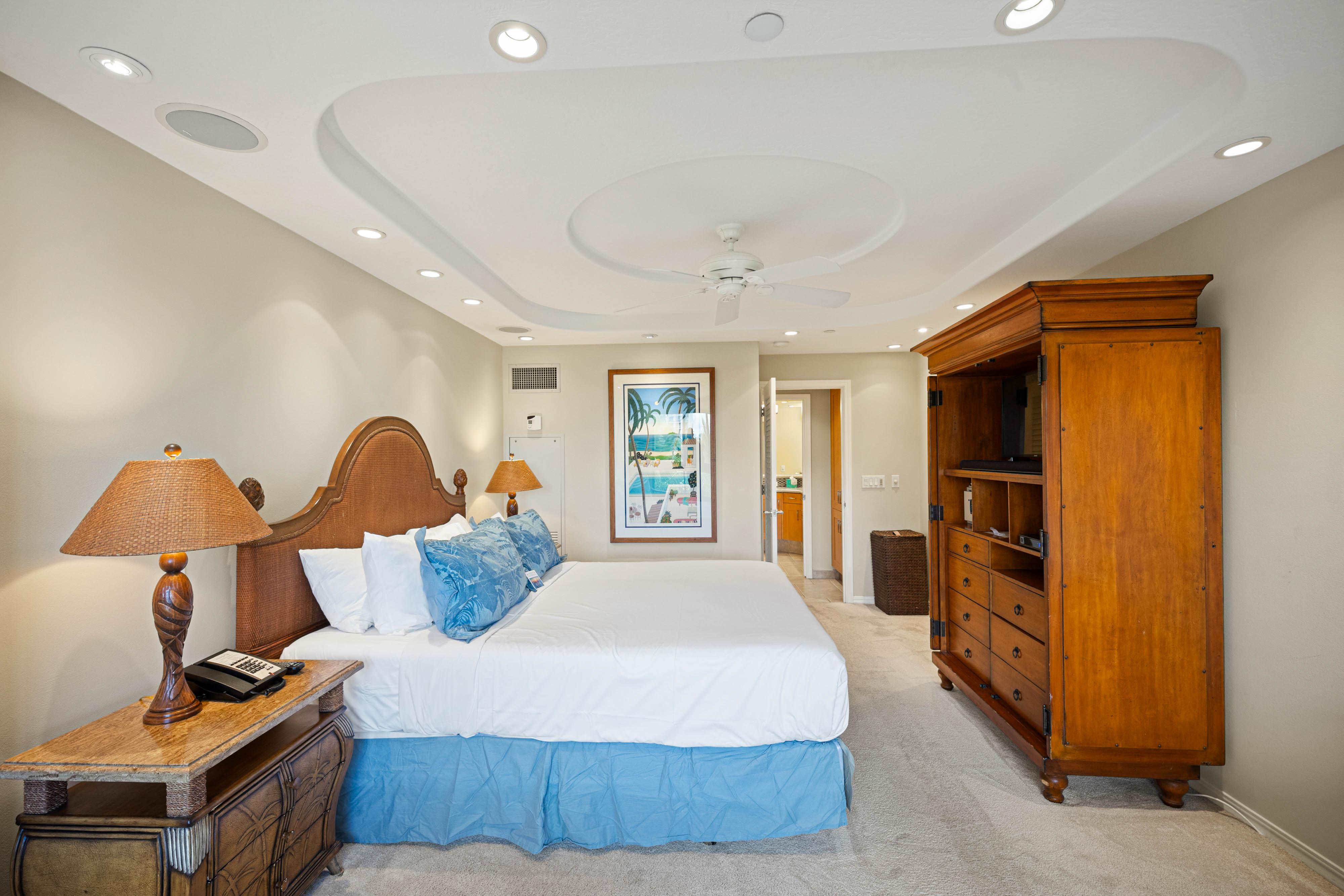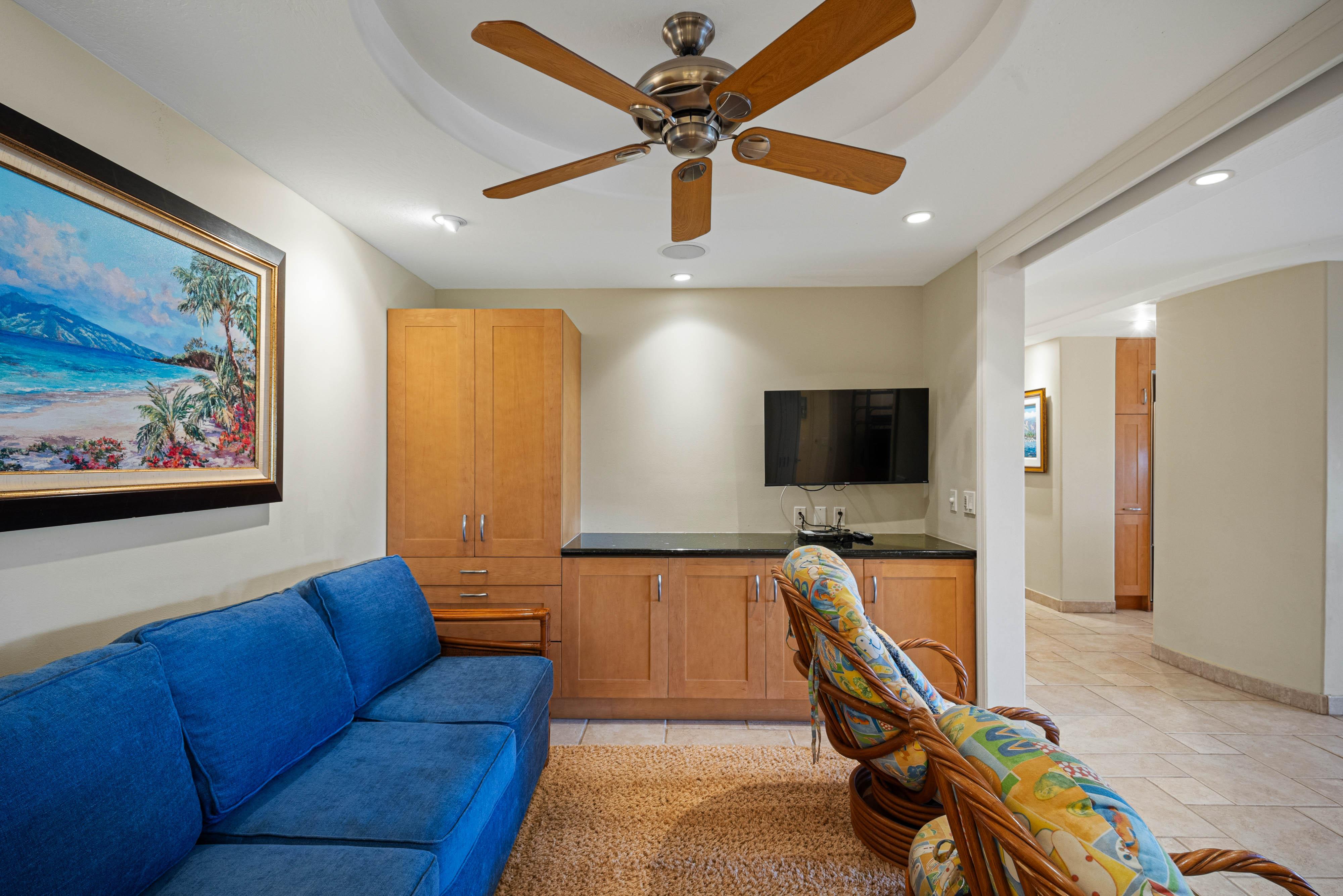Inside, the 1,843-square-foot condo blends comfort and coastal elegance. Soft, neutral tones and stylish furnishings create a serene atmosphere, while the spacious layout invites effortless relaxation. Whether you’re sipping coffee on the lanai, entertaining in the open living area, or unwinding after a day at the beach, Kaanapali Alii 173 offers the perfect blend of island charm and luxury.