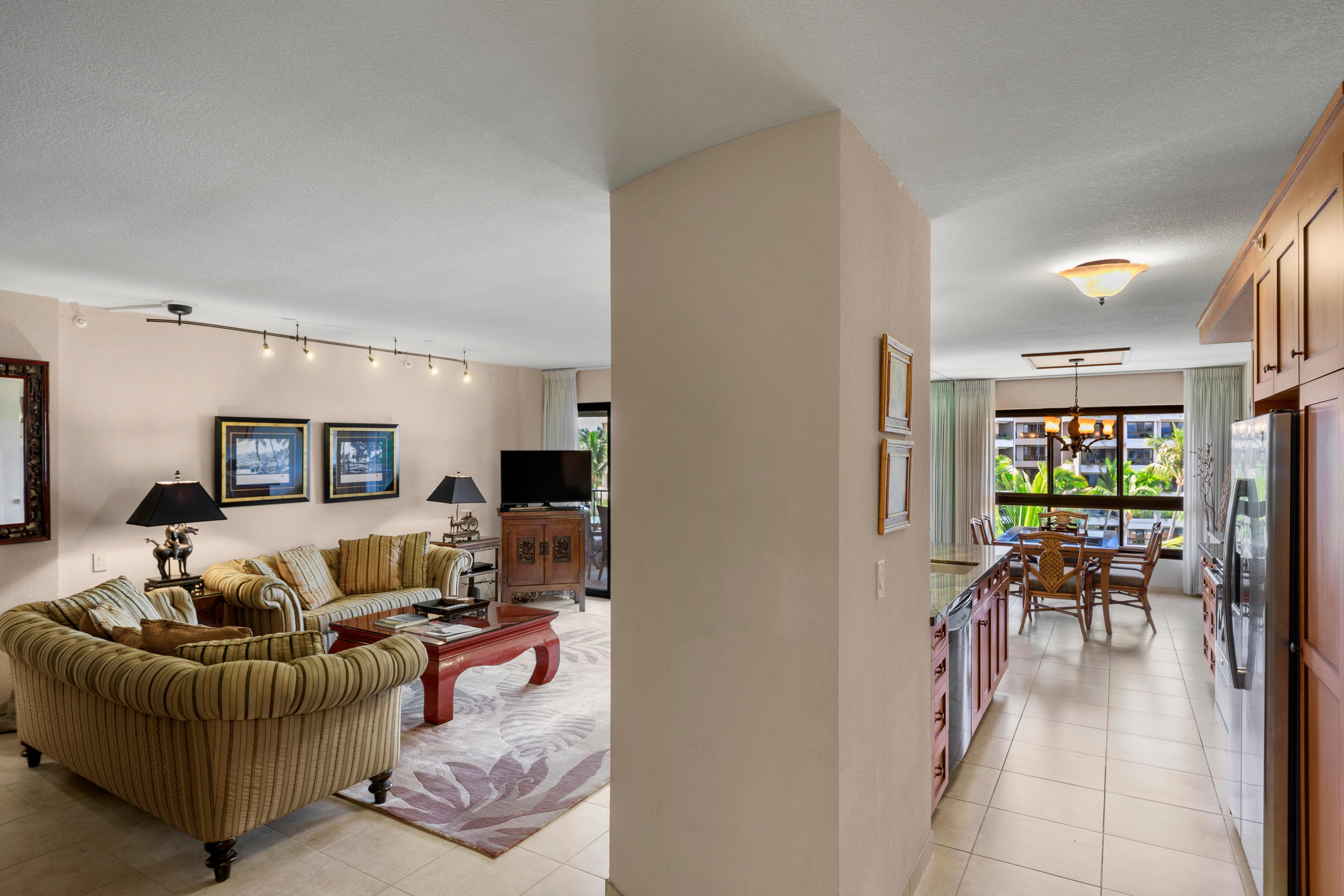 Welcome to Kaanapali Alii 174, a charming two-bedroom ocean-view residence that perfectly captures the spirit of Maui. This inviting retreat combines the comfort of home with the beauty of island living. From the private lanai, enjoy serene views of the Pacific and the resort’s lush tropical grounds, creating a peaceful backdrop for your stay.