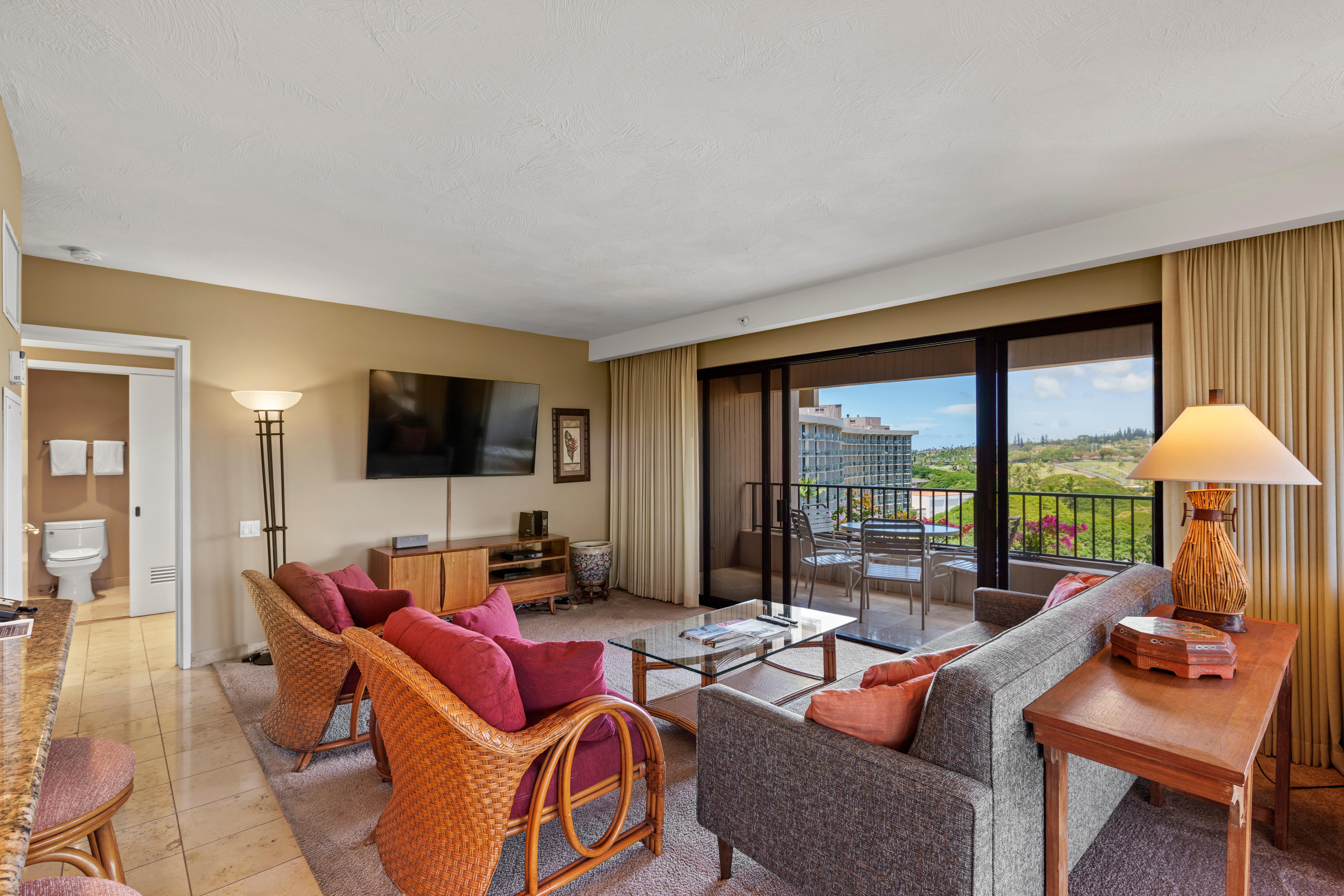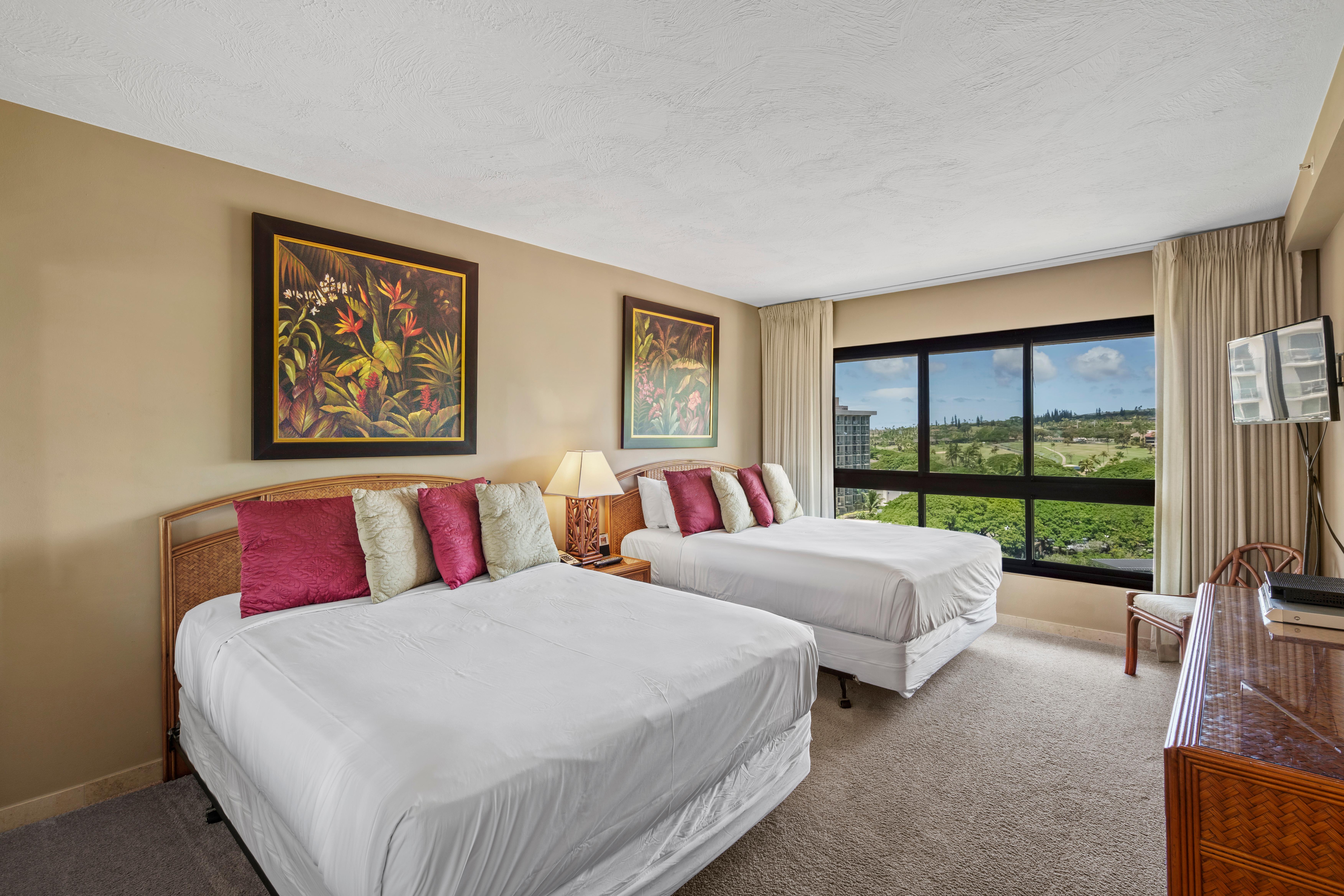 Welcome to Kaanapali Alii 2106, a two-bedroom mountain view retreat in Maui’s exclusive Kaanapali Alii Resort. From this elevated corner, enjoy sweeping panoramas of the West Maui Mountains and the lush tropical landscape surrounding the resort. Sunlight pours through the expansive windows, and the private lanai invites you to step outside and savor the serene island atmosphere.