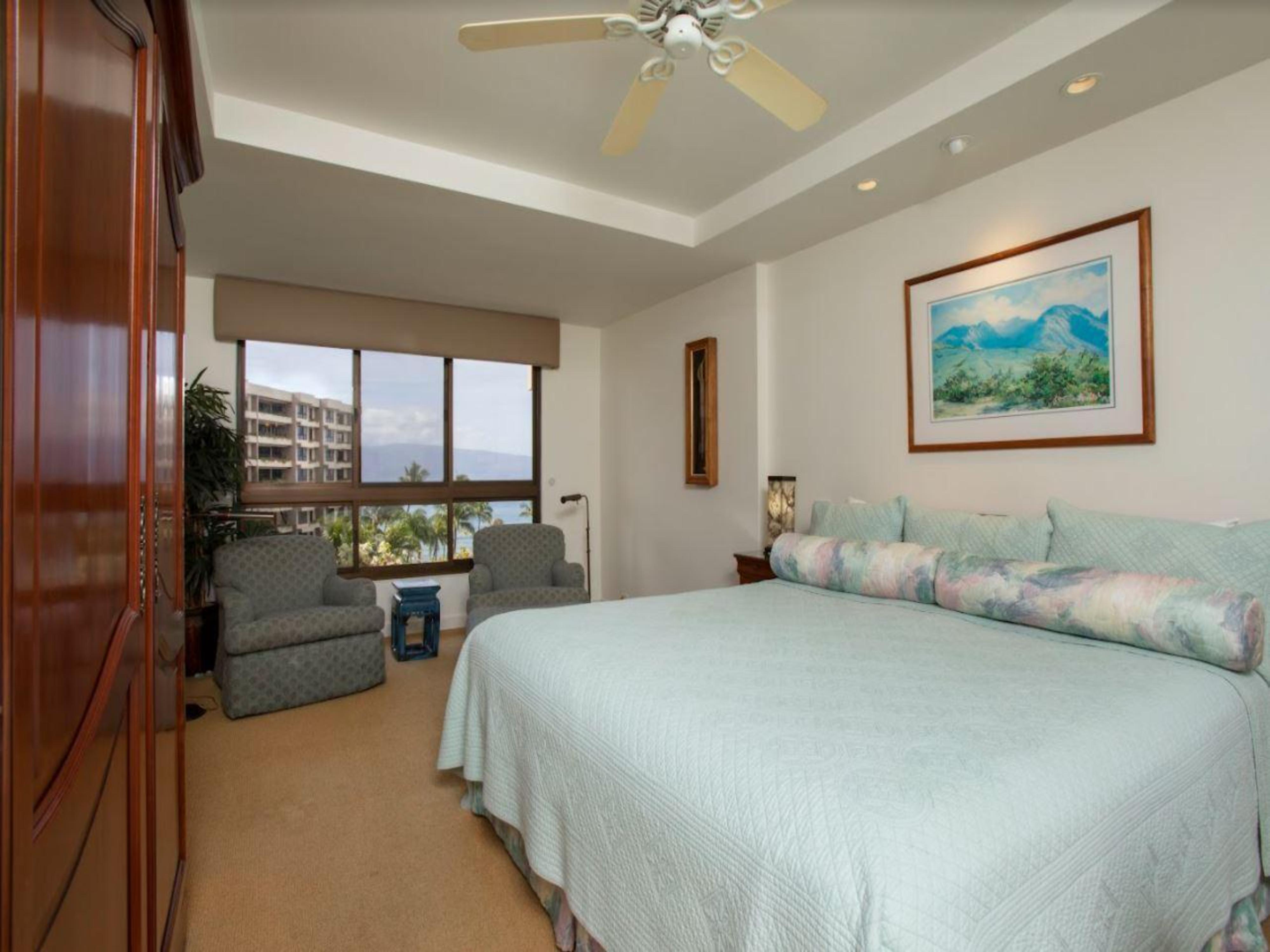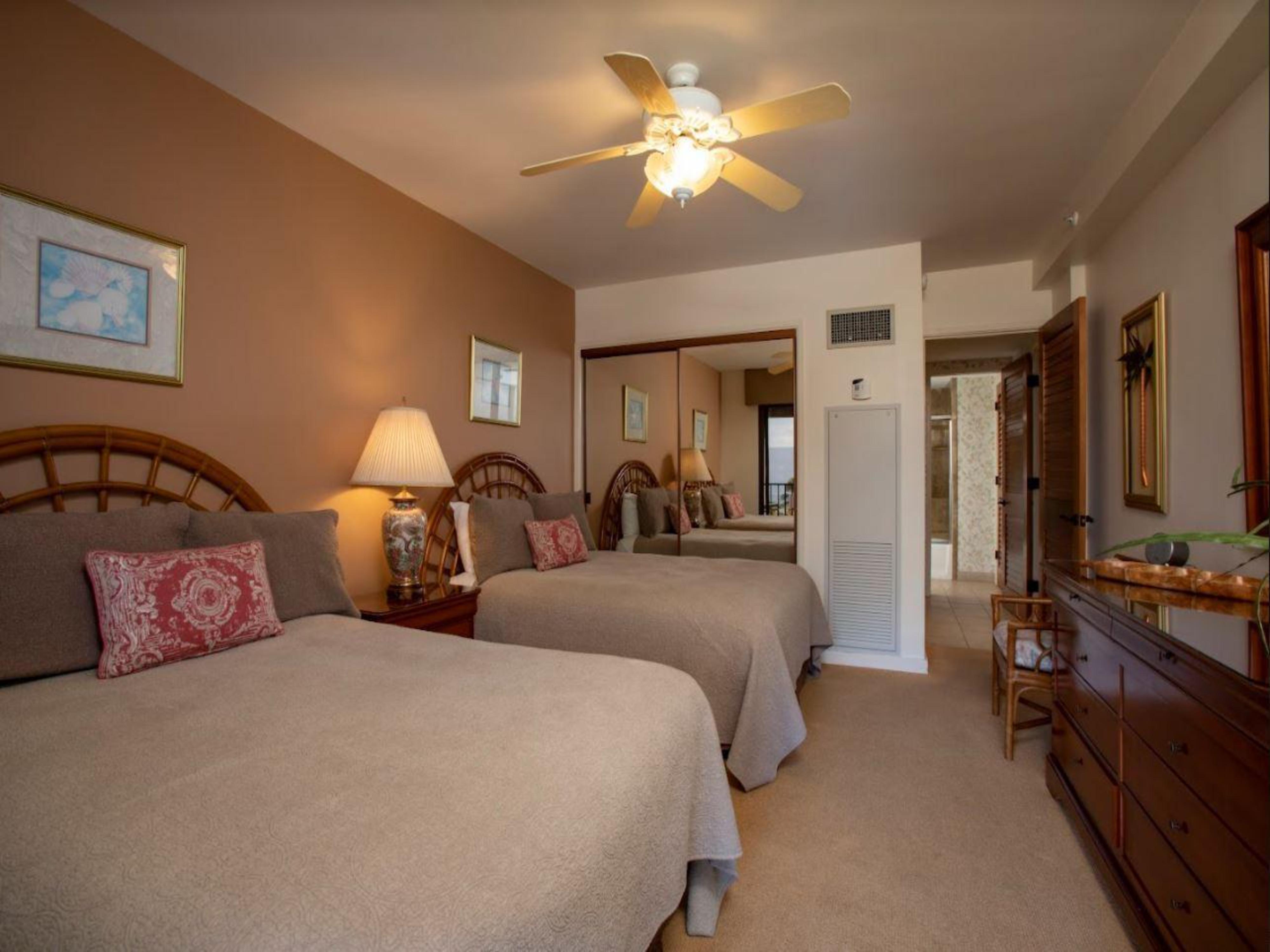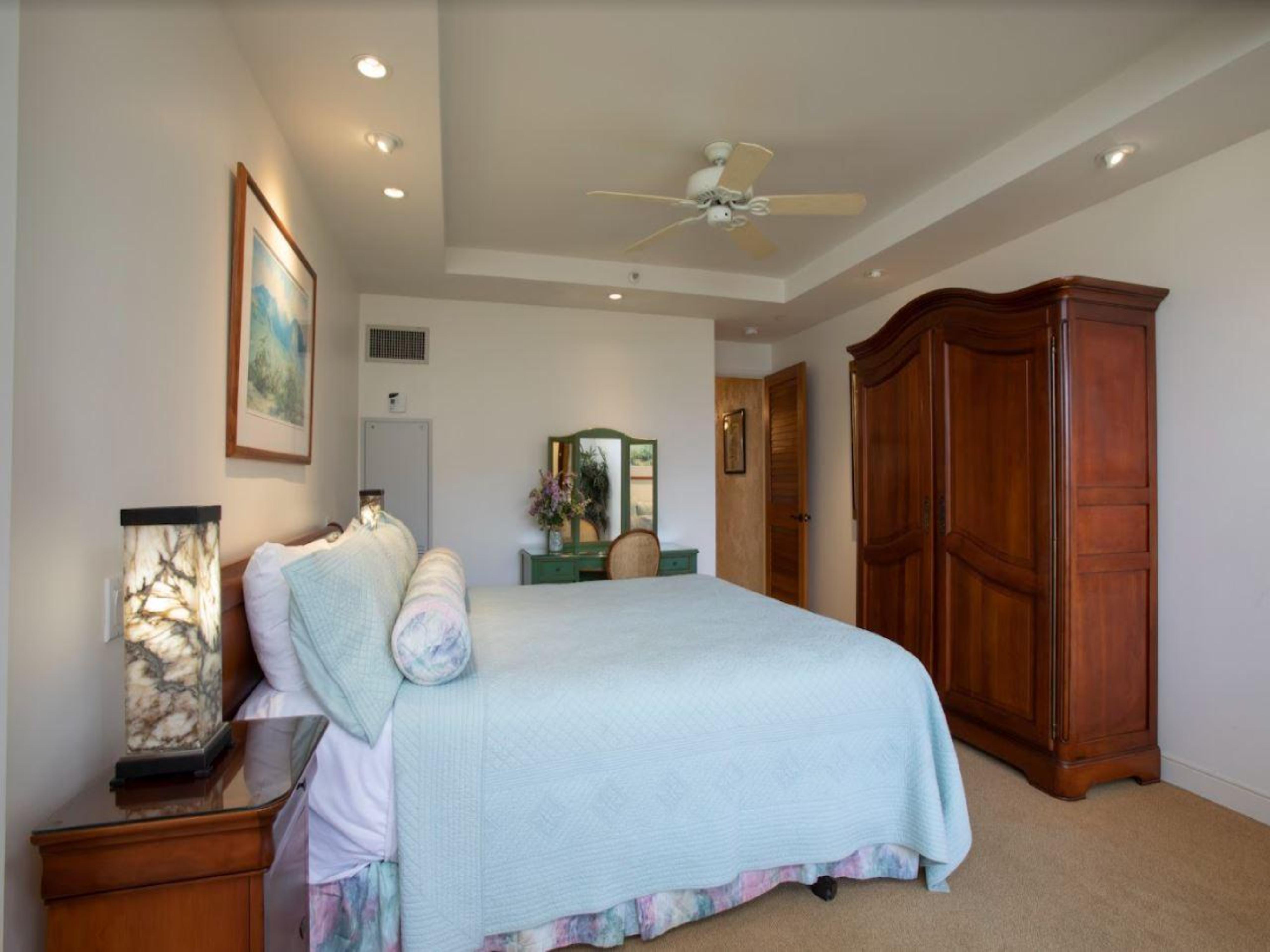 Recently remodeled bathrooms and bedrooms blend modern comfort with refined Hawaiian style. Thoughtful touches throughout the residence include island-inspired décor such as a framed quilt, colorful wood carvings of reef fish, and a hand-carved koa wood canoe paddle, creating a warm and authentic sense of place.