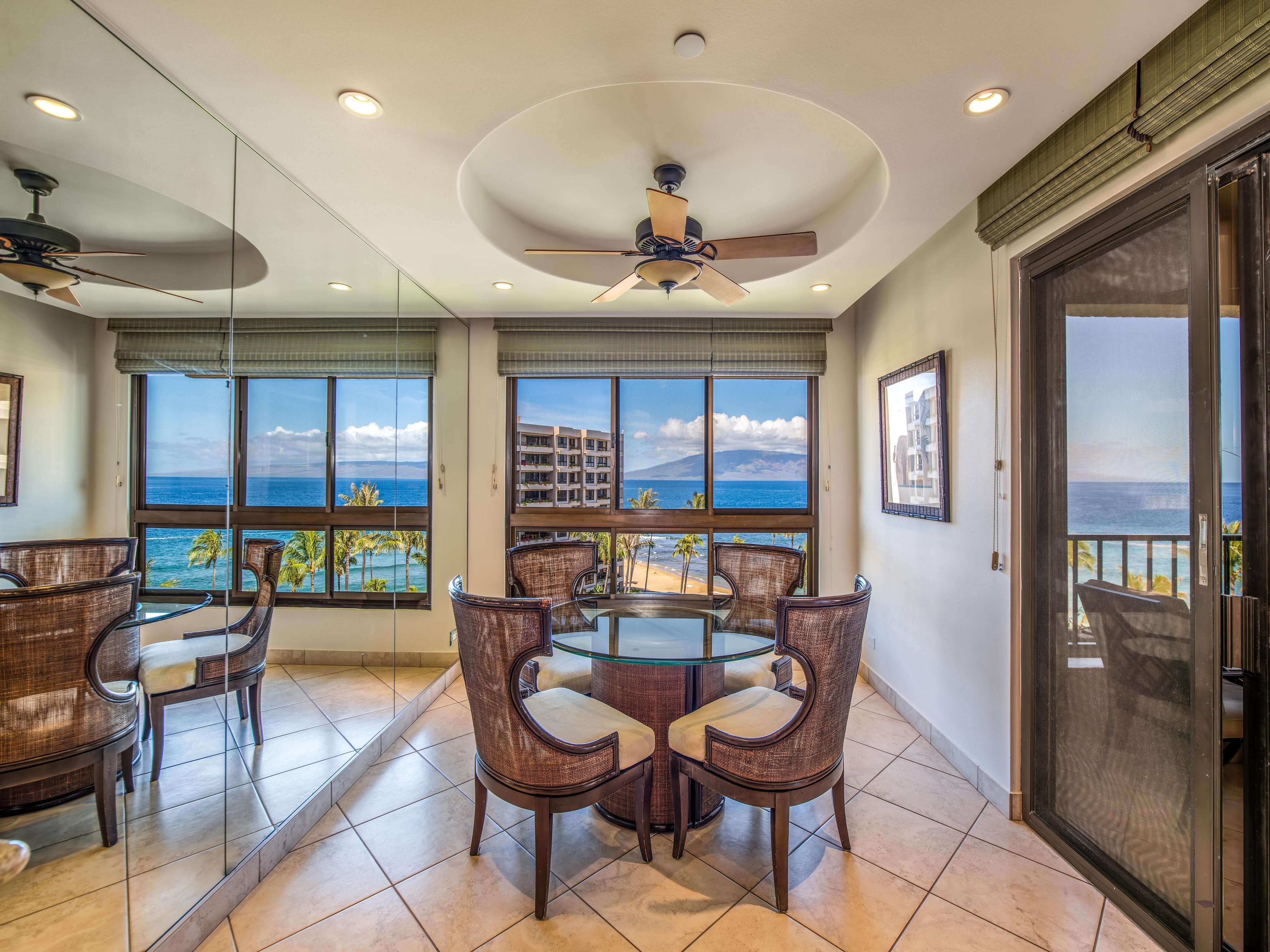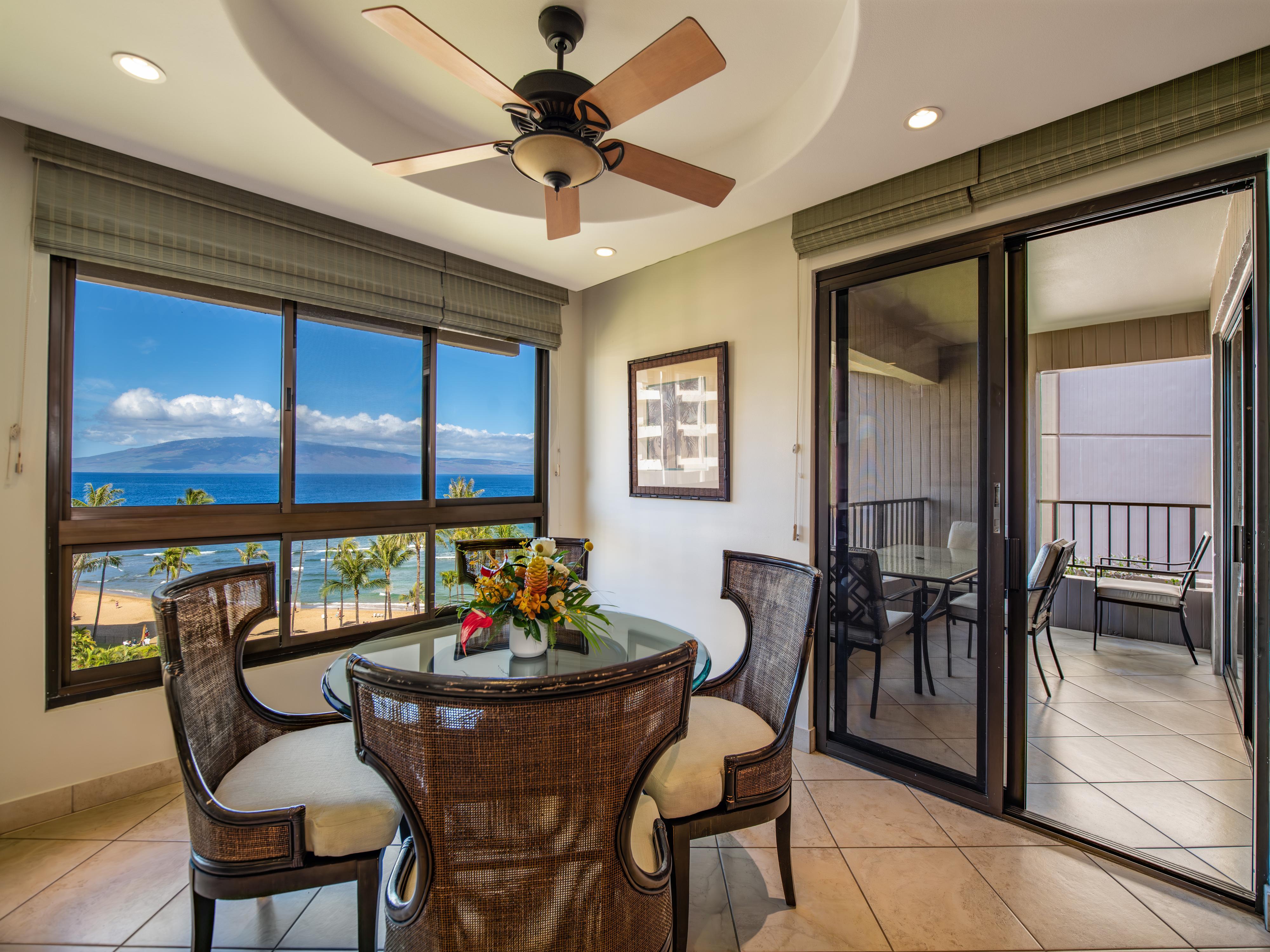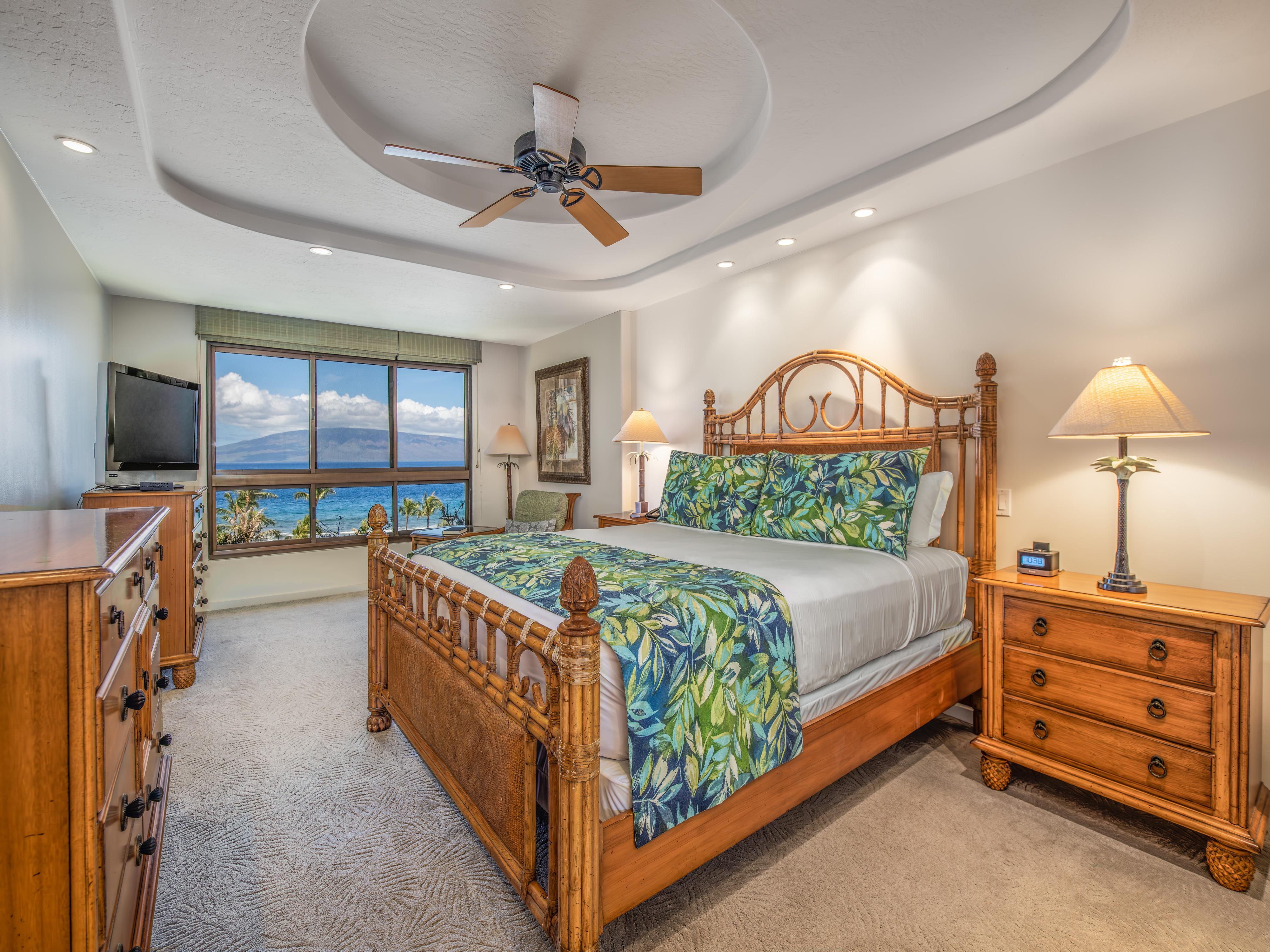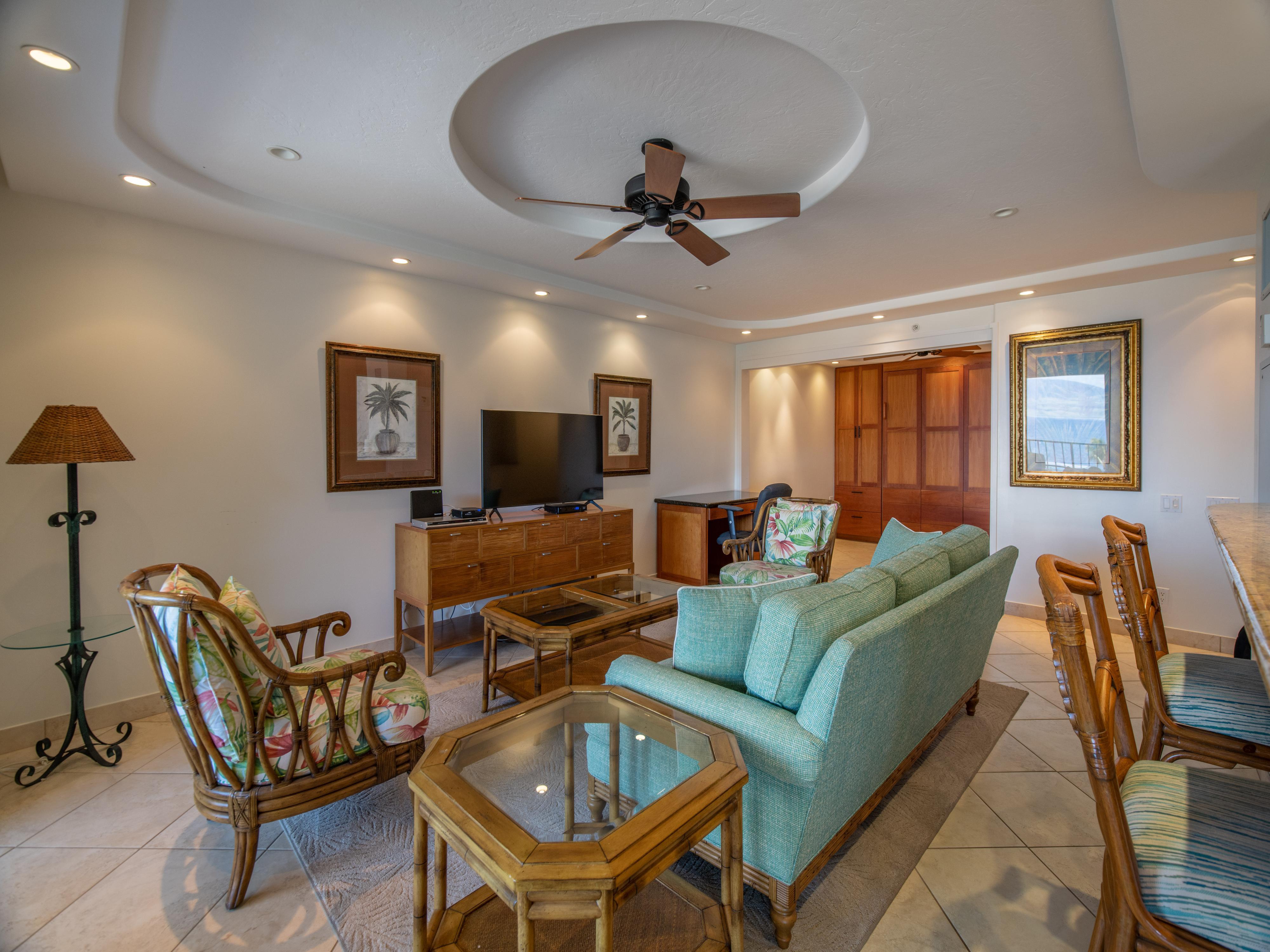 This stunning Maui ocean-view condo on the ninth floor features one bedroom and a fully enclosed den that comfortably serves as a second bedroom. From the private lanai, watch parasailers glide across the Pacific or spot whales breaching in the winter months as you enjoy your morning coffee.