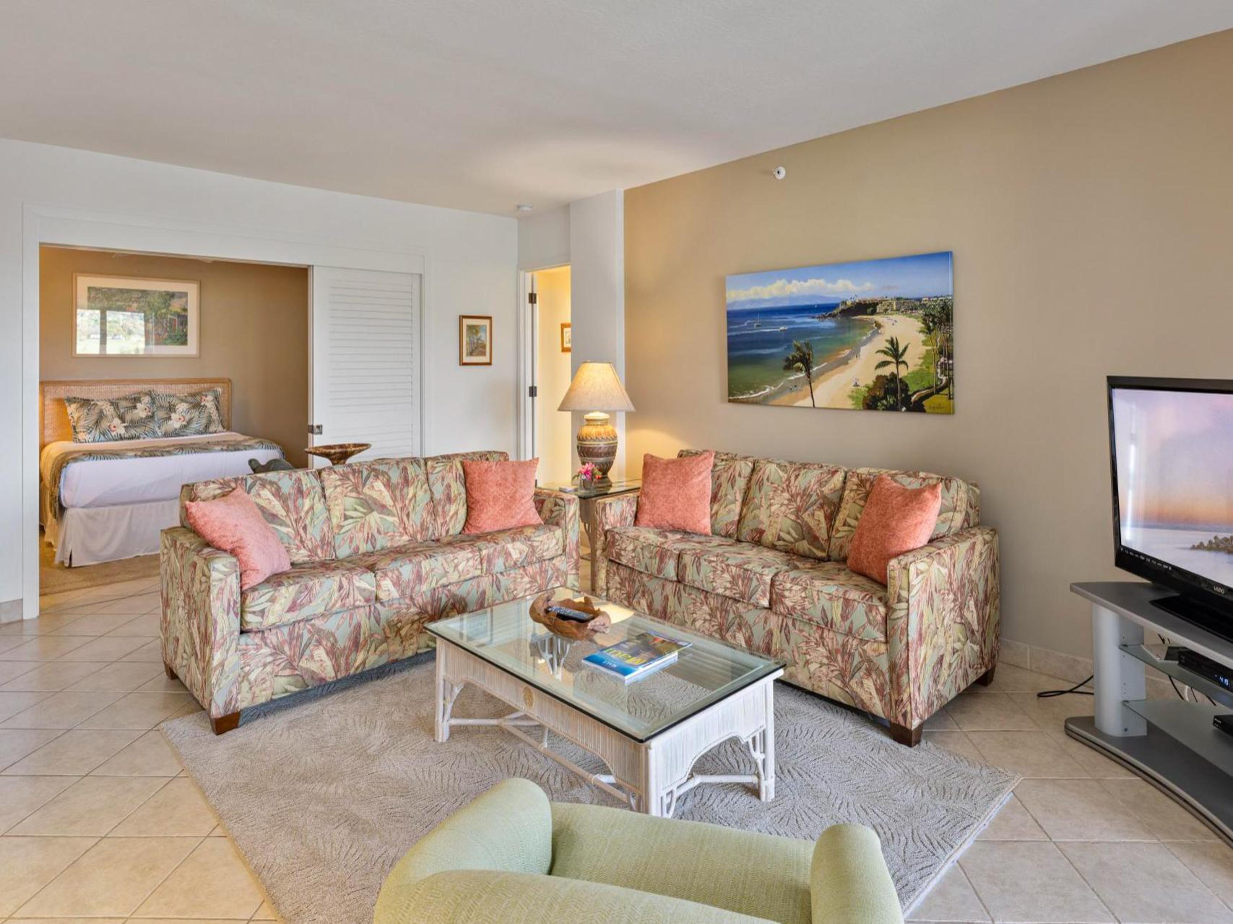 The primary bedroom features a California king bed, while the enclosed den offers a comfortable queen bed, making it feel like a true second bedroom. A sleeper sofa in the living room allows accommodations for up to six guests - perfect for families or small groups seeking luxury, convenience, steps from Whalers Village and incredible value in the heart of Kaanapali Beach.