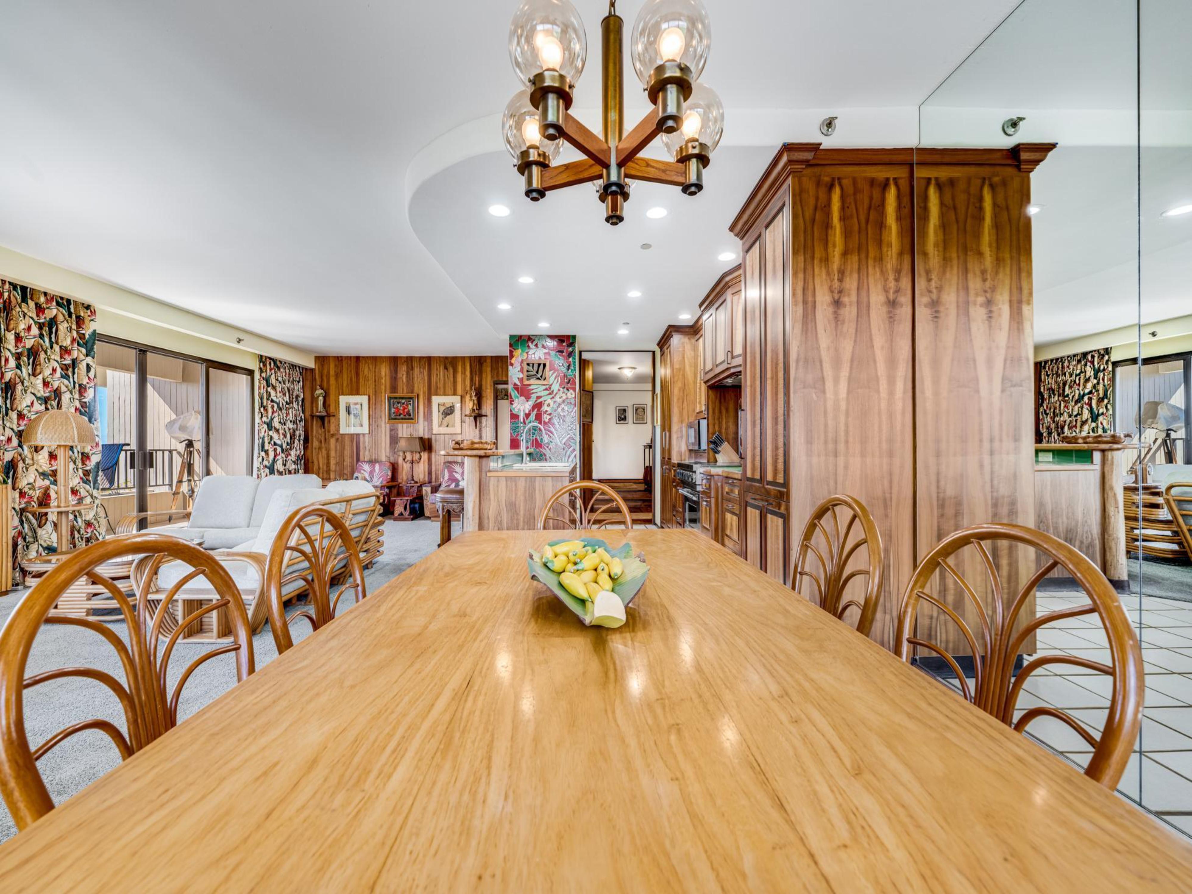 Experience the warmth of Hawaiian hospitality in Kaanapali Alii 295, a beautifully appointed two-bedroom ocean-view residence featuring classic Hawaiiana décor, treasured antique collectibles, and beautiful wood accents throughout. Expansive windows fill the residence with natural light and frame sweeping views of the Pacific Ocean, accompanied by the soothing sounds of the sea.