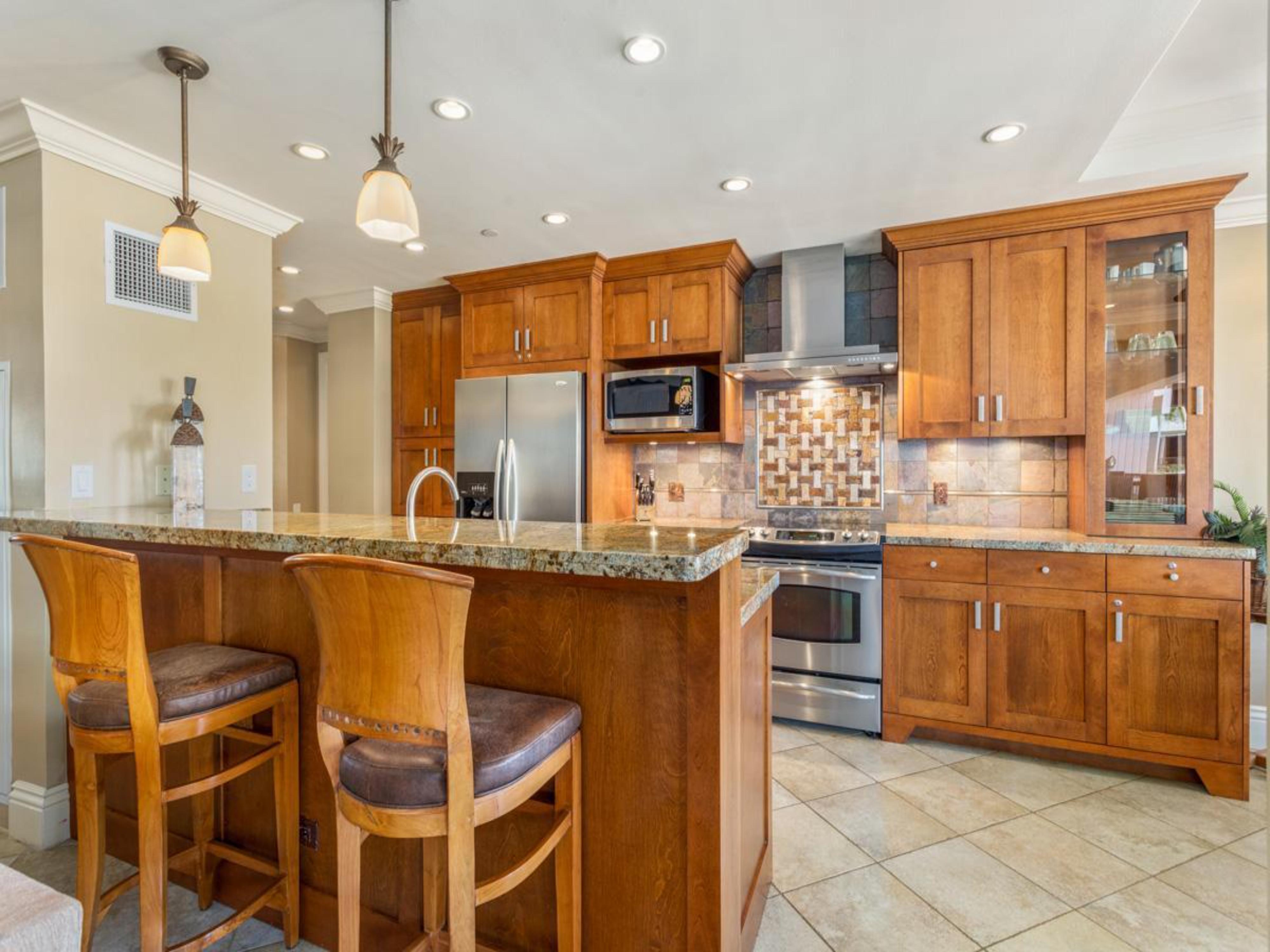 • Spacious, fully-stocked gourmet kitchen