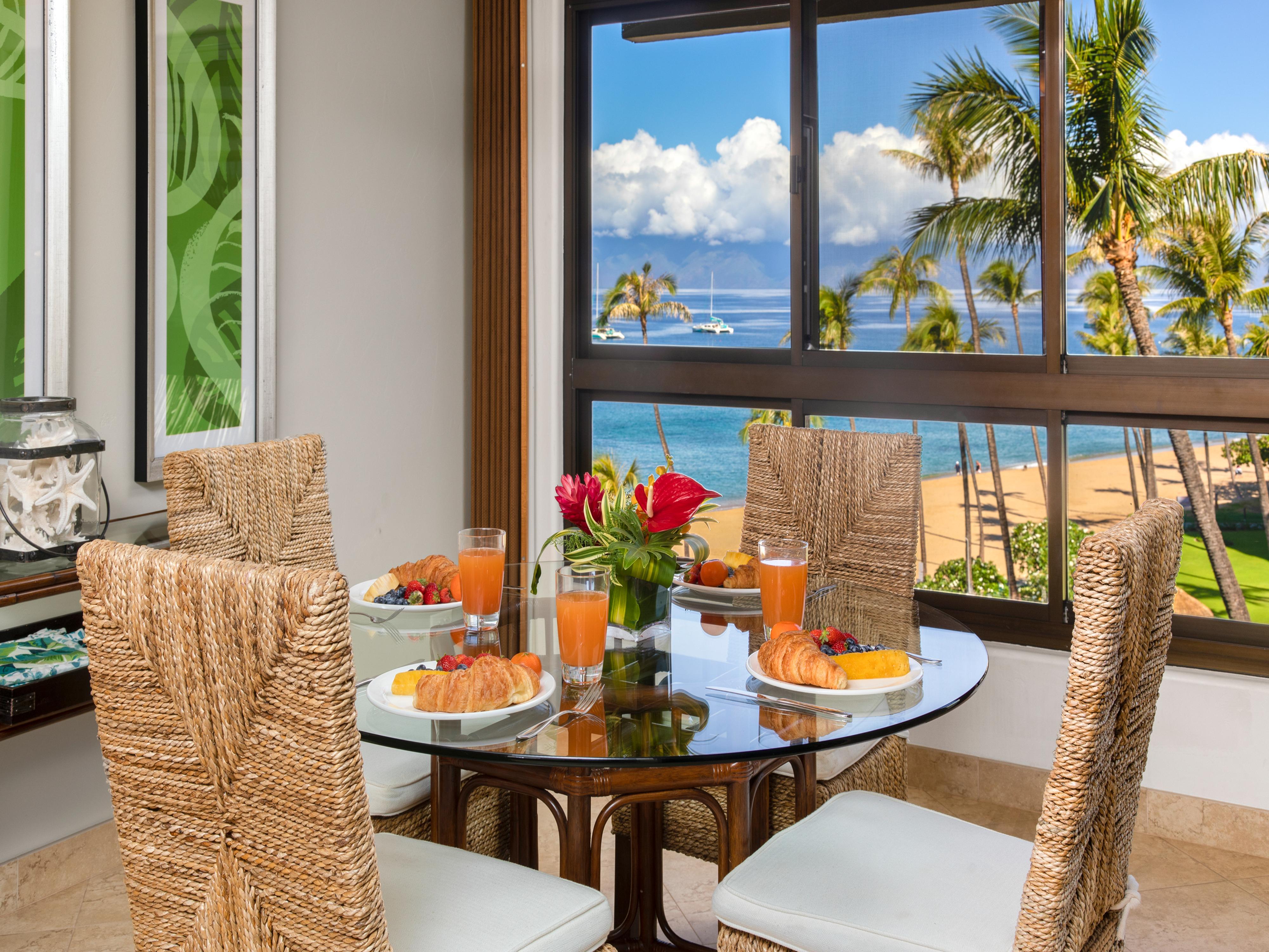 This beautiful platinum-rated sixth-floor Maui condo is a serene escape, featuring one-bedroom with a fully enclosed den that comfortably serves as a second bedroom. Guests can unwind on the large, private lanai while soaking in the gorgeous ocean views, creating a perfect backdrop for relaxation or entertaining.