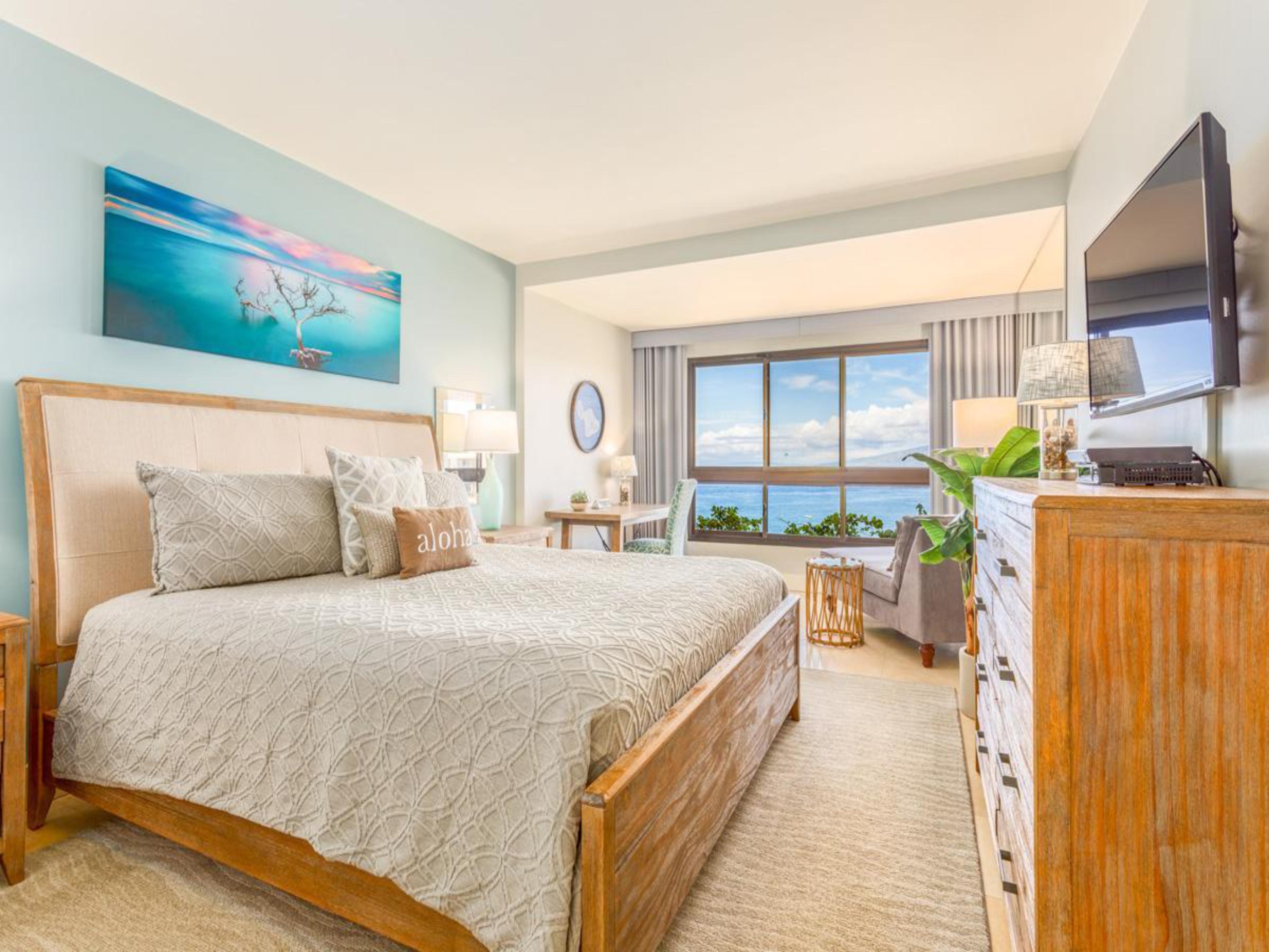 Kaanapali Alii 4102 is a platinum-rated one-bedroom ocean-view condo with a fully enclosed den that comfortably serves as a second bedroom. Located on the 10th floor, this sophisticated vacation rental offers unobstructed ocean views from every room and exudes elegance from the moment you step through the front door.