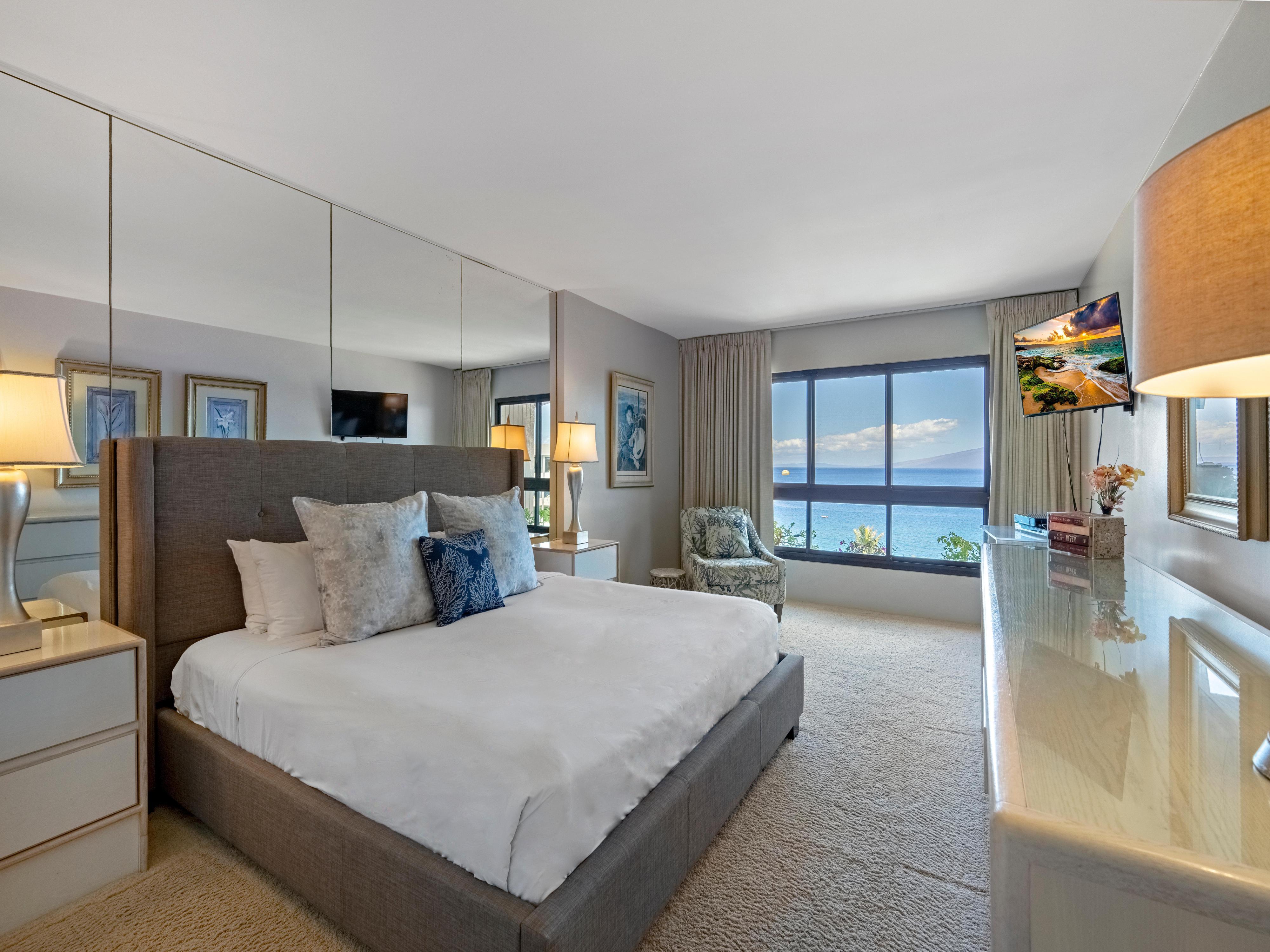Kaanapali Alii 4114 is a stunning diamond-rated two-bedroom ocean-view vacation rental that offers a luxurious retreat on Maui's renowned Kaanapali Beach. Spanning 1,843 square feet, this beautifully updated condo features light wood accents throughout the kitchen, creating a light and airy feel from the moment you arrive. The open floor plan blends indoor and outdoor living with ease, and comfortable seating on the main lanai makes it a favorite place to unwind while taking in views of the Pacific.