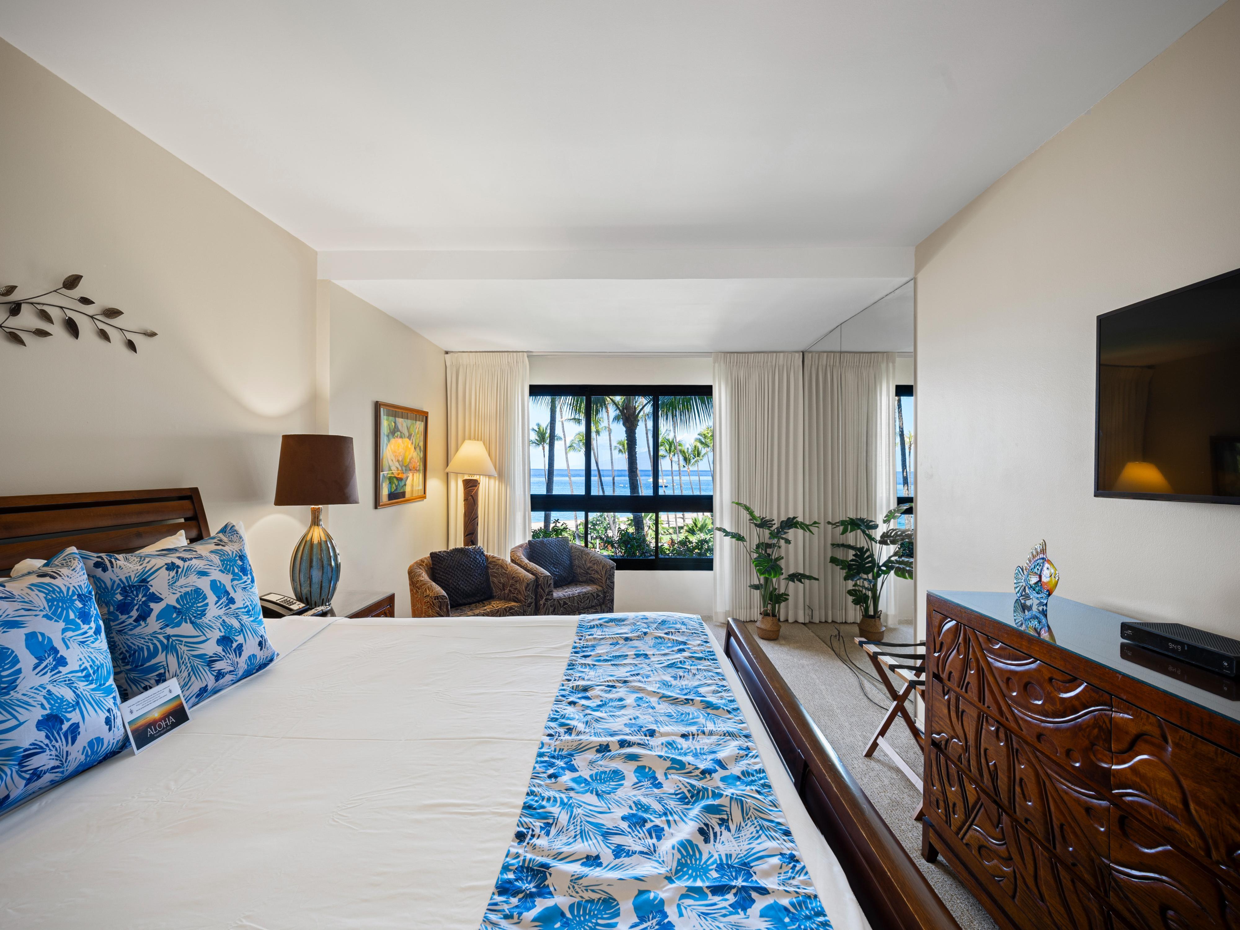 Welcome to Kaanapali Alii 444, your beachfront playground at Maui’s exclusive Kaanapali Alii Resort. With sweeping views of the Pacific Ocean, swaying palms, and the resort’s manicured grounds, the private lanai is the perfect spot to sip your morning coffee, enjoy a spectacular sunset, or simply soak in the island atmosphere.