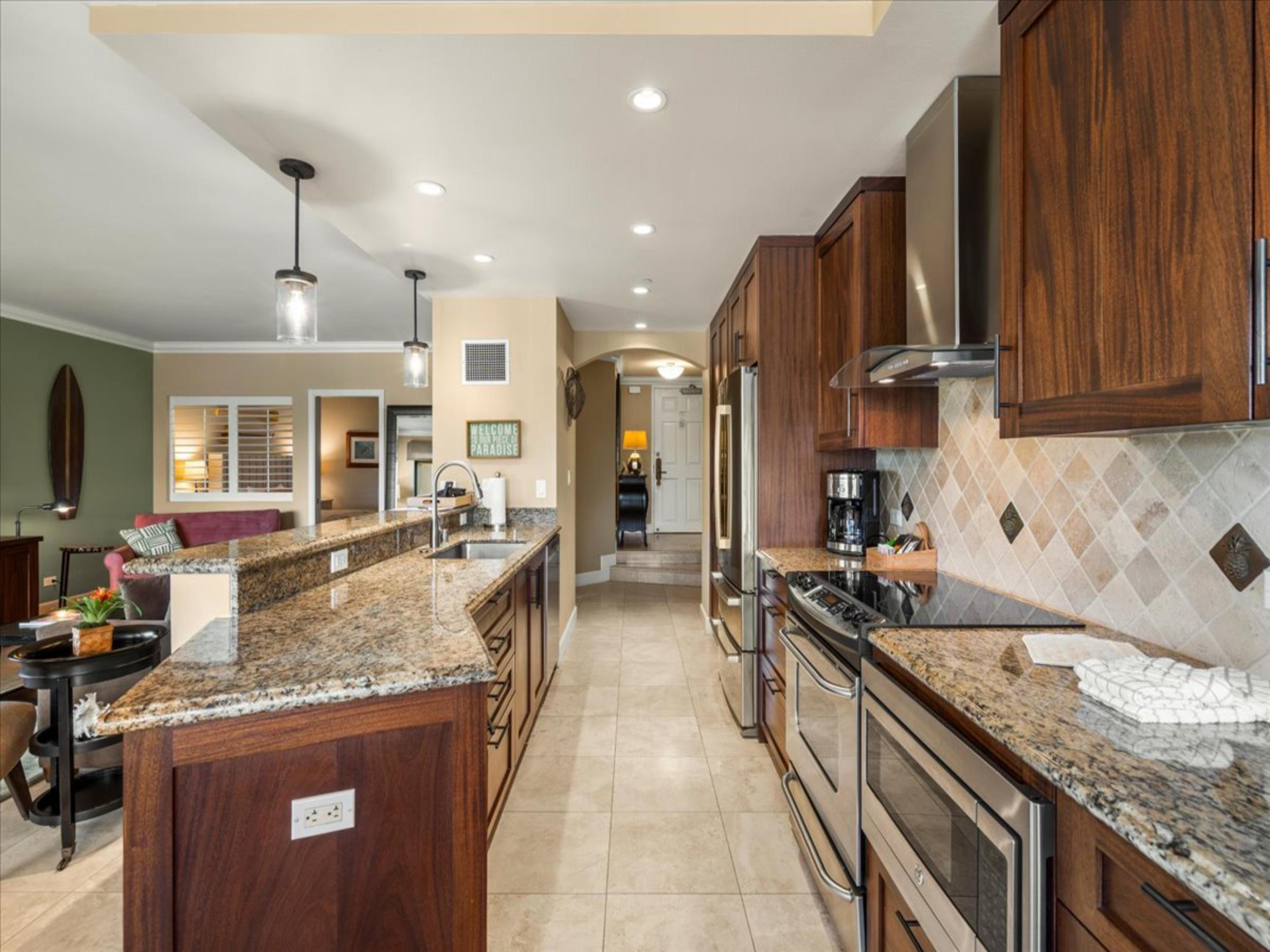 • Spacious, fully-stocked gourmet kitchen