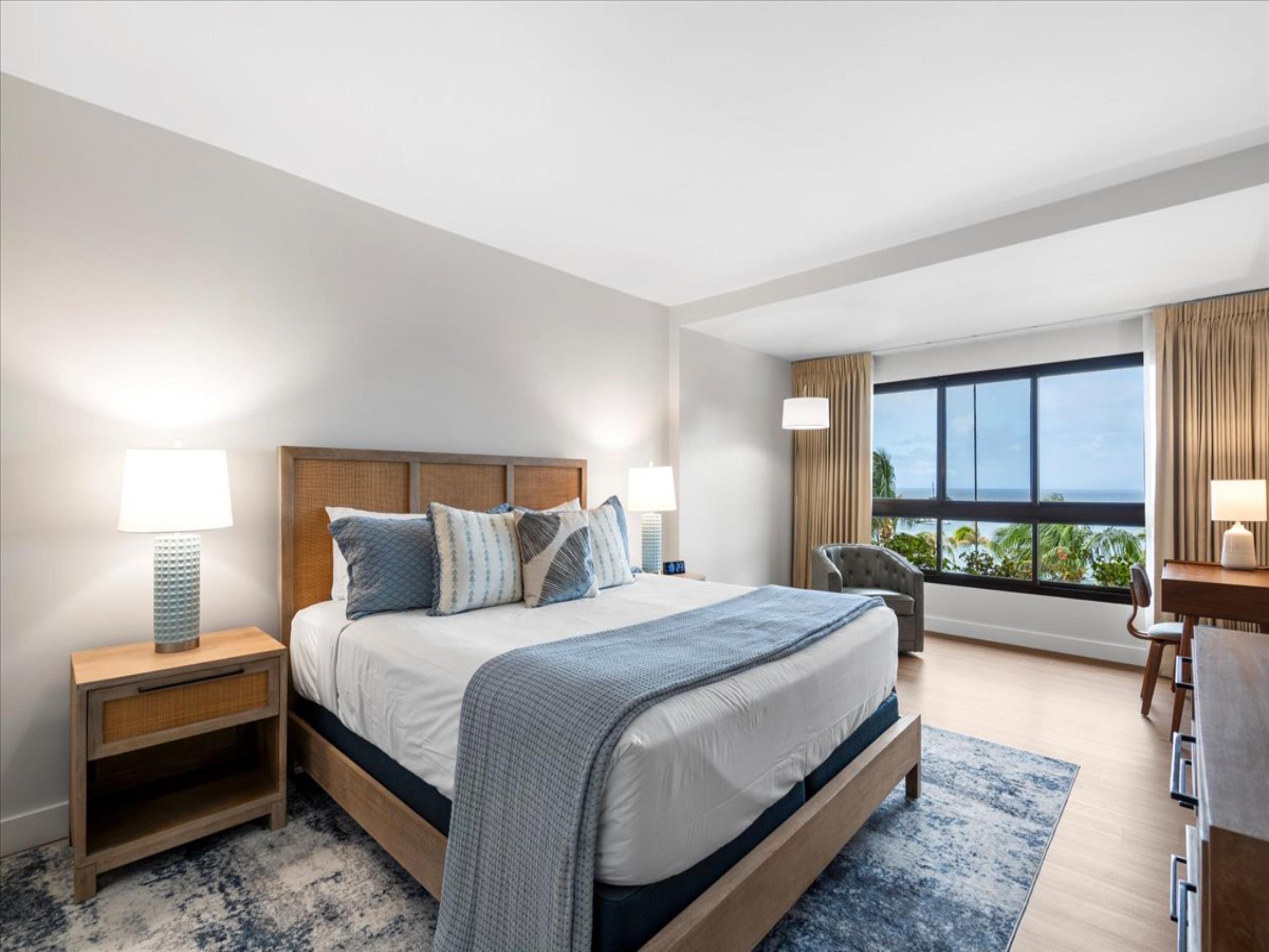 Welcome to Kaanapali Alii 472, a gorgeous one-bedroom ocean view condo at Maui’s exclusive Kaanapali Alii Resort. This freshly remodeled residence offers a direct ocean view from every room, creating a private, serene retreat where the Pacific is always in sight. Expansive windows and a spacious private lanai frame the shoreline, swaying palms, and the resort’s manicured grounds, filling the home with natural light and a bright, airy ambiance.