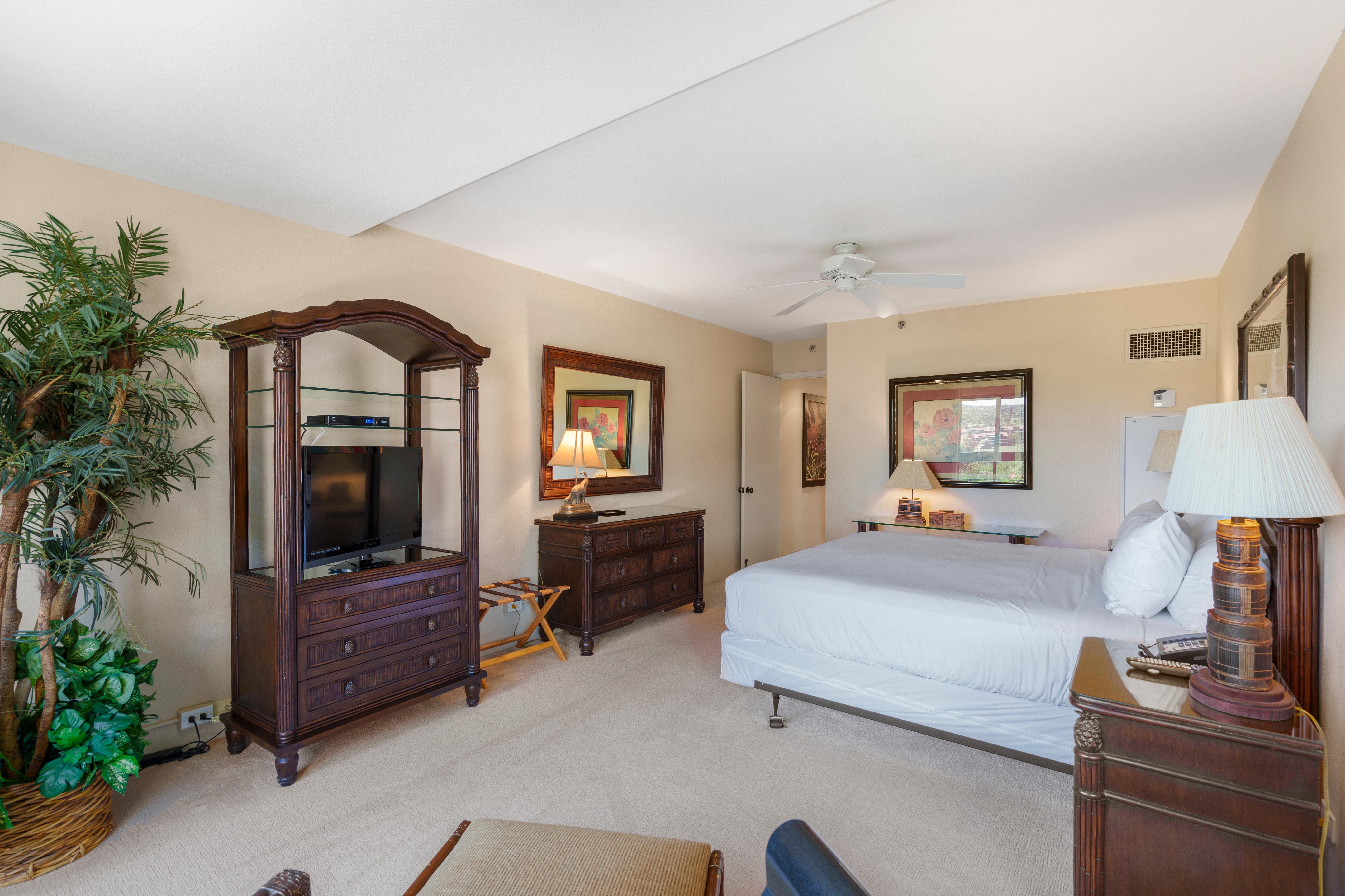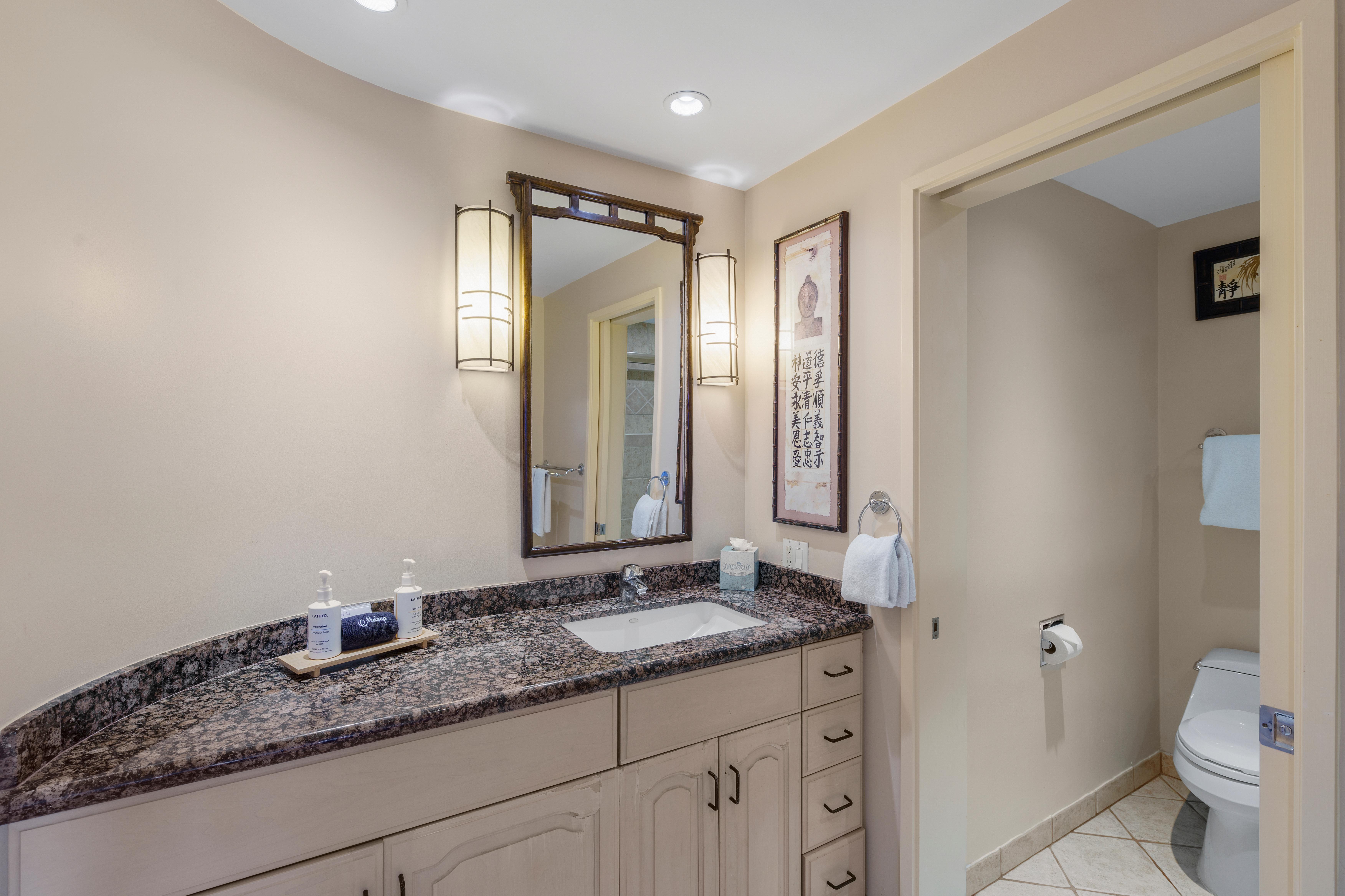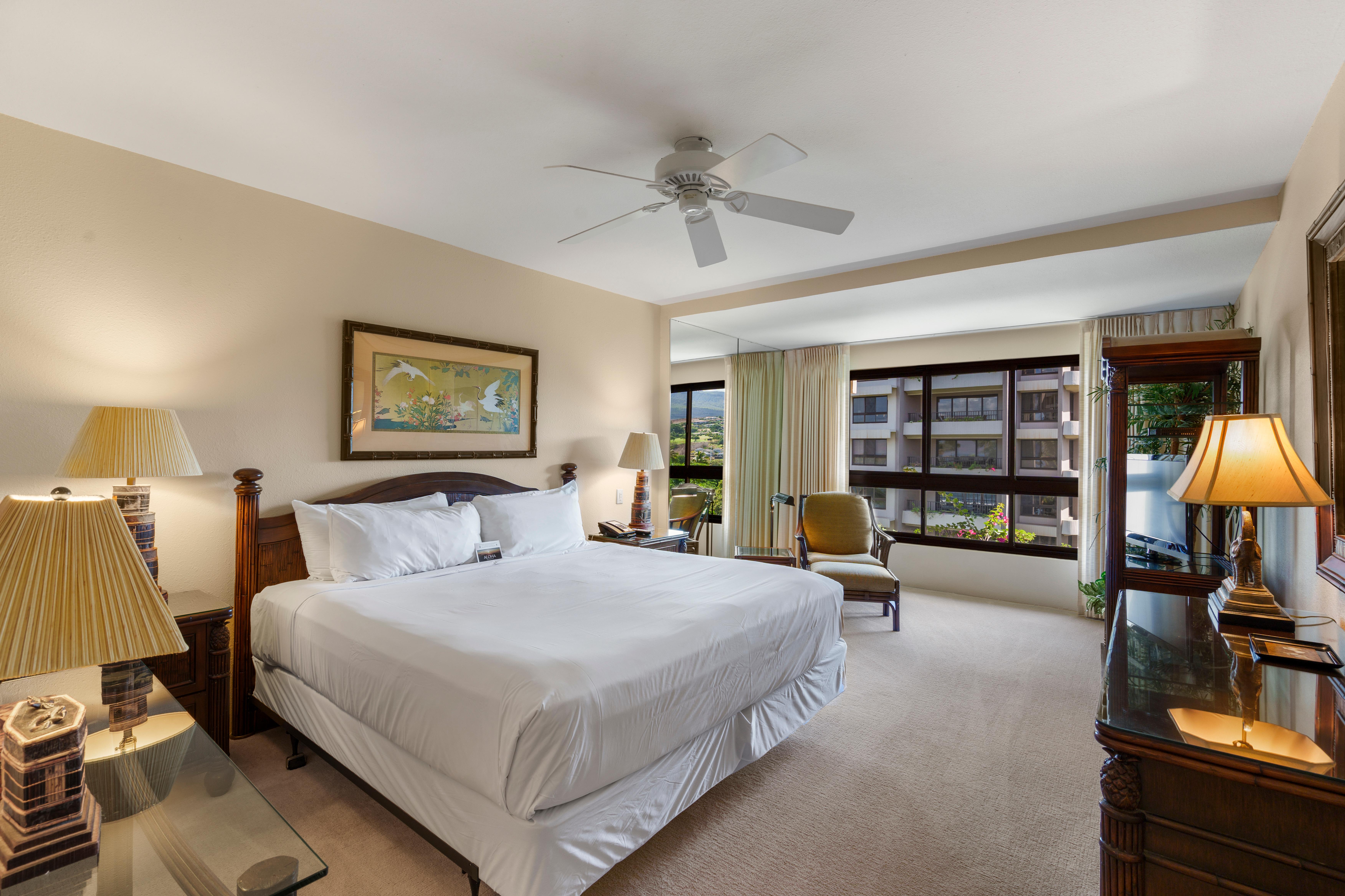 The primary bedroom is a peaceful retreat with its own seating area, perfect for reading or relaxing after a day on the beach. Spacious rooms and thoughtful design elements ensure guests experience the best of island living while enjoying every comfort of home. Kaanapali Alii 476 blends style, space, and true Hawaiian ambiance for an elevated Maui escape.
