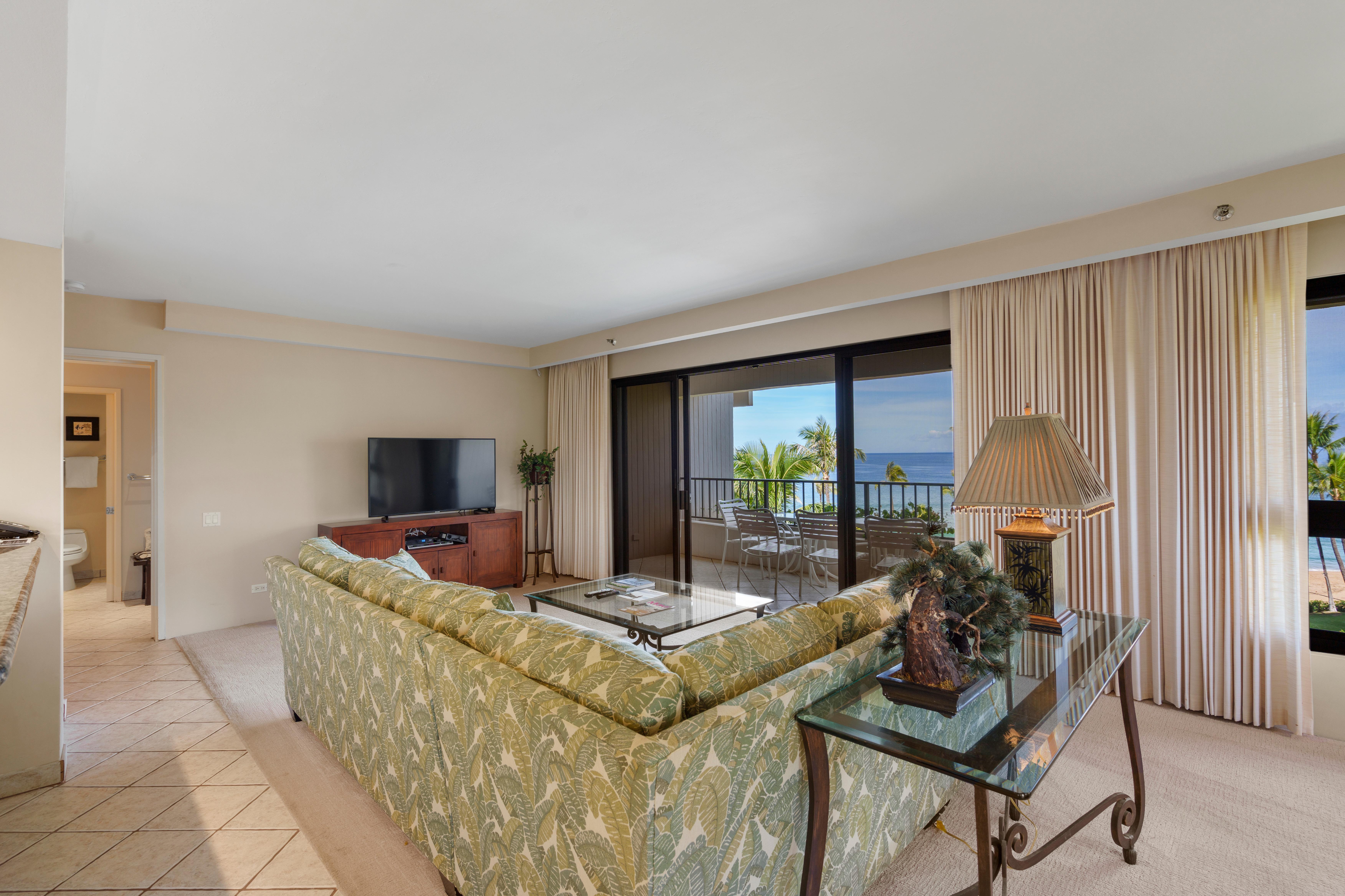 Welcome to Kaanapali Alii 476, a stunning condominium in Maui’s exclusive Kaanapali Alii Resort. This deluxe residence offers a beautiful view of the Pacific Ocean framed by swaying palm trees and the resort’s manicured grounds. Expansive windows and a spacious private lanai allow guests to enjoy the island’s natural beauty from morning to sunset, with plenty of seating outside for relaxing, dining, or simply taking in the ocean breeze.