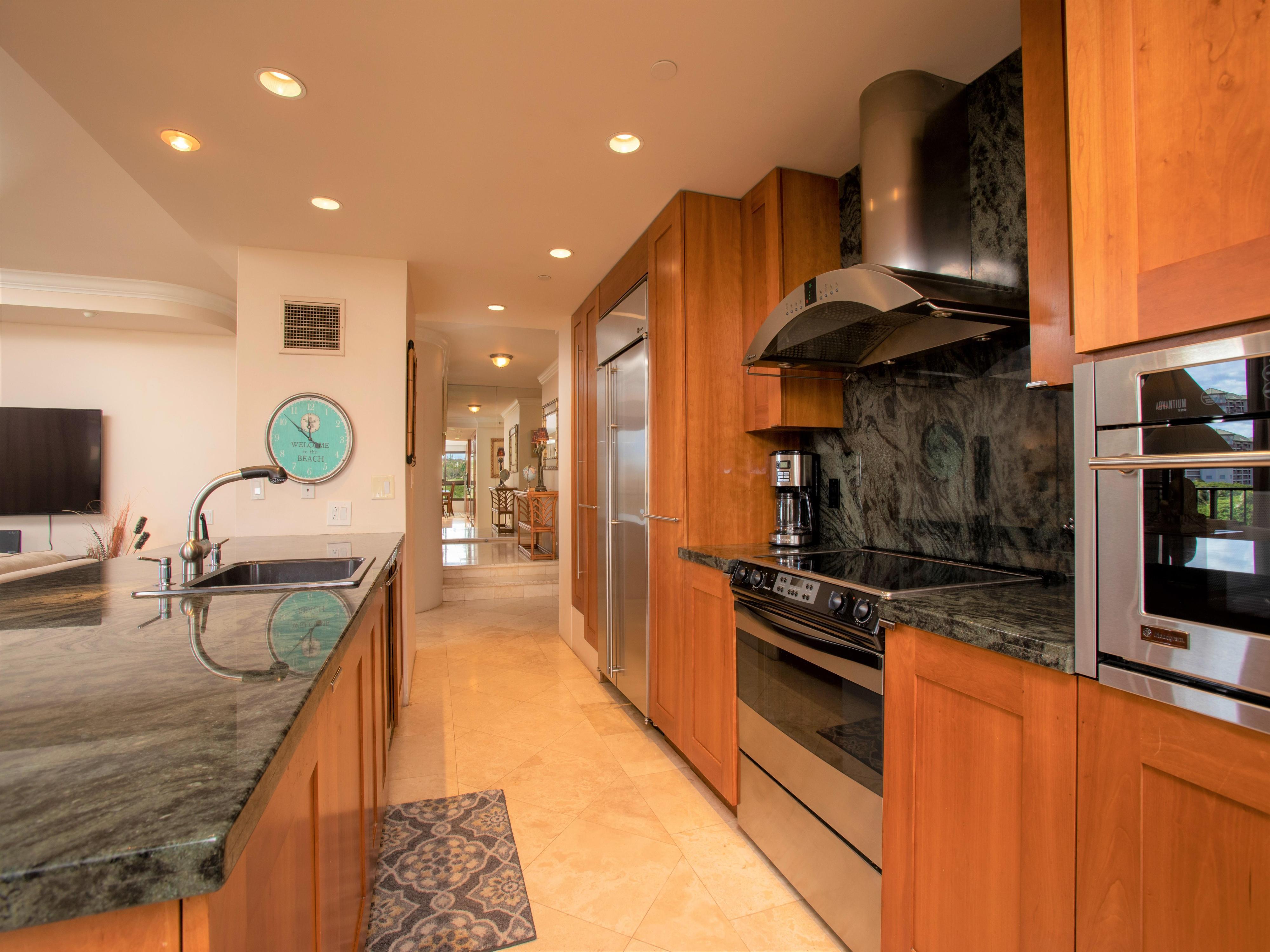 Gorgeous natural interiors and island-inspired decor make up the interiors of this condo. The dual couches in the living room combined with the coffee table and formal dining room table create plenty of comfortable options for gathering. Take the activities outside onto your private lanai overlooking the green Maui landscape. Relax on the padded chaise lounge with a book in your hand or play a board game with friends or family members on the lanai table.