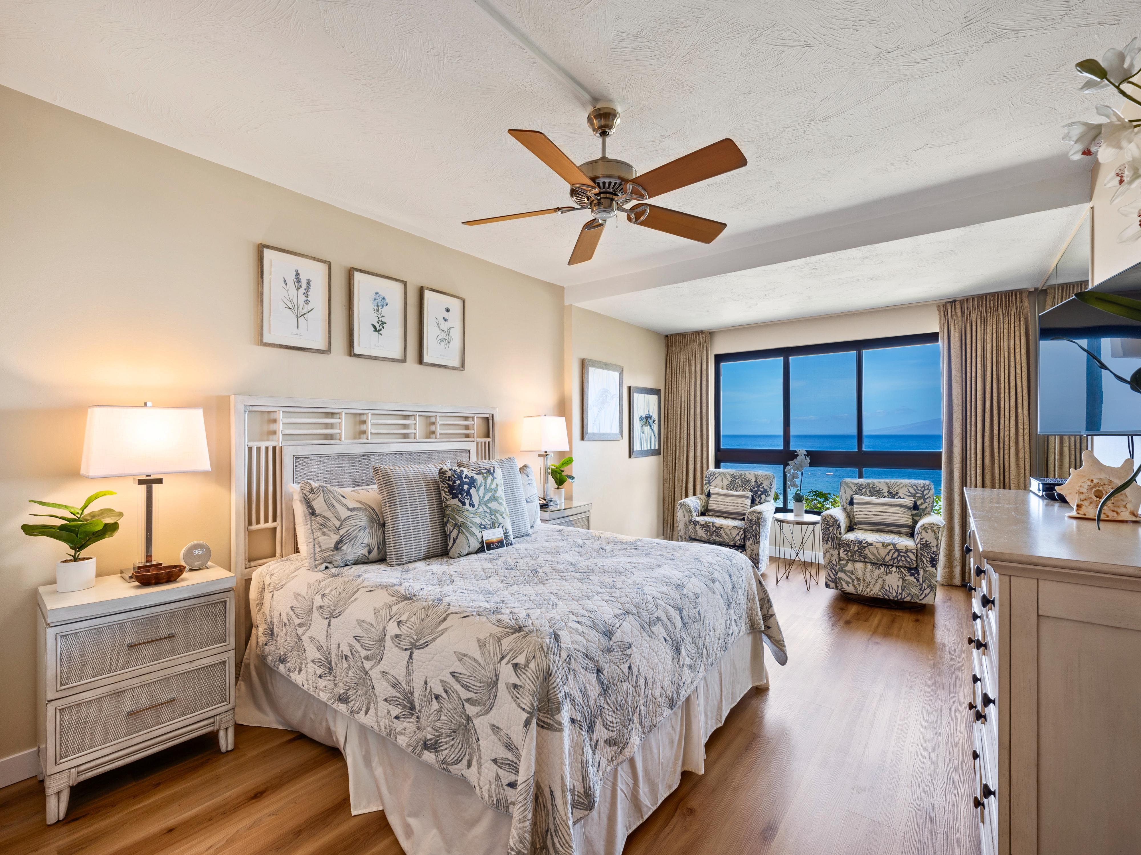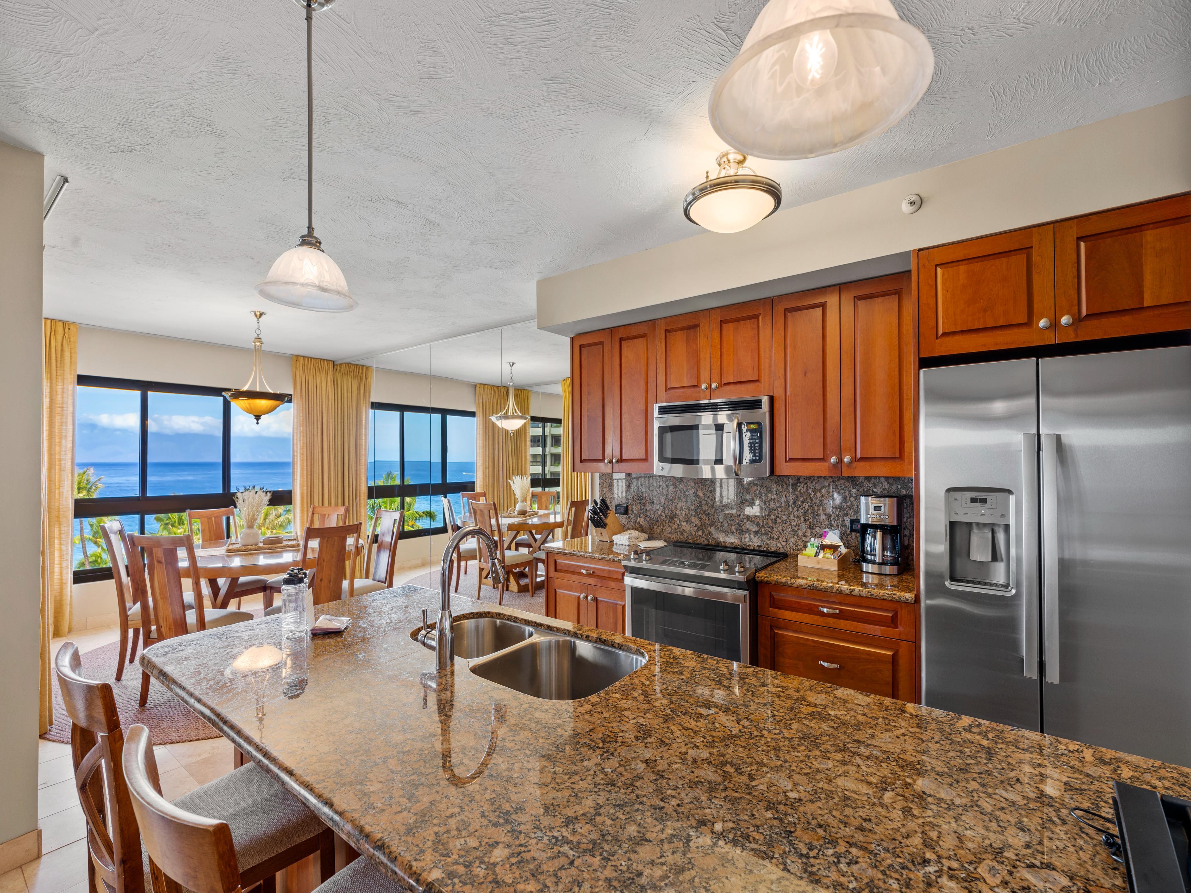Welcome to Kaanapali Alii 492, a gorgeous platinum-rated one-bedroom ocean-view condo with a fully enclosed den that comfortably serves as a second bedroom. This lavish residence offers a sweeping view of the Pacific Ocean stretching to the horizon, along with the sparkling white sand of Kaanapali Beach. Expansive windows and a spacious private lanai immerse you in the island’s natural beauty from the moment you arrive.