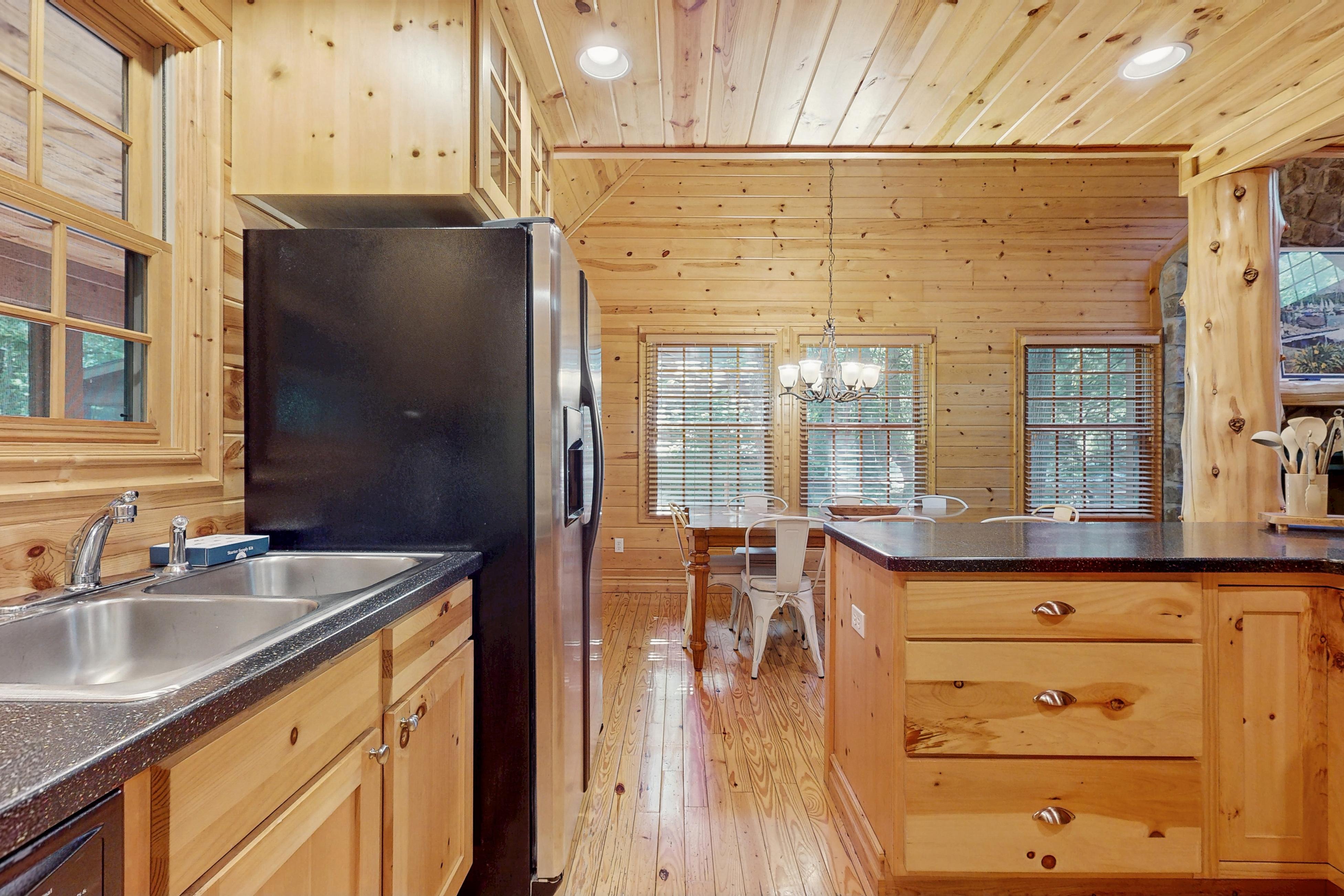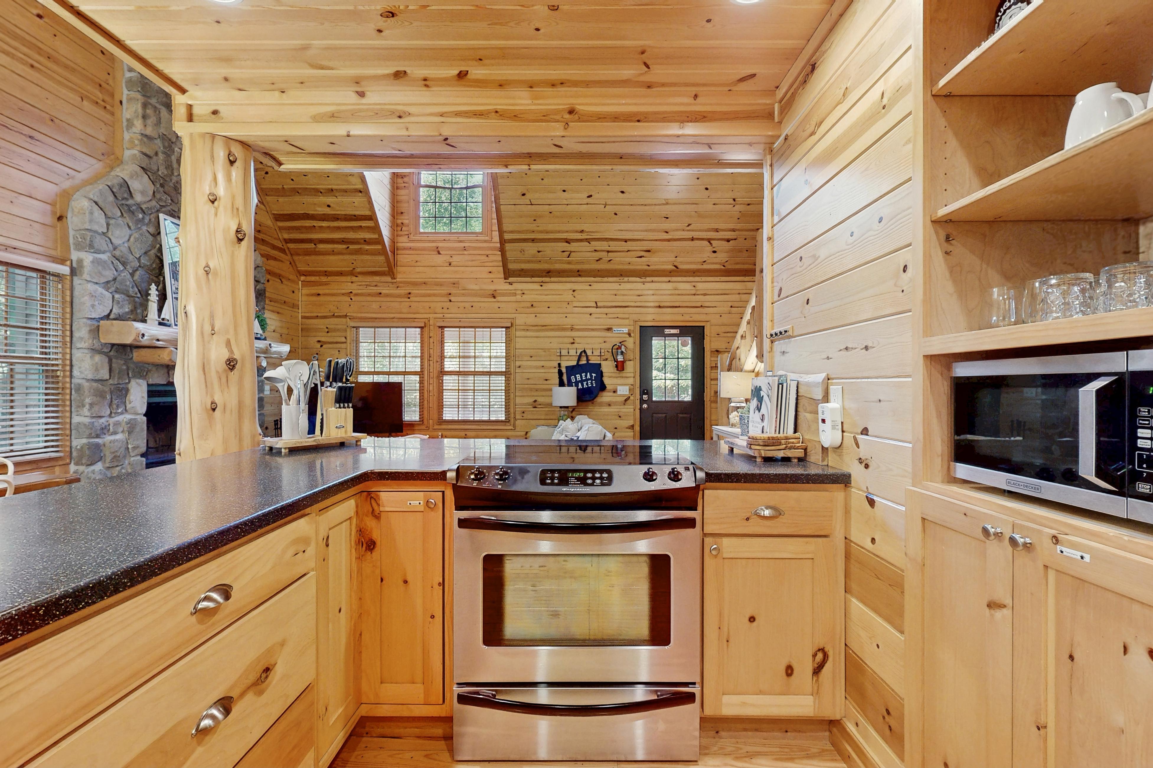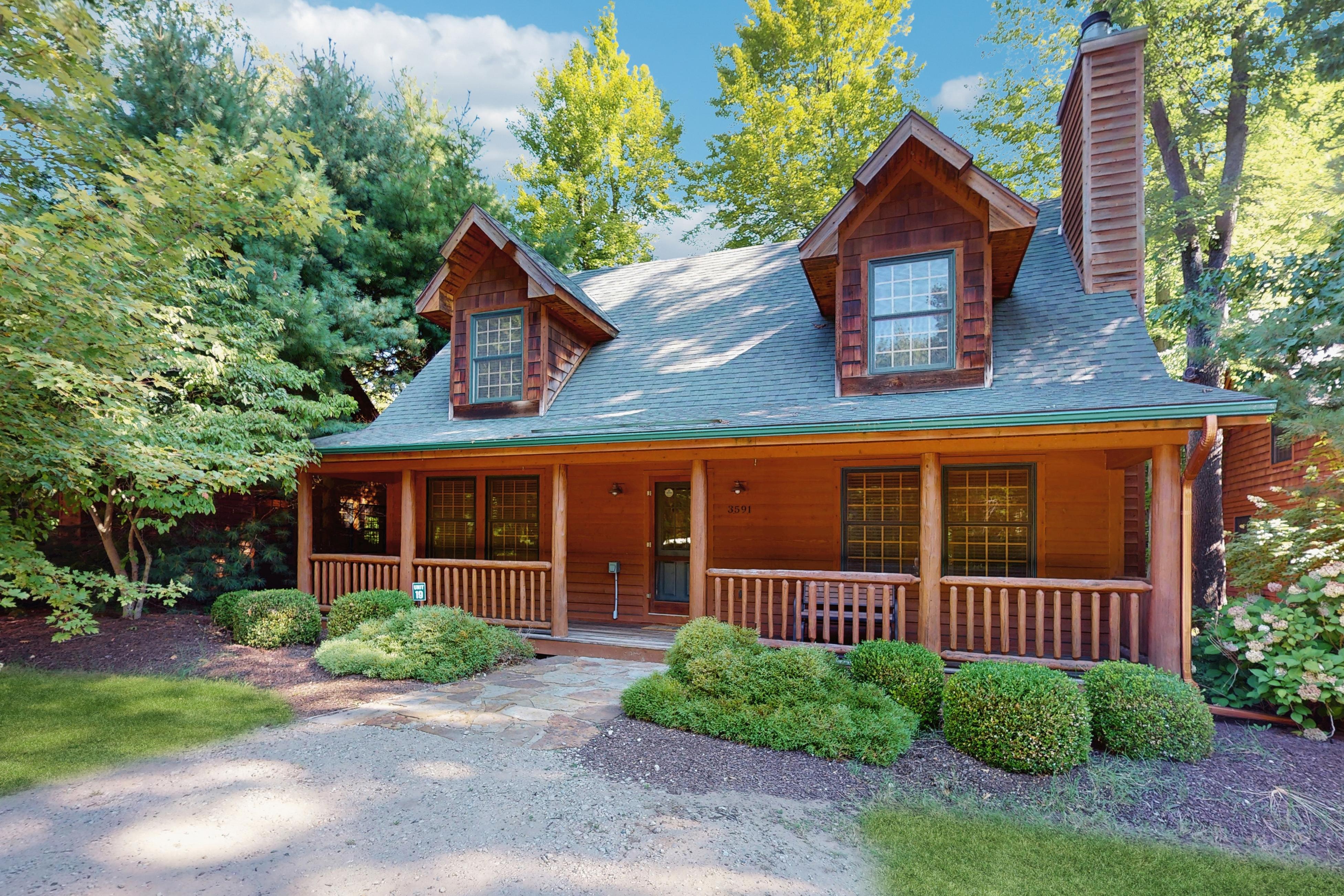 Get a taste of that rustic feel of a traditional cabin while still having all of the modern comforts you are used to here at Kingfisher Cove Cabin 19! As soon as you arrive, you will fall in love with the classic log exterior with shake accents and an adorable front porch. Step inside, and the tall ceilings, knotty pine accents, and massive stone fireplace complete the lodge aesthetic that never disappoints. Fueling up for a full day of adventure will be a breeze with the fully equipped kitchen featuring all of the major appliances and plenty of room to prep ingredients. After heading into town or making the most of the clear water of Lake Michigan, the screened back deck will be just the place to sip on a favorite beverage and reminisce with loved ones as the sun goes down. Plus, the free WiFi will allow you to stream favorite movies each night by the warmth of the fire until everyone dozes off to sweet dreams of more fun ahead!