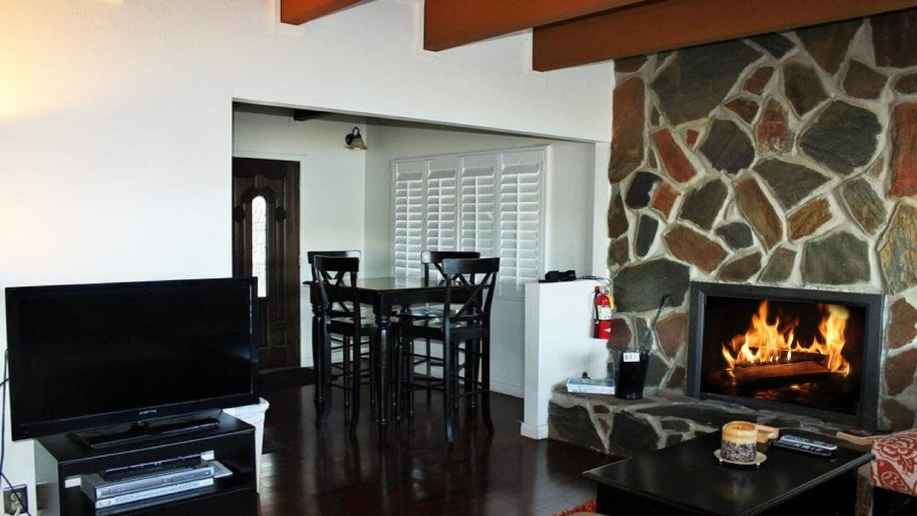 The open concept living space features a Well-Appointed Kitchen, a Dining Table, and a Comfortable Living Room with a Stone, Gas Fireplace - The perfect place to kick back and relax after a day on the Lake, a ride through the Forest or shopping in The Village. This unit has 1 bedroom with a luxurious King Bed and has a Full Bath as well.