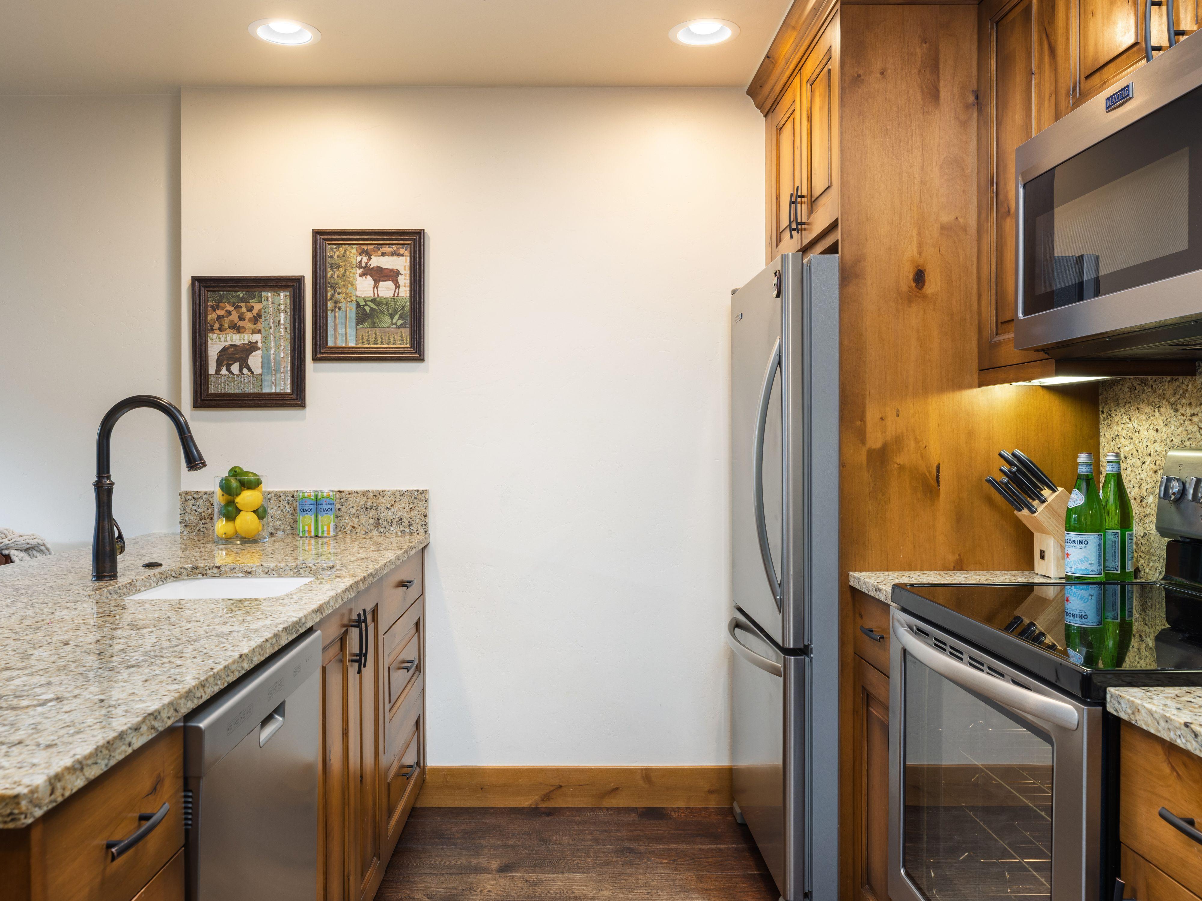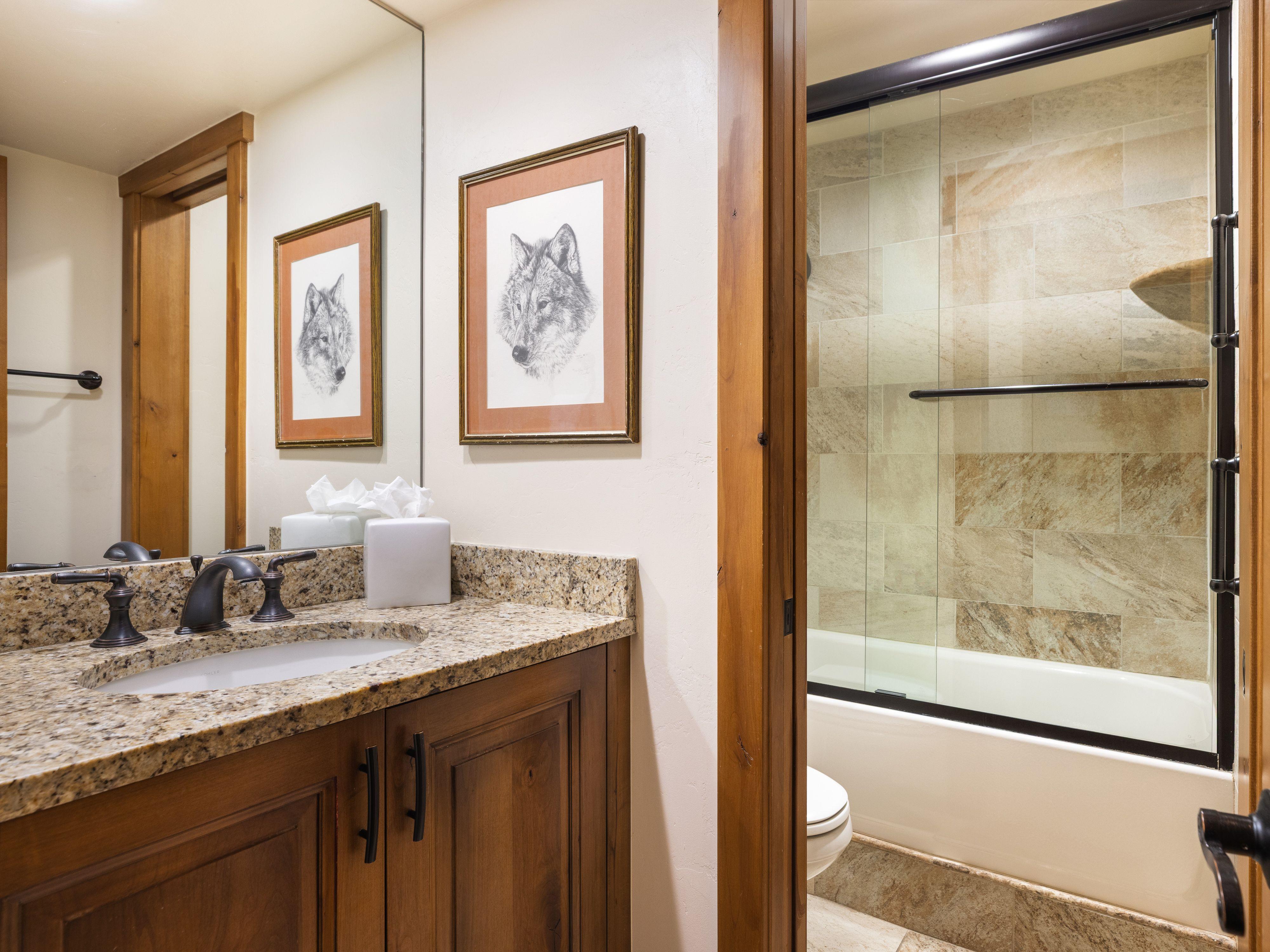Landmark West 108 is a cozy 660 square foot mountain view condominium located in the heart of Lionshead Village, offering a convenient and comfortable stay in Vail. This one-bedroom, one-bathroom unit features a master bedroom with a king bed and an additional bunk bed cleverly tucked into the hallway, along with a sofa sleeper in the living area, making it perfect for families or small groups. The condo boasts hardwood floors, granite countertops, and a fully equipped kitchen, creating a warm and inviting atmosphere. Relax in the living room with a flat-screen TV and standard cable television after a day on the slopes.