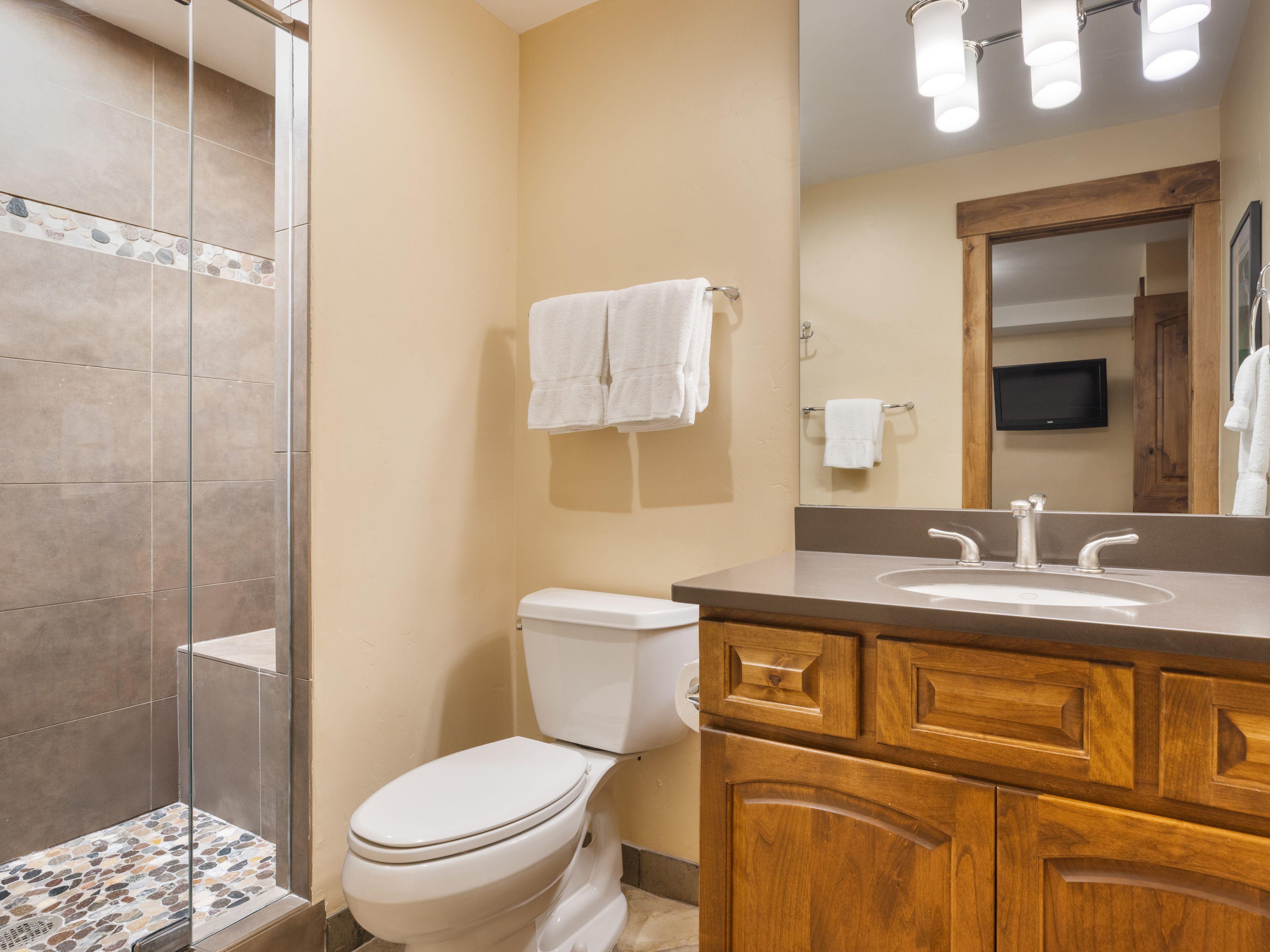 Landmark 119 is an inviting 800 square foot mountain view condominium in Lionshead Village, providing a spacious and versatile retreat for your Vail getaway. This one-bedroom plus flex space unit features a king bed in the master bedroom and a bunk bed in the additional flex area, with a sofa bed in the living room to accommodate up to six guests comfortably. Enjoy two bathrooms, a fully equipped kitchen with granite countertops.