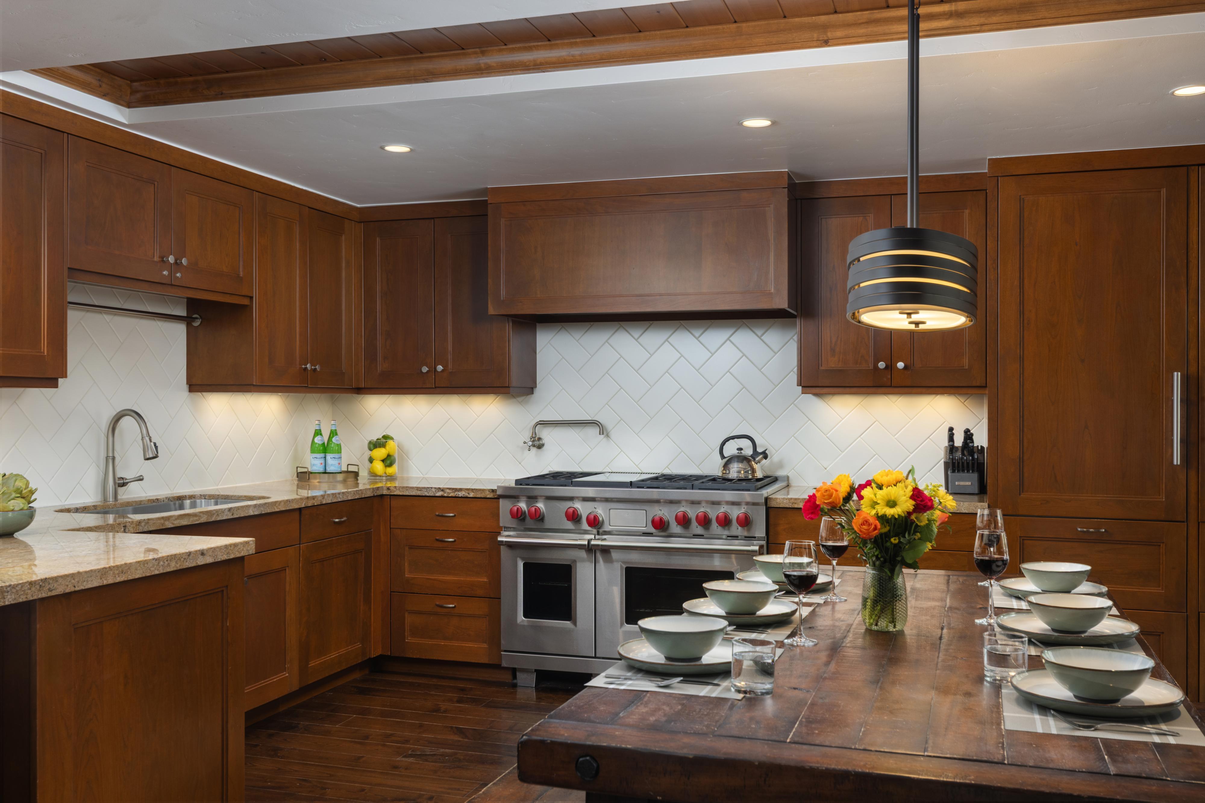Landmark 206 is a spacious 1,590 square foot north-facing condominium offering luxurious comfort and modern amenities. This unit features three bedrooms and three-and-a-half bathrooms, including a master bedroom with a king bed, a second bedroom with a queen bed, and a third bedroom with a bunk bed. The living room includes a sofa sleeper and a flat-screen TV, while the fully equipped kitchen boasts high-end Wolf appliances, granite countertops, and hardwood floors. Enjoy air conditioning in this well-appointed Vail residence.