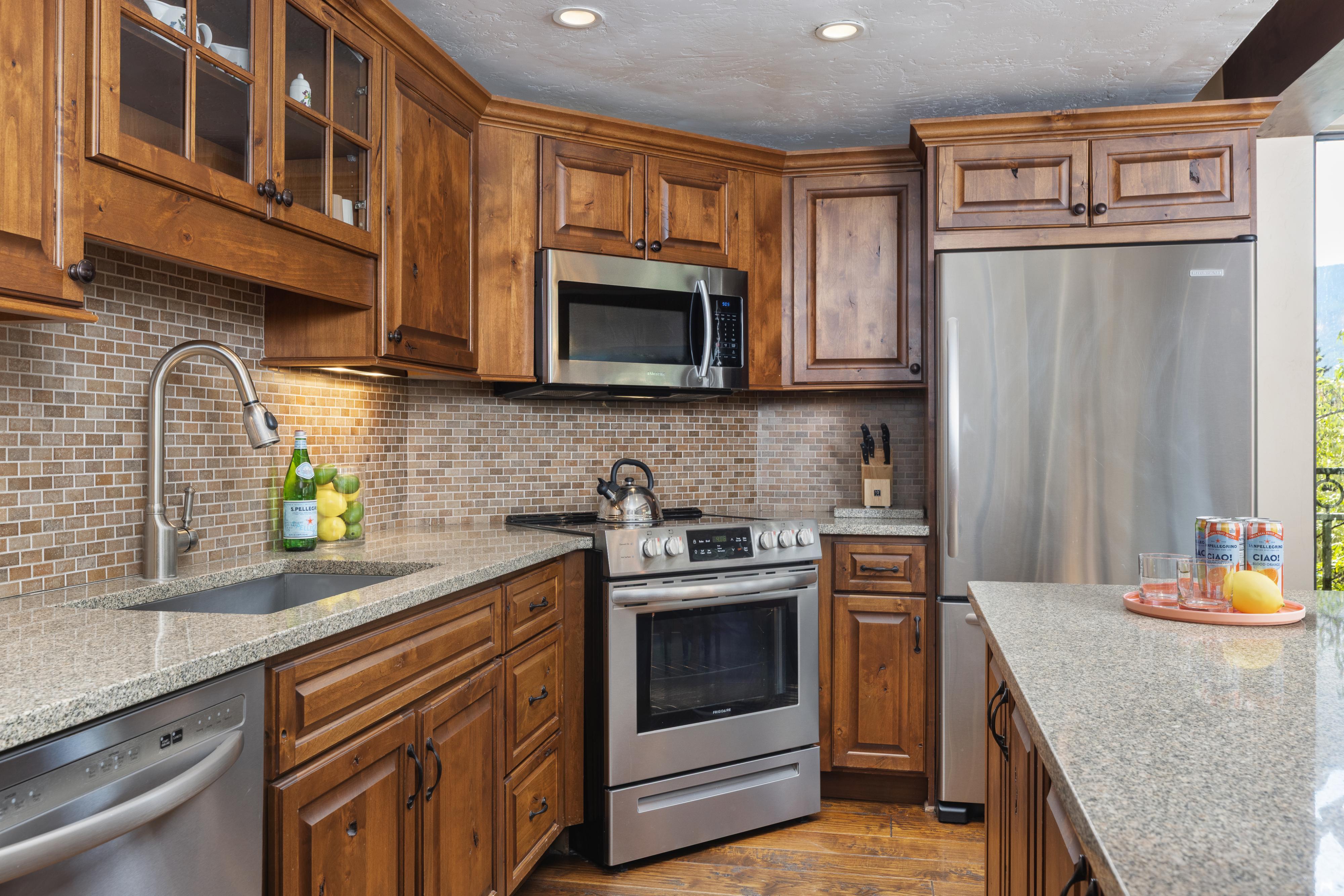 Landmark 301 is a 1,020 square foot mountain view condominium in Lionshead Village, providing a comfortable and stylish retreat. This unit features two bedrooms and two bathrooms, with a king bed in the master bedroom and a queen bed in the second bedroom. The living area includes a sofa sleeper for additional guests, and the condo is equipped with a fully stocked kitchen, granite countertops, and hardwood floors. Enjoy standard cable television and a flat-screen TV in the living room, as well as the convenience of an in-unit washer and dryer.