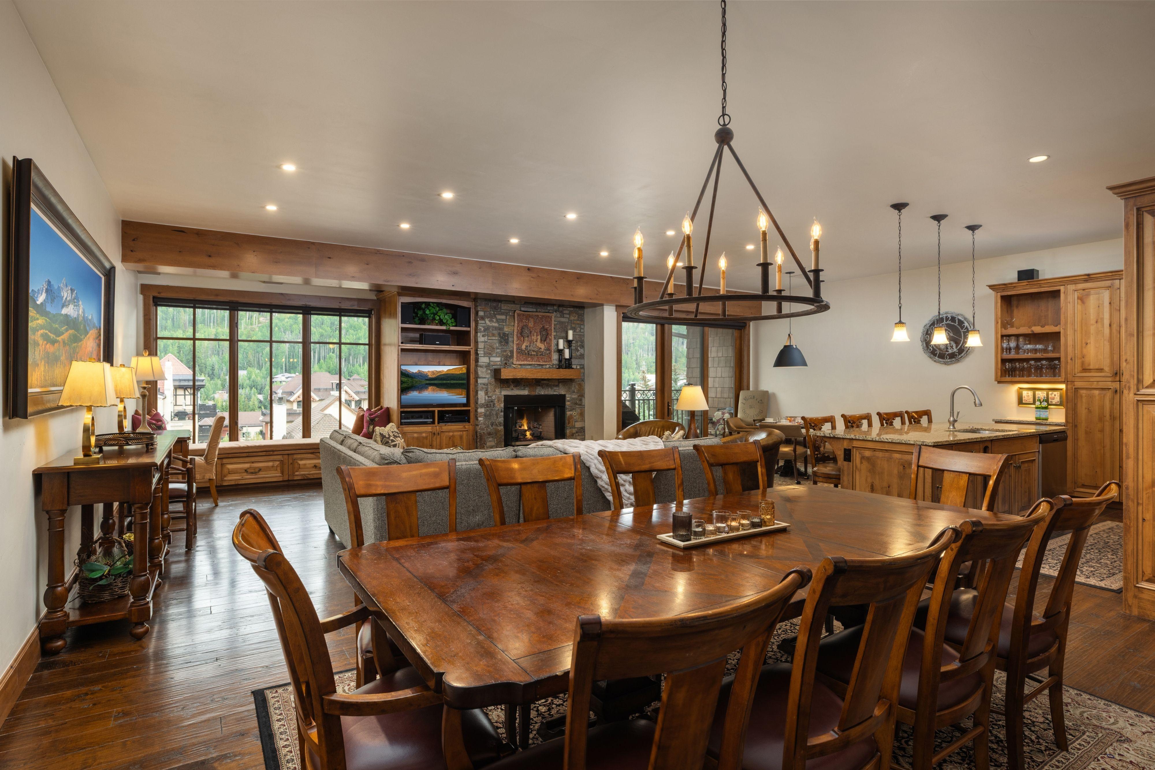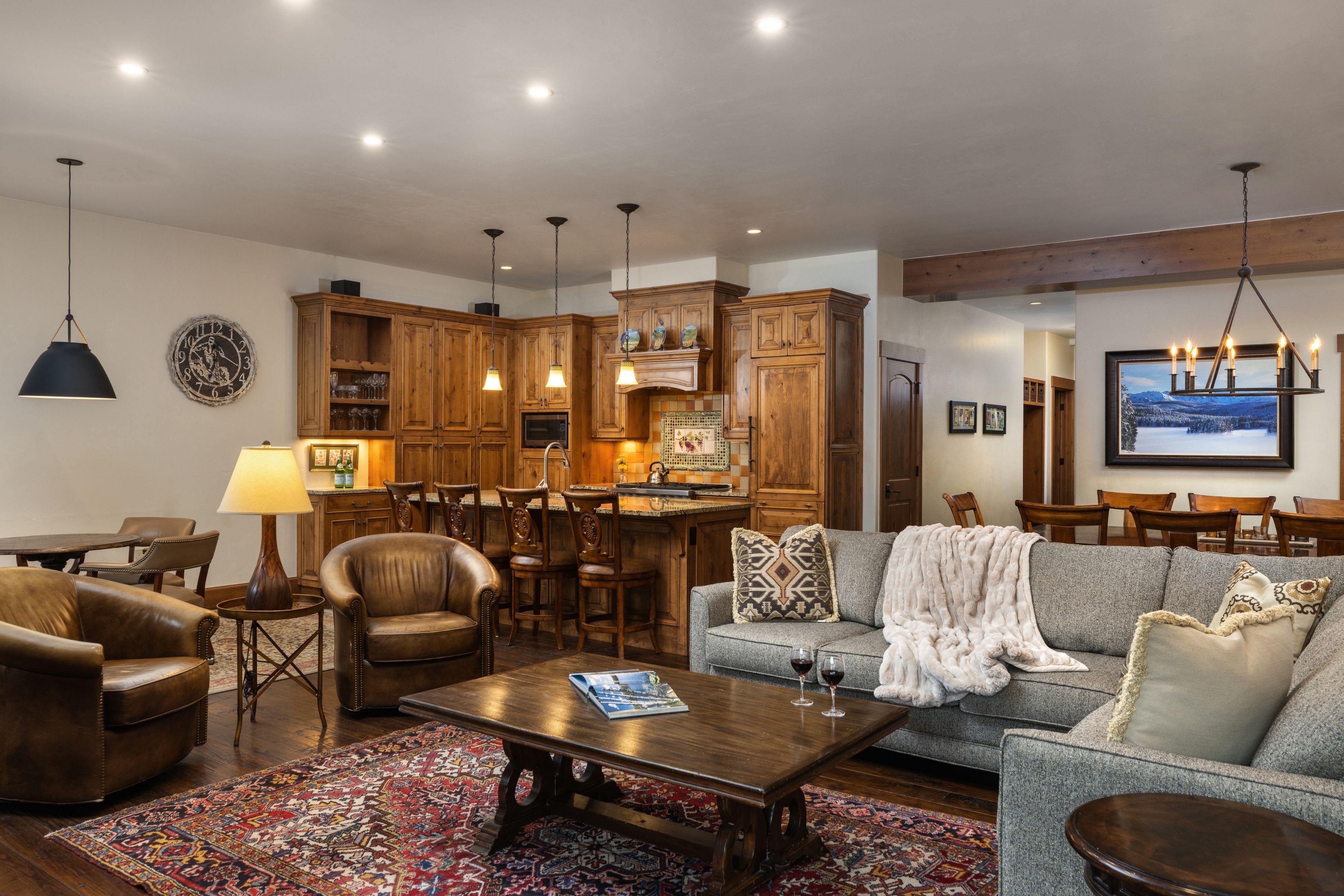 Landmark 507 is a luxurious 2,300 sq ft penthouse offering breathtaking panoramic views and an exceptional location just steps from the mountain and Lionshead Village. The upscale four-bedroom, four-bath condo is ideal for families, couples, or executive retreats. The expansive living and dining areas feature sophisticated finishes such as hardwood floors, granite slab counters, and tumbled marble bathrooms. The great room includes a stone gas fireplace, home theater system, and plush leather furnishings, while the gourmet kitchen boasts Wolf stainless steel appliances and a large island. The dining area seats 10, with an additional table for four. Sleeping arrangements include a master bedroom with a king bed and private bath, a second bedroom with a Split King that converts to twins, a third bedroom with a queen bed and private bath, and a fourth bedroom with Captain bunk beds and a private bath. Additional amenities include a washer/dryer, daily maid service in winter, a balcony with views of the pool and Vail Mountain.