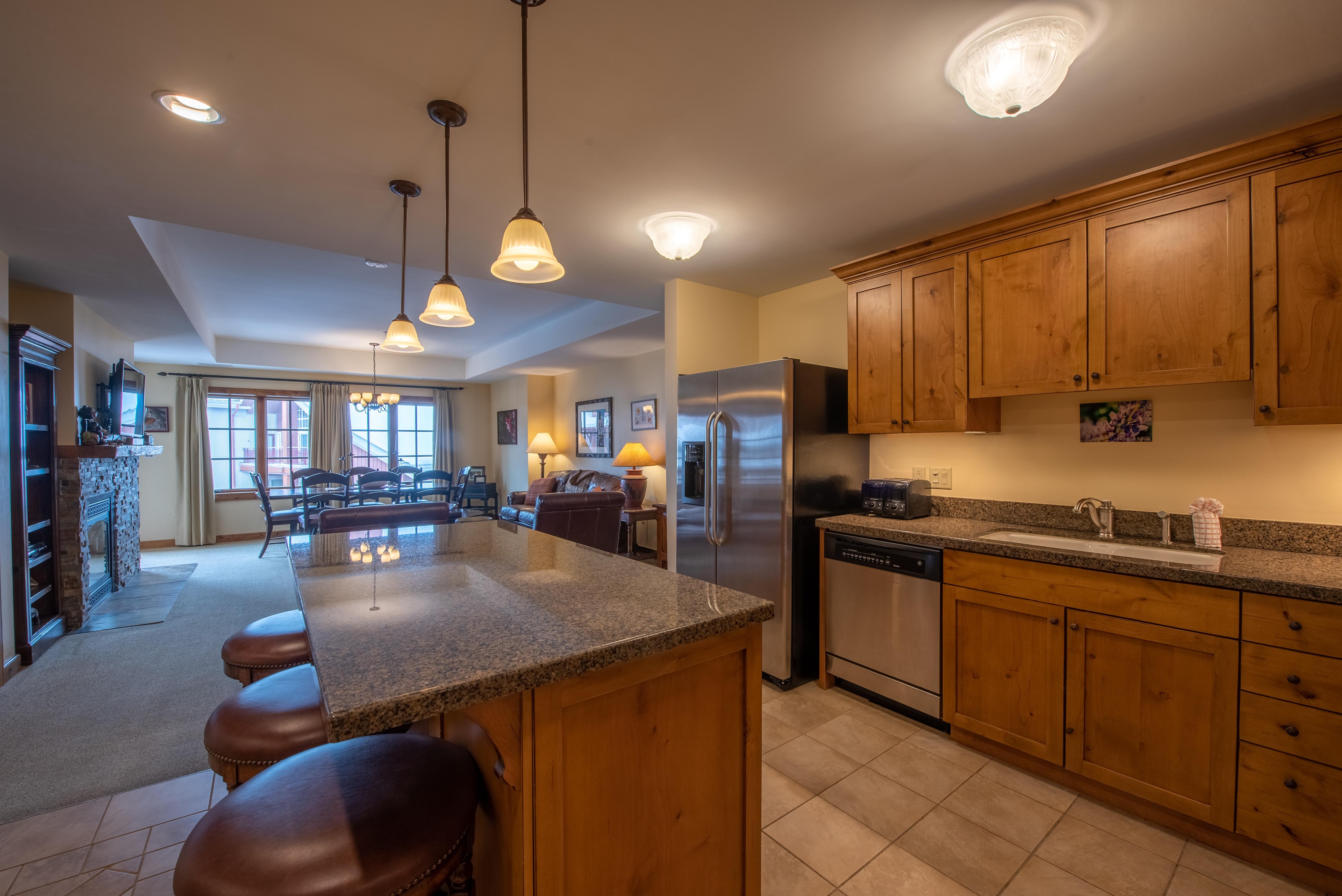 Lodge at Mountaineer Square just steps from the slopes. 6 people sleep
