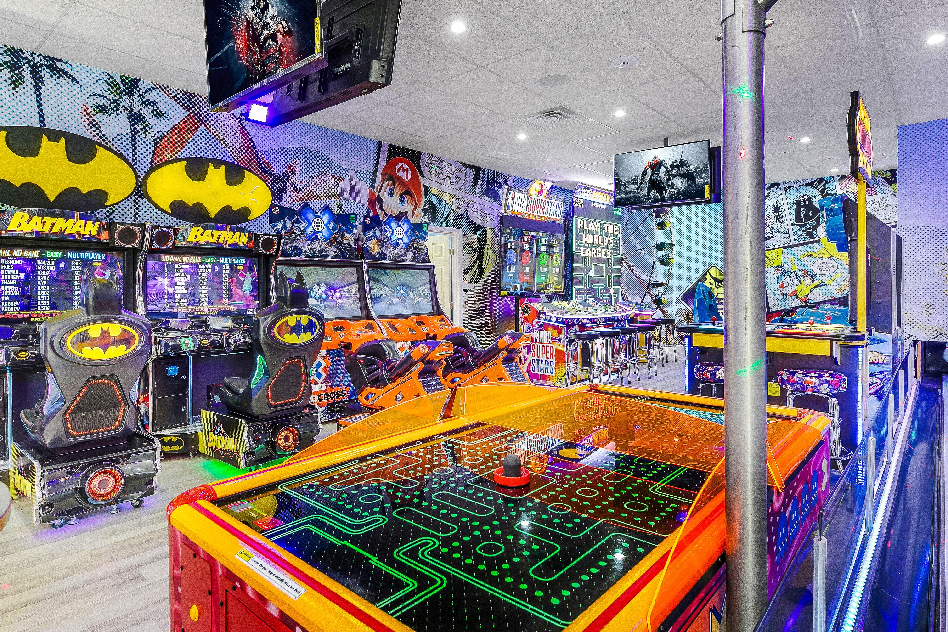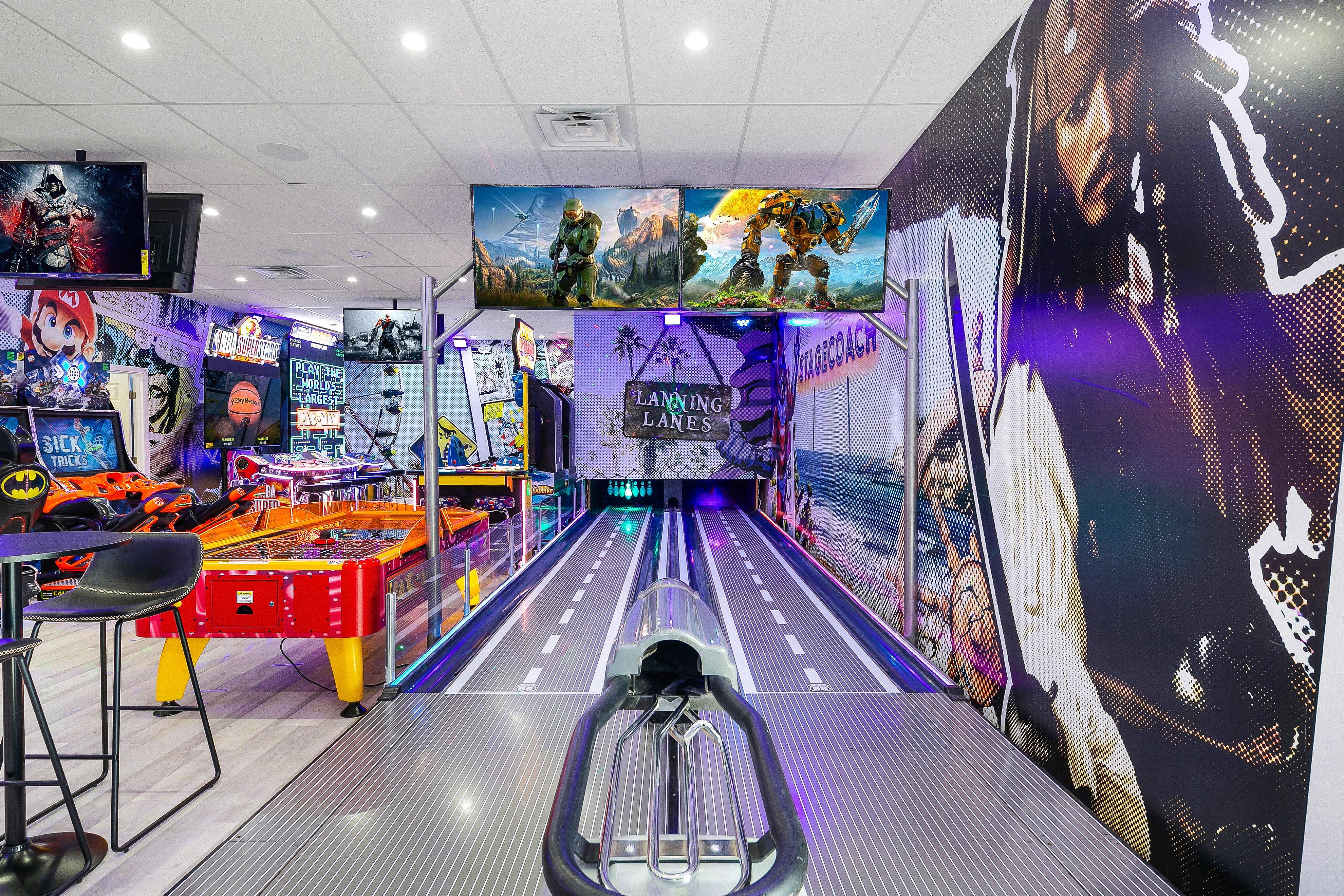 - Bedroom 7 (Ensuite): Bunk Room with 2 Queen over Queen Bunks (4 Queens) and Two Twin beds, which makes up 6 beds total with an elegant bathroom and 60" Smart TV