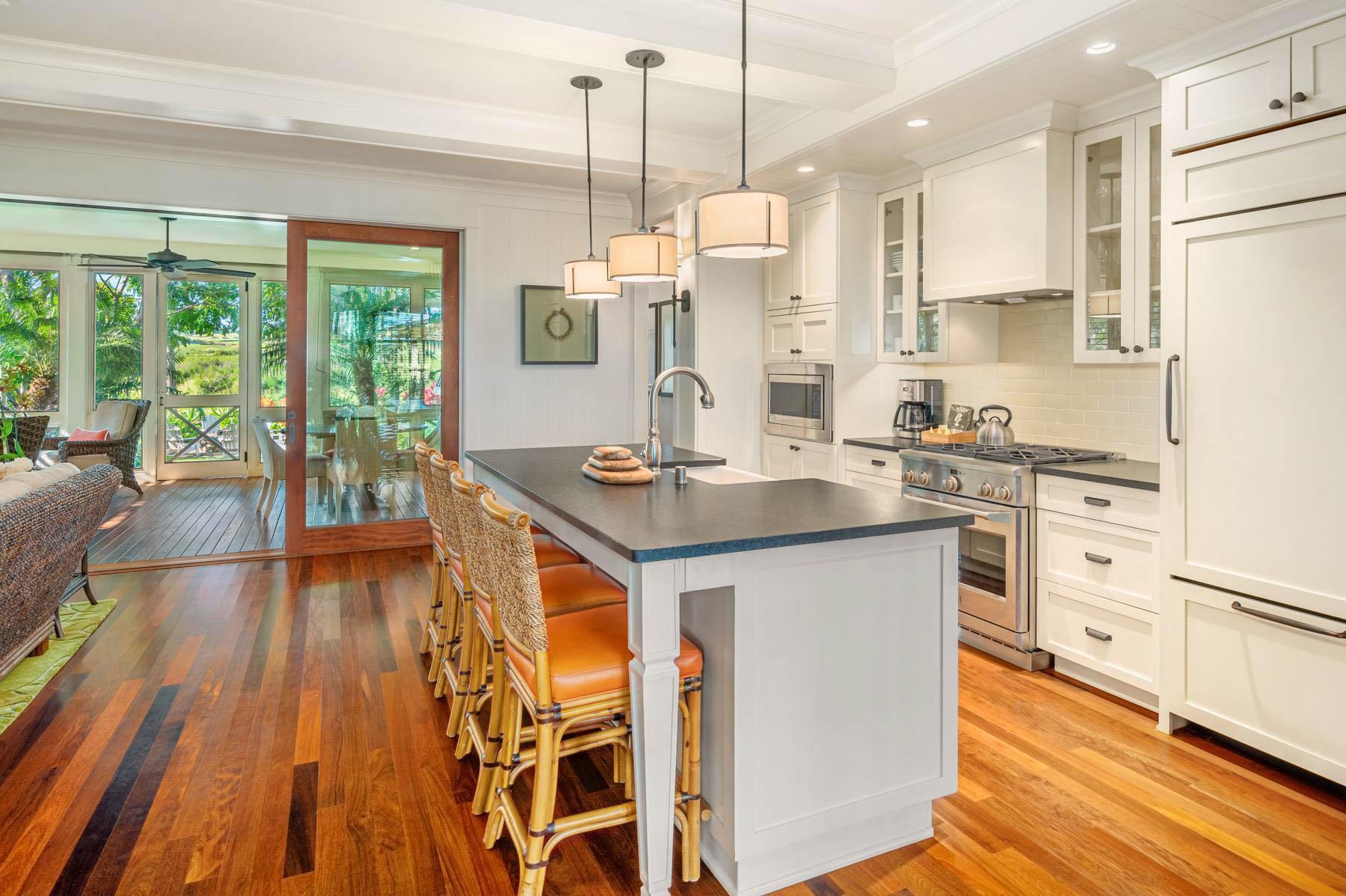 This open-air three-bedroom cottage features one main plantation-style cottage with two bedroom suites and a stand-alone one-bedroom 'ohana. Situated within easy walking distance of the amenities of The Club at Kukui'ula, Cottage 12B has a prime location for guests looking to experience all that The Club has to offer. The open floor plan places the kitchen at the heart of the home with comfortable indoor and outdoor living spaces and dining areas. In the private backyard, a firepit and a grilling area await.