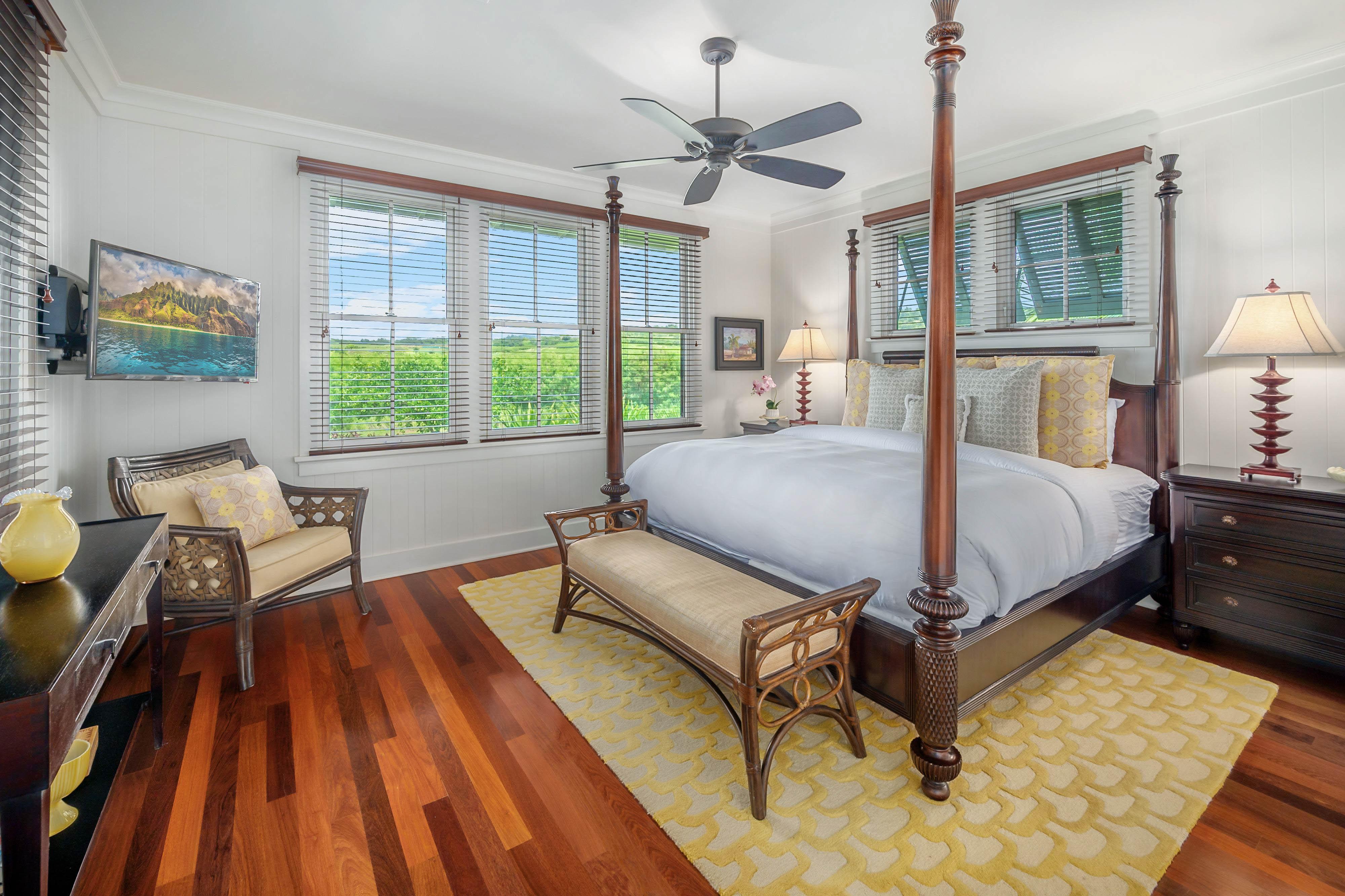 In the private backyard, a firepit and grilling area await. Plan a night under the stars as you prepare an island-inspired meal. Situated within walking distance of The Club at Kukui'ula, Cottage 15 allows guests to easily access the resort’s many offerings, including the world-class golf course, pampering spa, labyrinth of pools, and sprawling grass lawns.