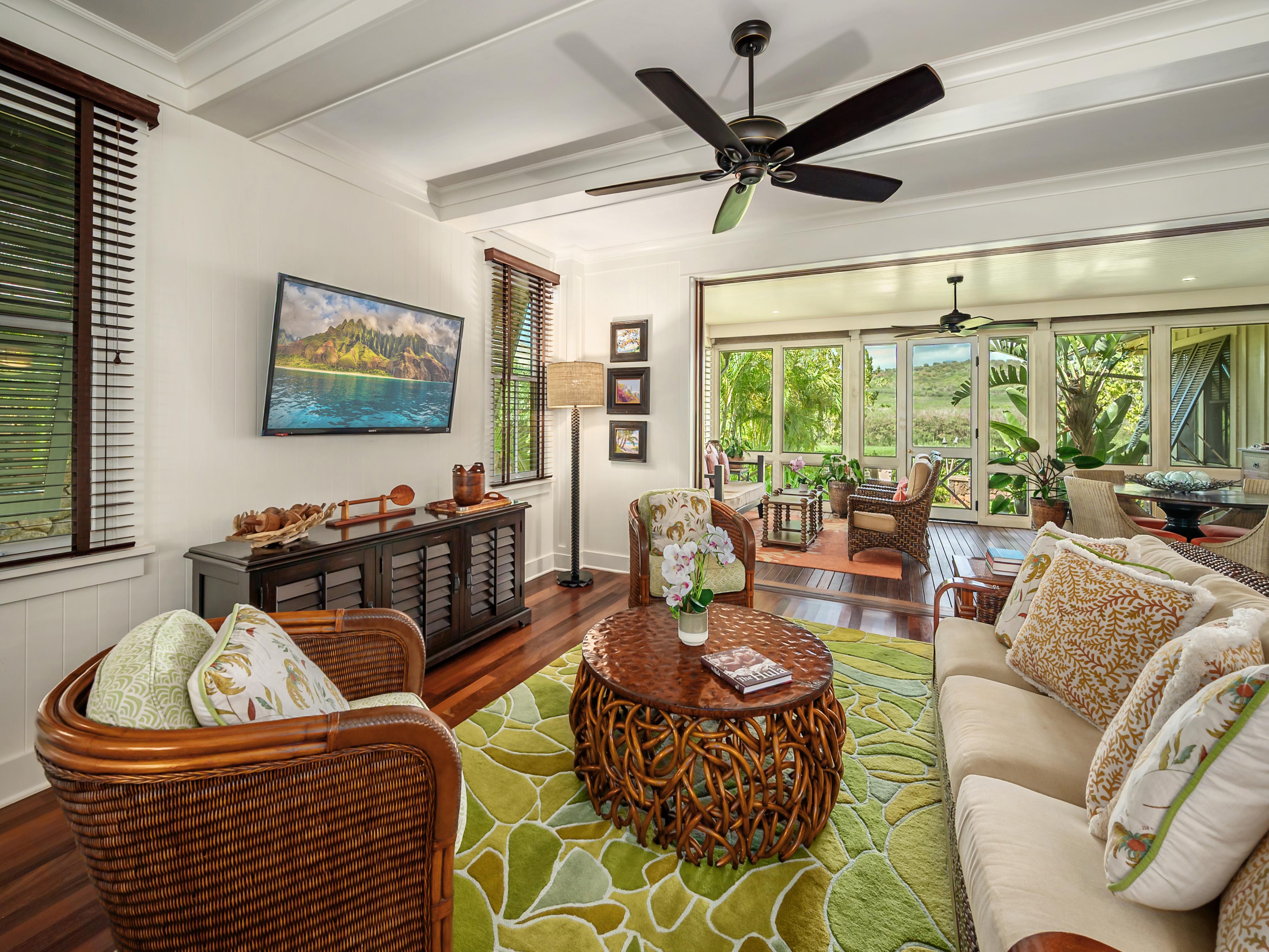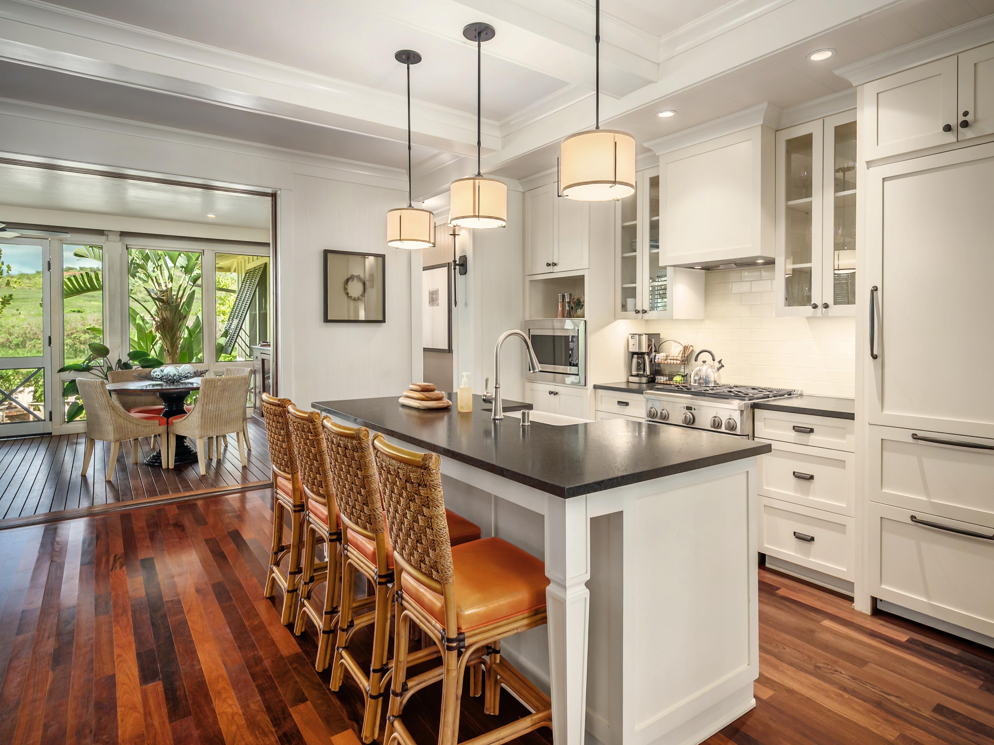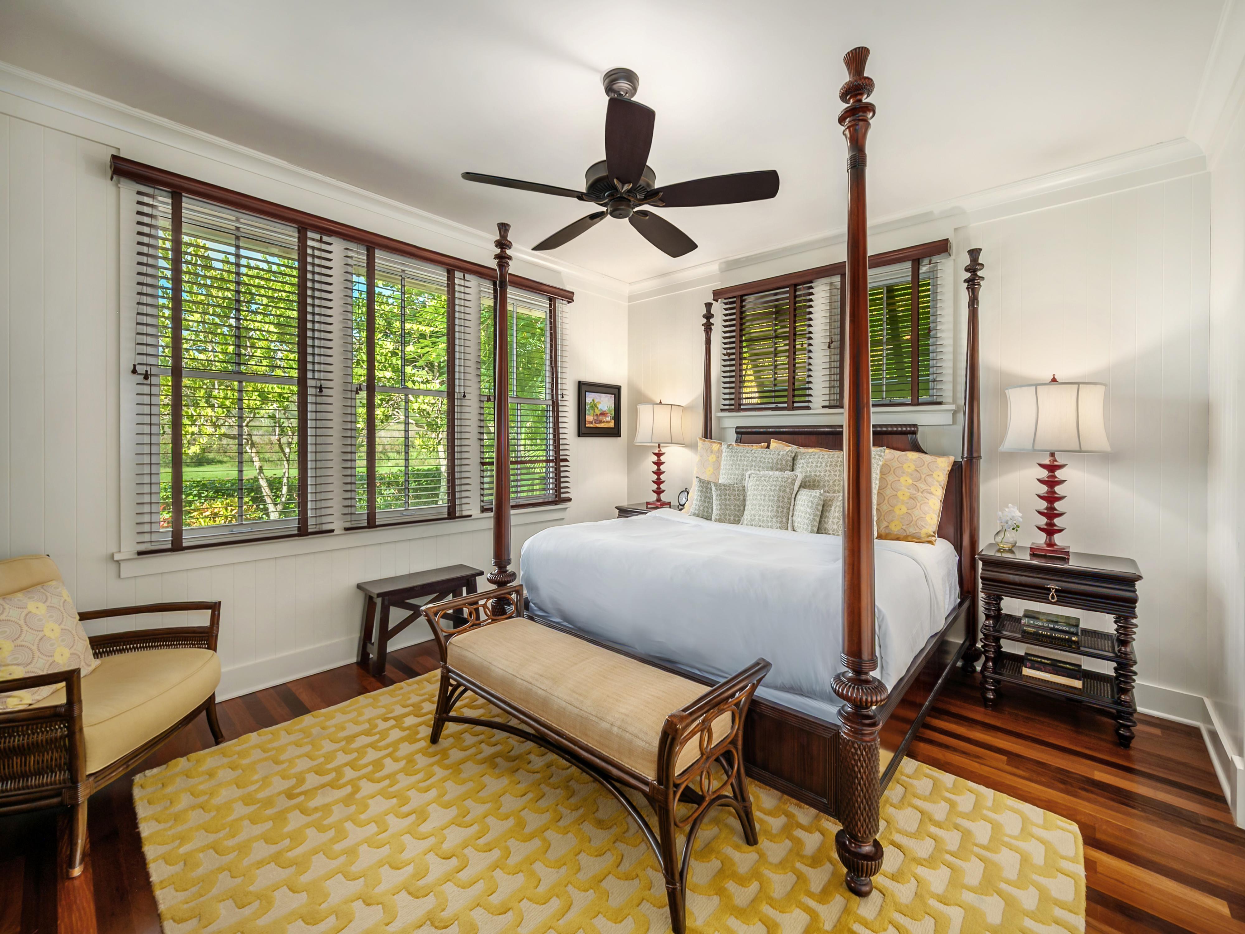 Welcome to Cottage 6, your idyllic retreat nestled in the heart of Koloa. This charming 3-bedroom, 3.5-bathroom cottage offers a perfect blend of comfort and luxury, accommodating up to six guests. Each bedroom features a plush king-sized bed, ensuring a restful night's sleep. The private suite boasts an en-suite bathroom, while the other two bedrooms share a full bathroom. An additional half-bathroom is conveniently located near the living area.