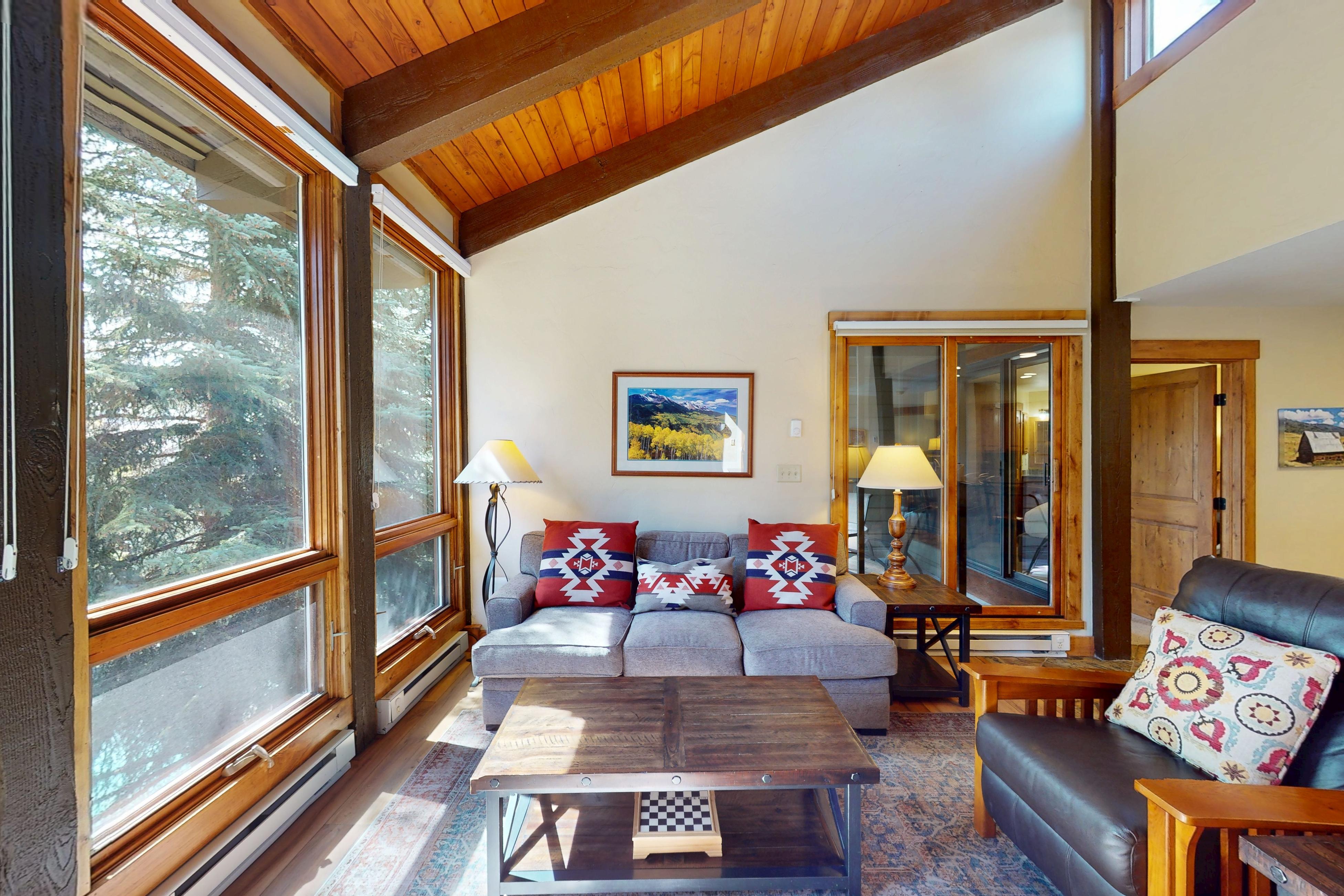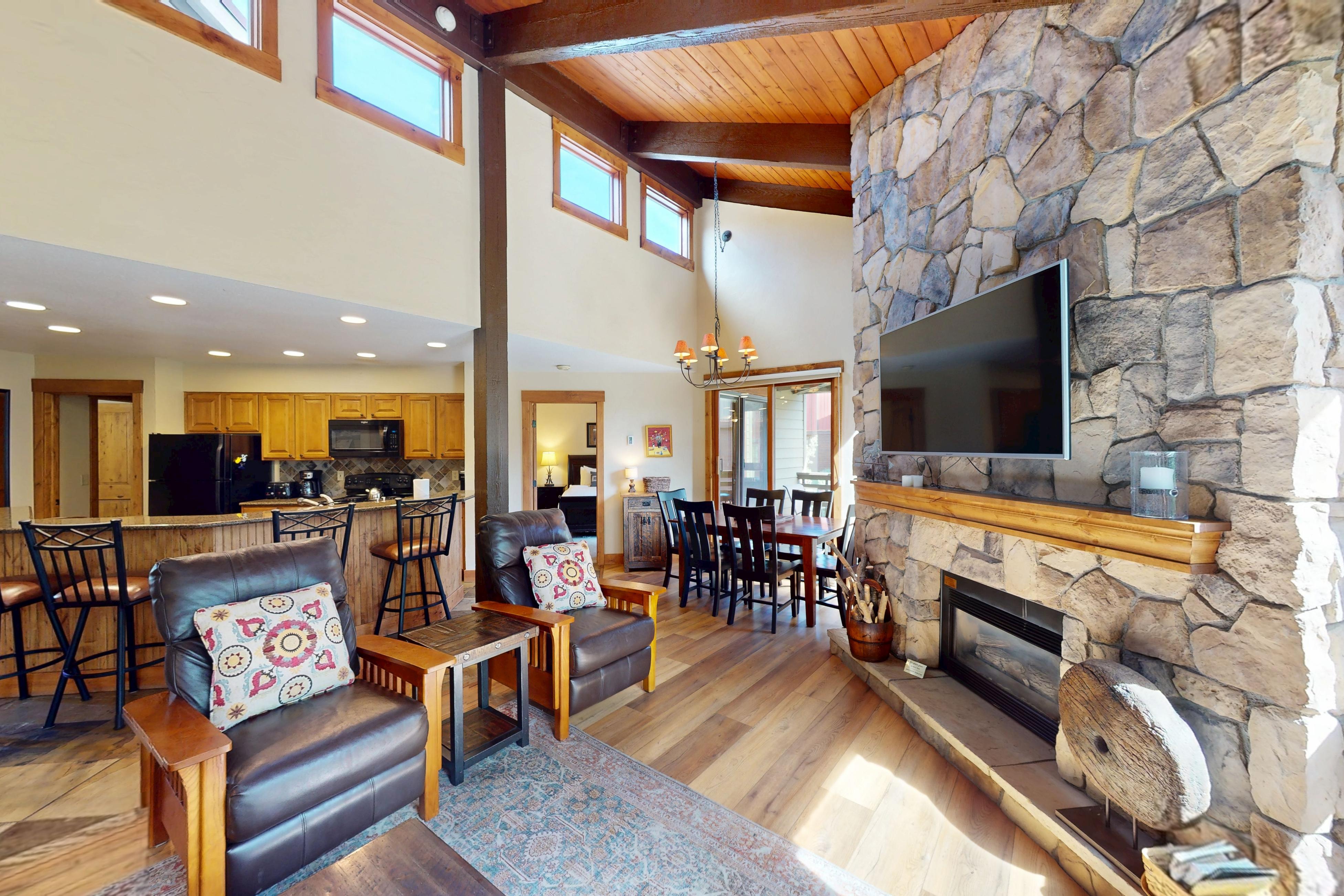 Whether you're here for the waterfall hikes and Yampa River tubing, some pampering at Strawberry Hot Springs, or the spectacular winter ski runs on Mt. Werner, you're going to love making this mountainside lodge your home-away-from-home during your next family vacation! This is a beautiful top-floor condo with high beamed ceilings and wonderful light. It has a shared washer/dryer and a well-equipped, full kitchen, which should come in handy considering how close you'll be to the downtown Saturday morning farmers market. The living area includes a huge stone hearth with a gas fireplace and all new flooring and furniture. Catch a view of Thunderhead Mountain as you warm yourself with a cozy fire or step outside onto two furnished balconies to enjoy morning coffee.