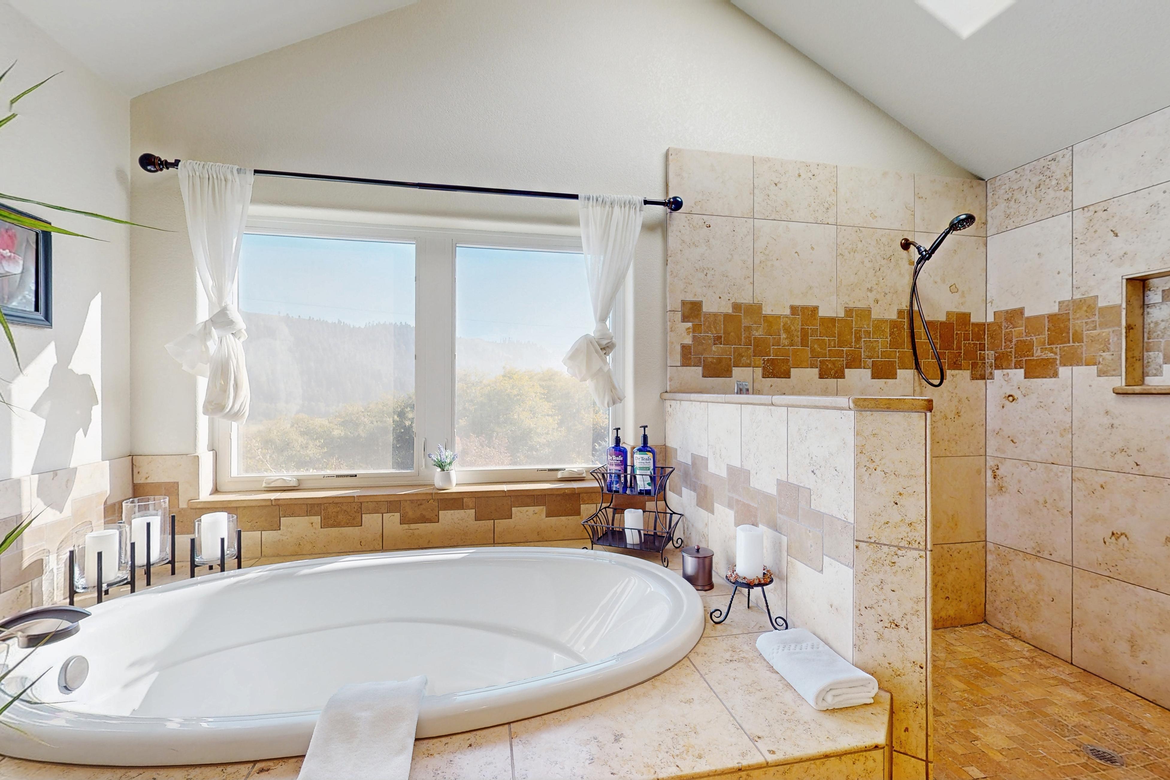 A prime home base for exploring Redwood National and State Parks, this hillside home is just a few miles from such landmarks as Prairie Creek Redwoods State Park, Fern Canyon, and wild ocean beaches. Welcoming you home from your daily excursions is an open living space that's lined with windows, allowing you to take in the view whether you're watching TV or setting the table for dinner. The kitchen is beautifully equipped with stainless steel appliances (including a French-door refrigerator, a six-burner gas range, and a dishwasher) and a breakfast bar.