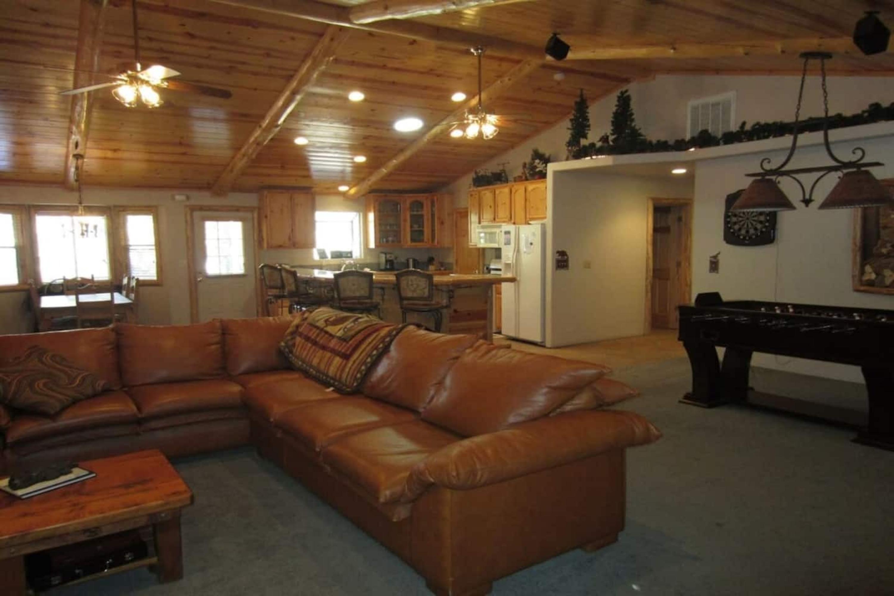 Cozy up to a wonderful fire in the living room or master bedroom, take soak in the relaxing whirlpool tub in the primary bath, or play an exciting game of Foosball. Go out on the back deck and have a delicious Bar-B-Q while you listen to the wind blow through the tall pines. After a long day of snow skiing, take a soak under the stars in the hot tub. Once you are here you won't want to go home!