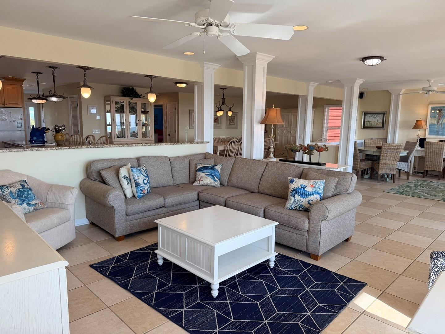 gatherings. This 7-bedroom, 5 ½ bath oceanfront retreat offers stunning
