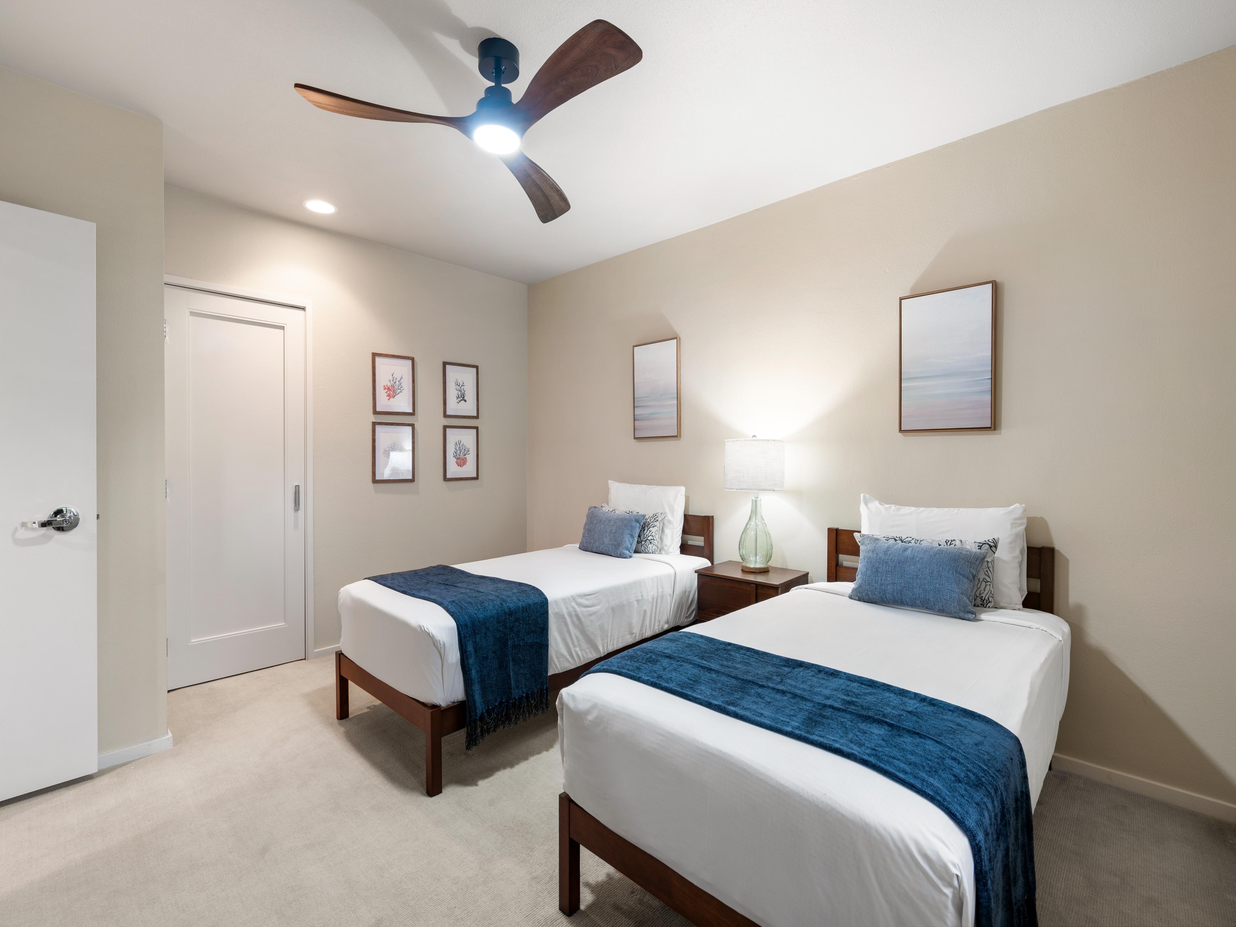The master bedroom boasts a plush king bed, ensuring a restful night's sleep, while the second bedroom offers two twin beds, ideal for families or friends traveling together. Both bedrooms have private access to the balcony, where you can enjoy breathtaking ocean views and the soothing sound of waves.