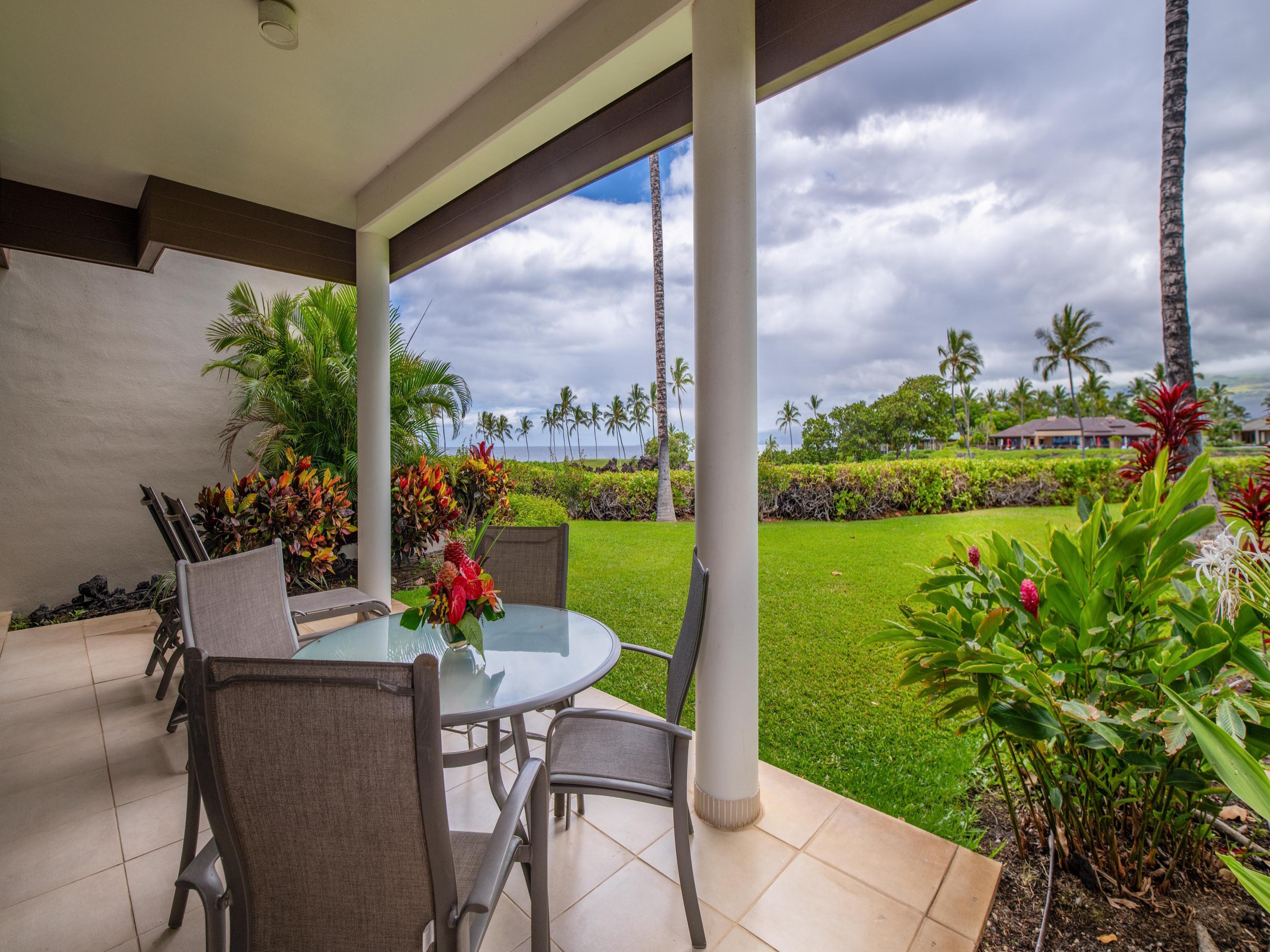 Start your day on the lanai, listening to the birds sing while sipping your morning coffee, or savor a sunset dinner accompanied by the cool ocean breeze. With ample space to lounge with a good book, you can fully appreciate the breathtaking beauty of the Big Island all around you.