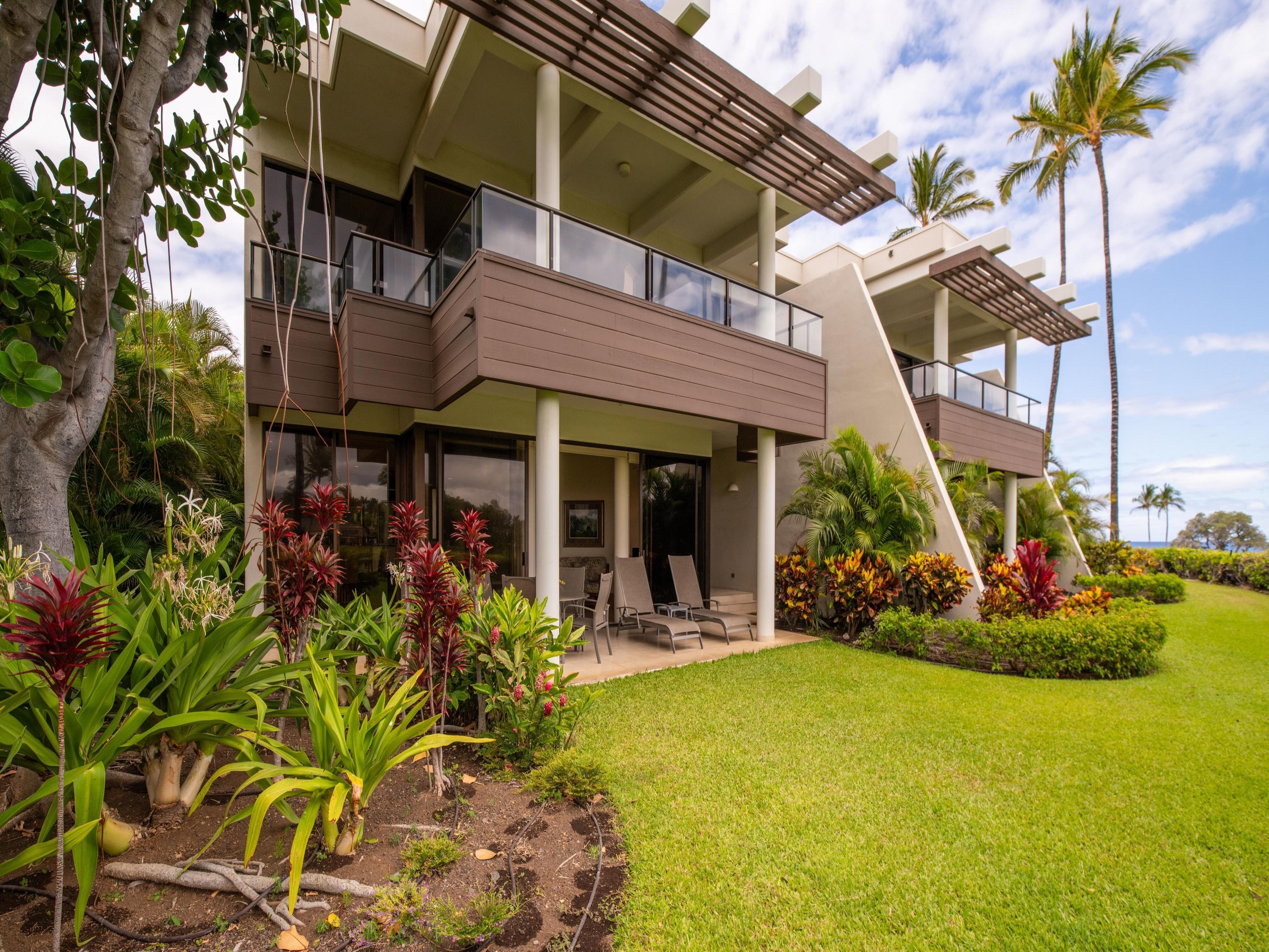 Mauna Lani Point B101 includes 1,169 square feet of thoughtfully designed space, with amenities such as stainless steel appliances, a fully equipped kitchen, and an indoor dining table that seats four. Additional features include a second half bathroom, a washer and dryer, central AC, ceiling fans throughout, and free parking and WiFi. Experience the perfect blend of comfort, luxury, and natural beauty at Mauna Lani Point B101!