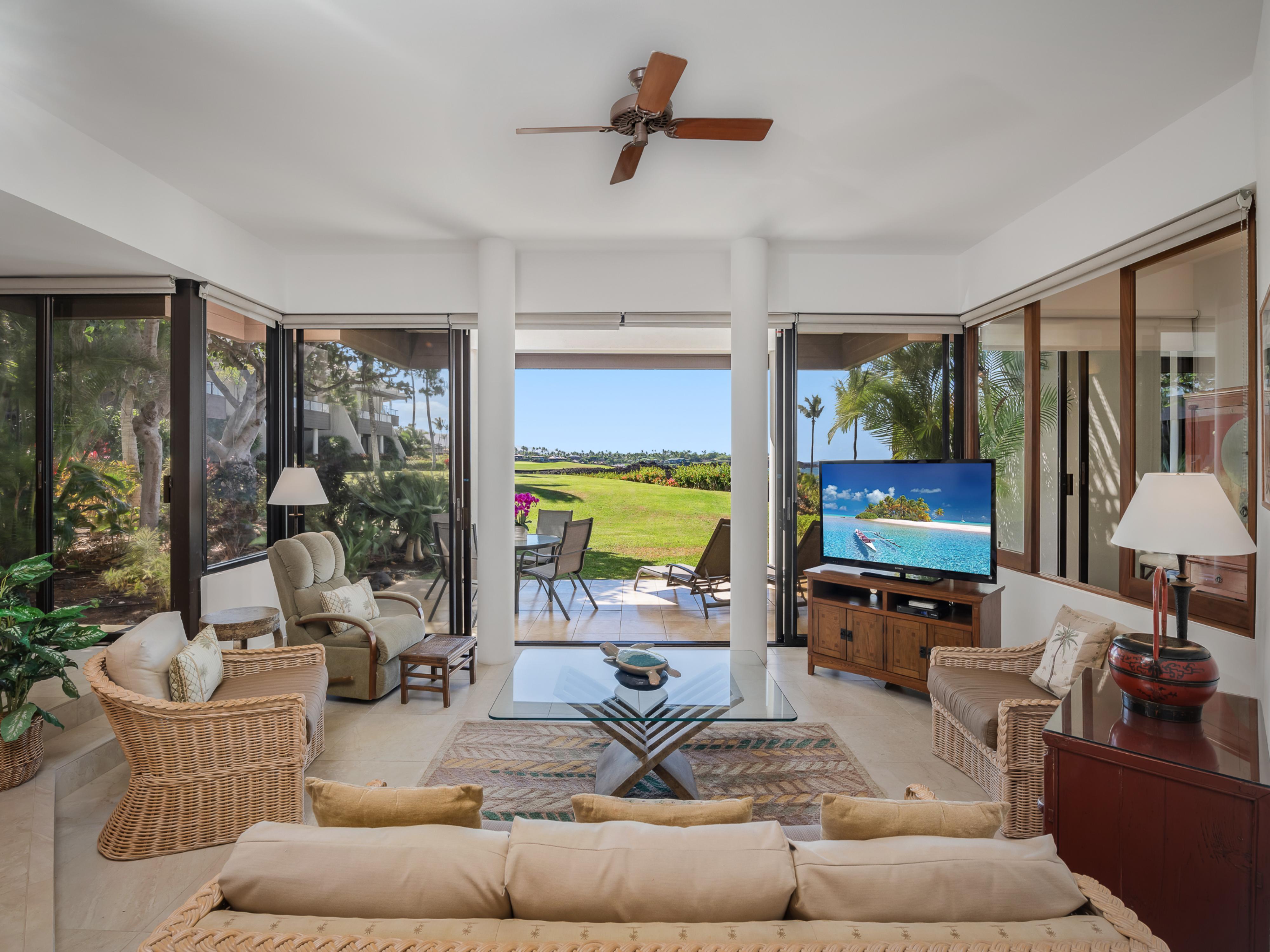 Welcome to the serene and luxurious Mauna Lani Point C104, nestled in the heart of Kamuela, Hawaii. This stunning 2-bedroom, 2-full-bathroom, and 1-half-bathroom vacation rental offers a perfect blend of comfort and elegance, ideal for families or groups of friends seeking a relaxing getaway.