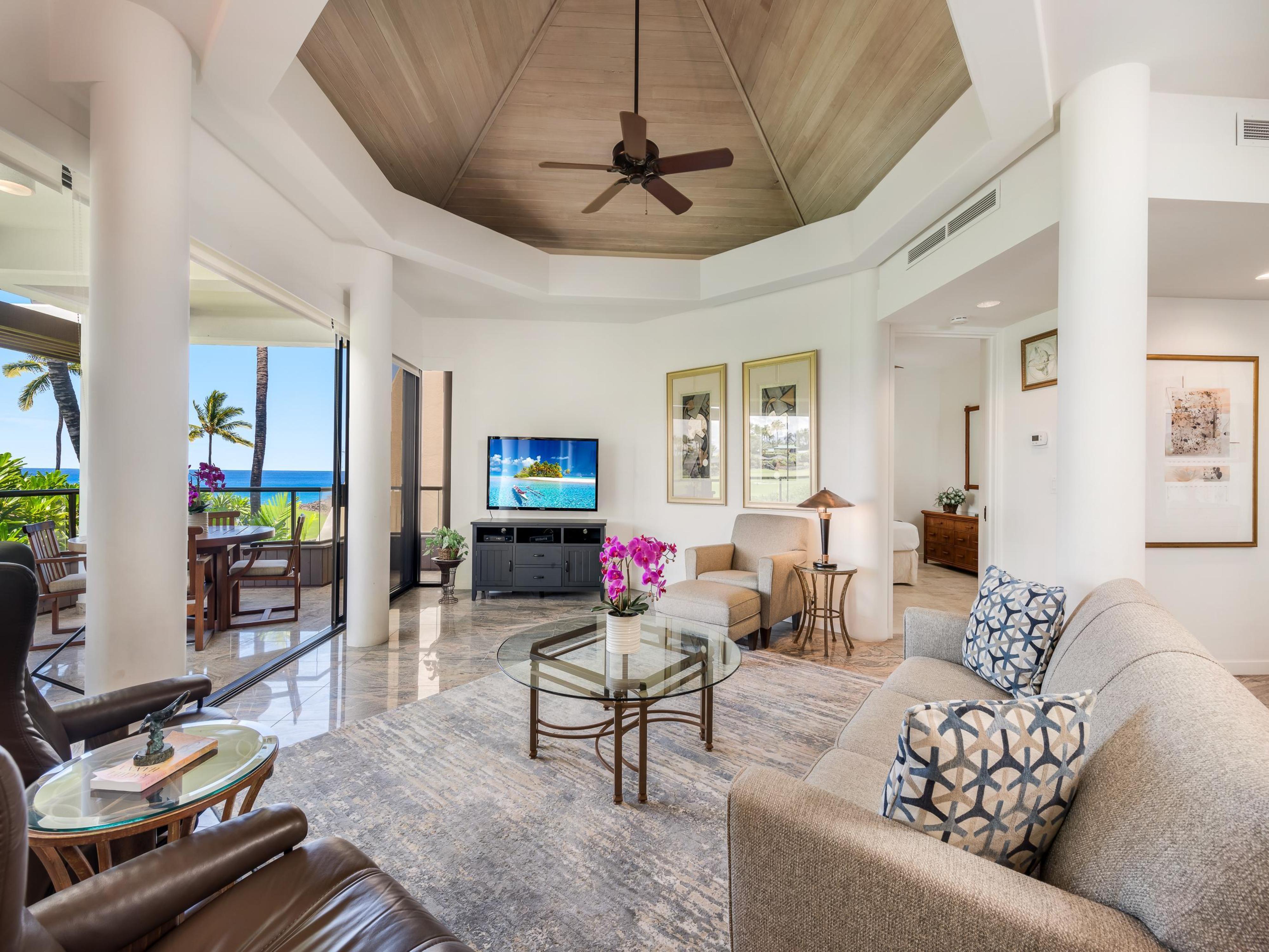 Discover the epitome of relaxation at Mauna Lani Point E205, a stunning second-floor vacation rental that offers breathtaking ocean views. Nestled within the exclusive oceanfront condominium community of Mauna Lani, this two-bedroom, two-and-a-half-bathroom townhome provides an idyllic escape on the Big Island.