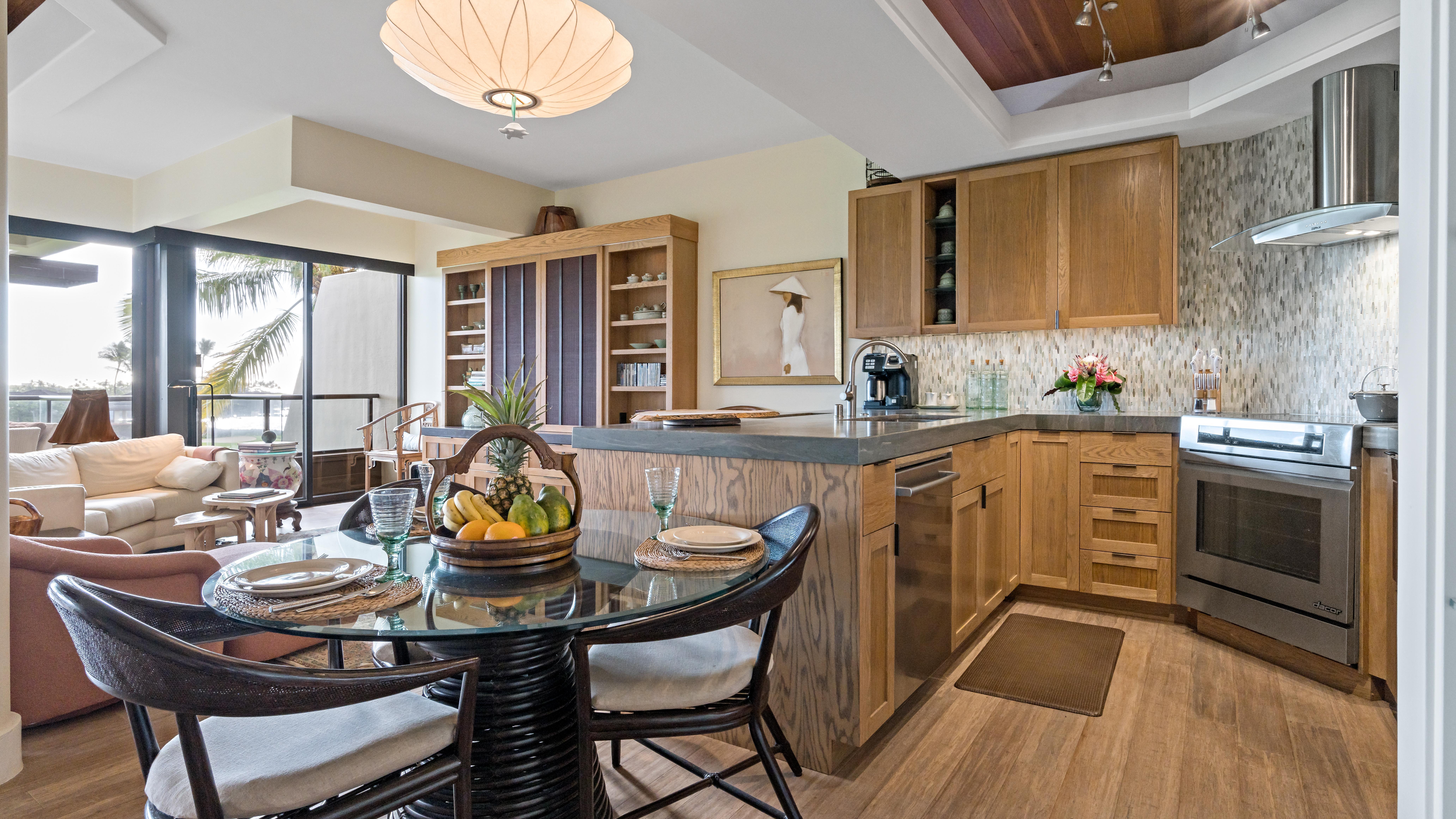 Step out onto the private lanai and be mesmerized by the stunning vistas of the Pacific Ocean and the lush fairways of the Mauna Lani Golf Course. Enjoy your morning coffee or unwind with a glass of wine while taking in the vibrant sunsets.