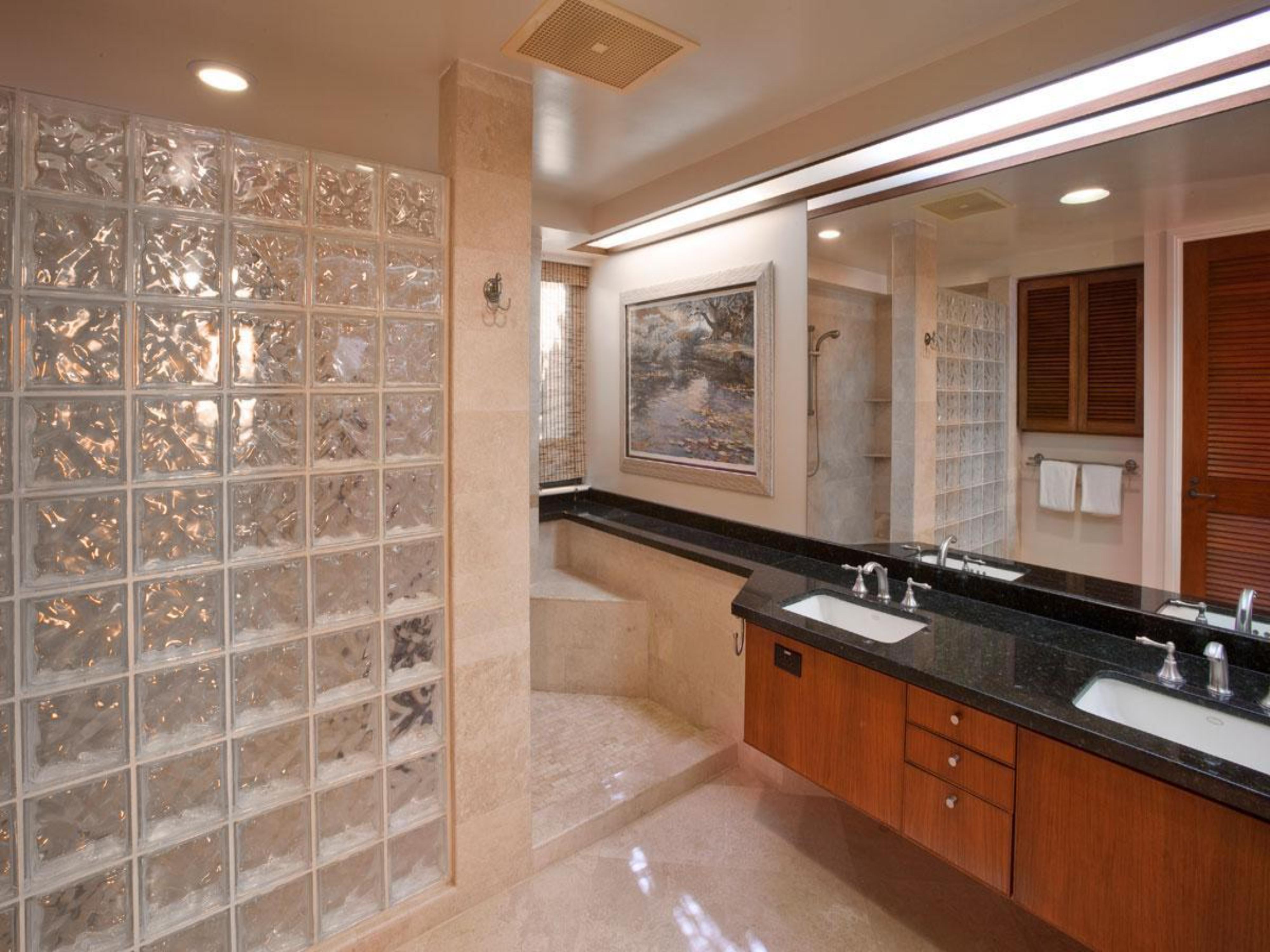 The primary bedroom enjoys private access out onto the primary ocean view lanai as well. The bedroom features a king bed and en-suite bathroom with oversized glass brick shower with multiple shower heads. The second bedroom, located on the opposite side of the condo for privacy, has two twin beds. A giant window dominates most of one wall, allowing for great natural lighting to spill in and constant views of the tropical grounds. The attached bathroom features a tub/shower combo.