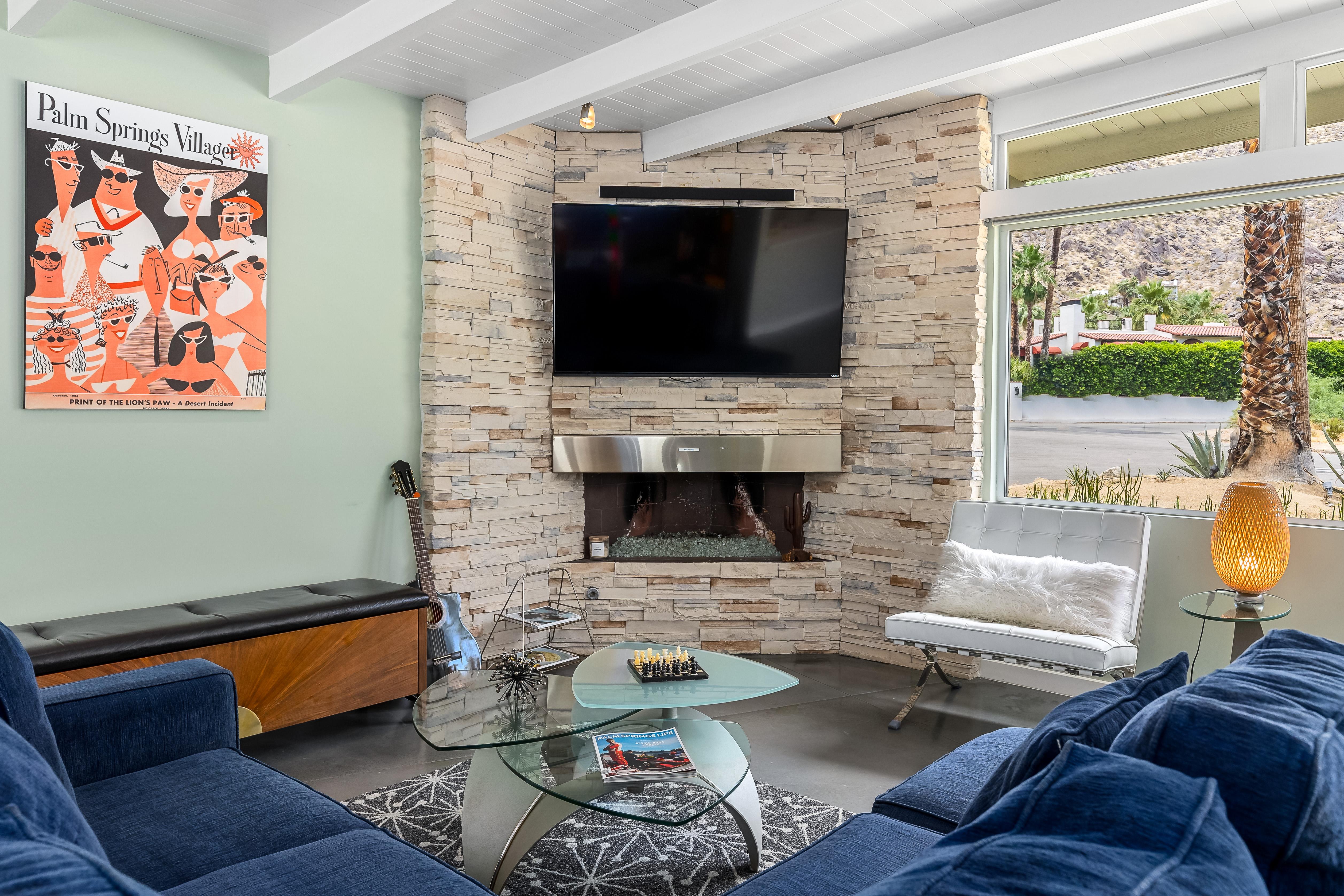 Step into a true Palm Springs icon. This stunning Mid-Century Modern home perfectly captures the timeless glamour of the desert while offering every modern comfort you could wish for. With its clean architectural lines, curated interiors, and a seamless indoor-outdoor flow, this 2-bedroom, 2-bath retreat delivers the ultimate Palm Springs vacation experience. Outside, a private pool, bubbling spa, and dramatic mountain views set the stage for relaxation and style. Beds: K, Q