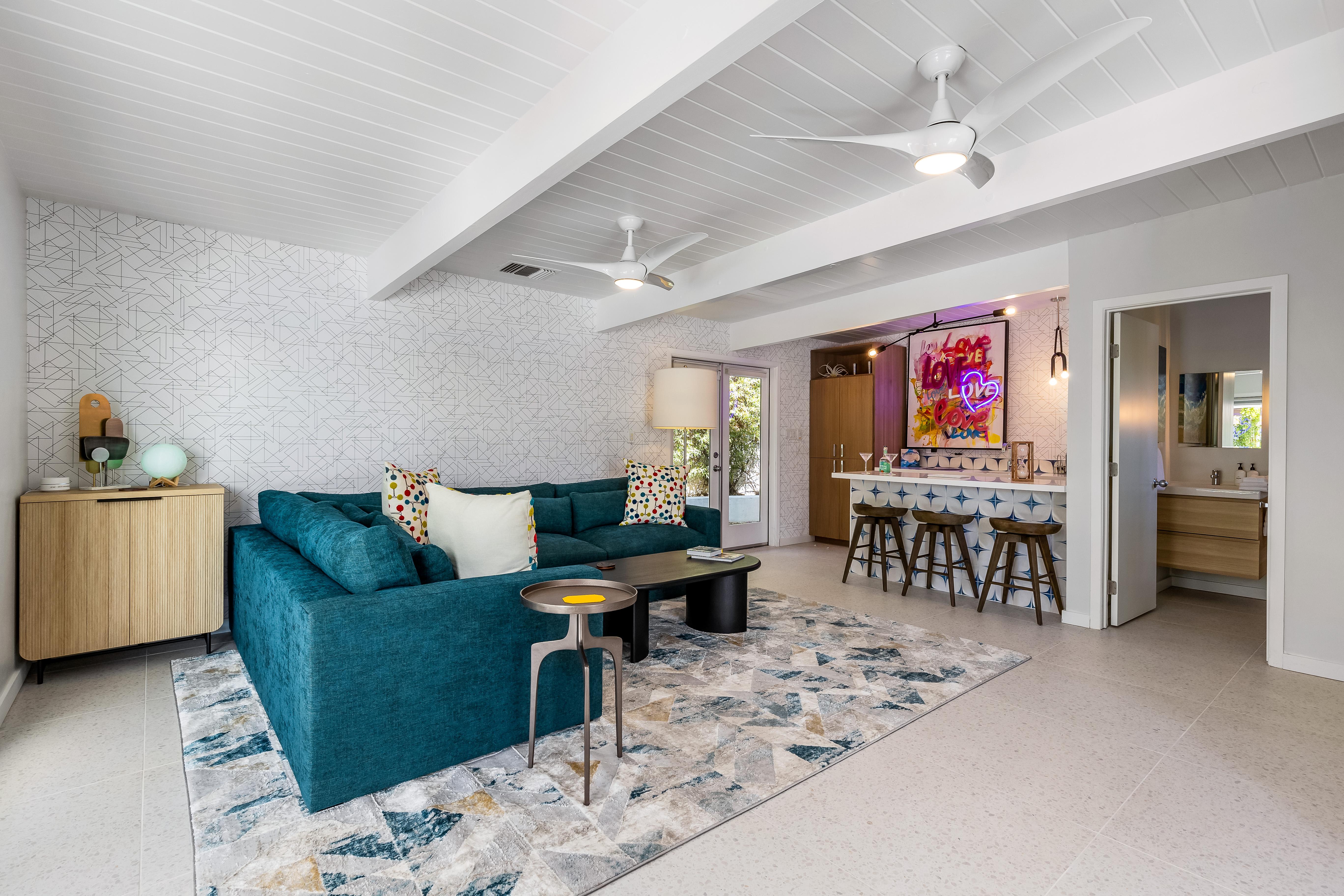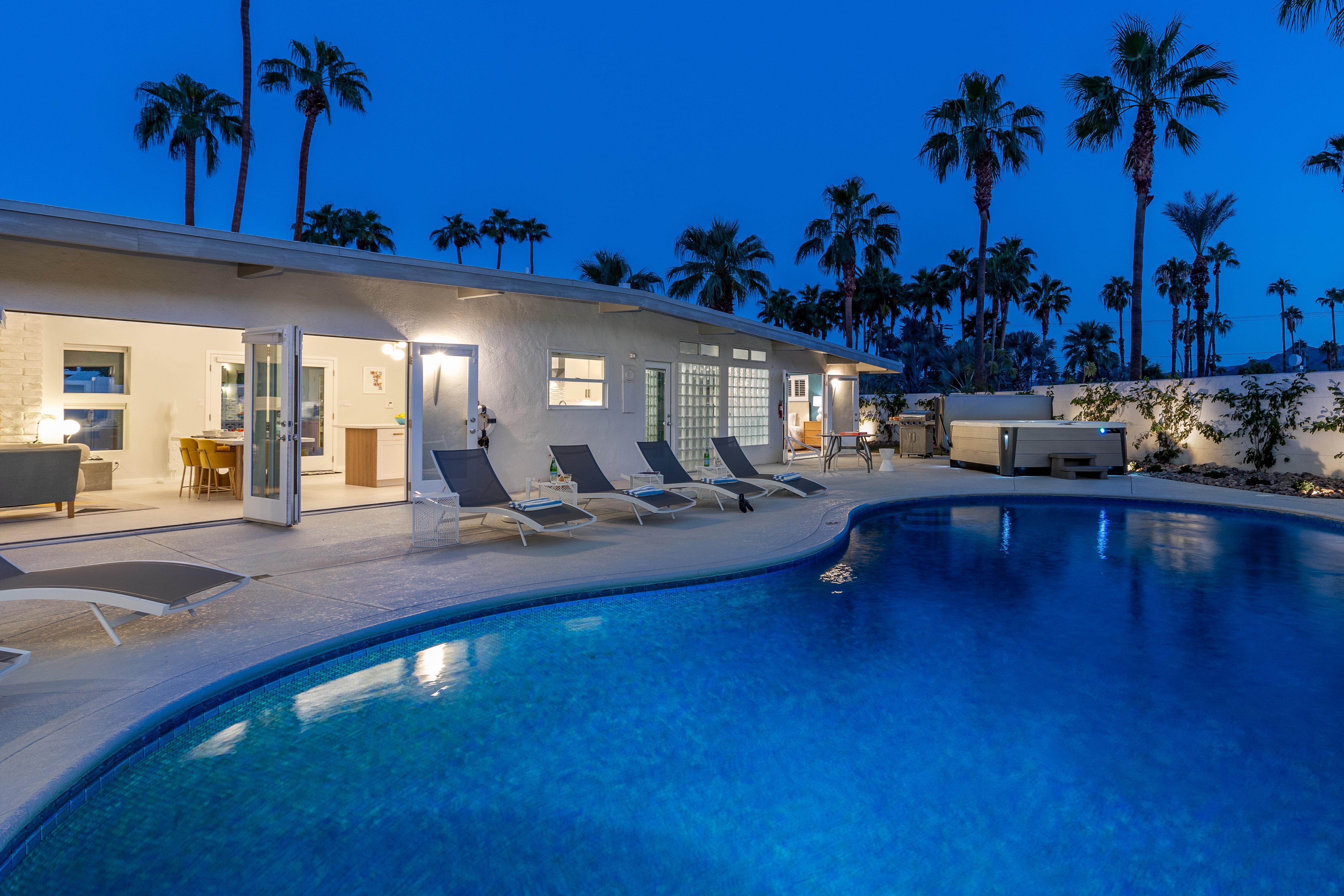 Stunning 1950s executive home in the middle of Palm Springs. This spacious vacation rental has been totally updated for the way we live today. Visitors will immediately notice the fun pops of color and artwork throughout the home, with bright, open spaces for ample natural light. This property has recently been upgraded with all new flooring, décor, furniture, lush landscaping and newly designed kitchen. The cozy, chic vibes are sure to satisfy any taste, while the backyard oasis will delight sun seekers. Find a large luxe pool and above-ground spa, al fresco dining, and scenic mountain views. Beds: K,Q,K+Sofa Sleeper