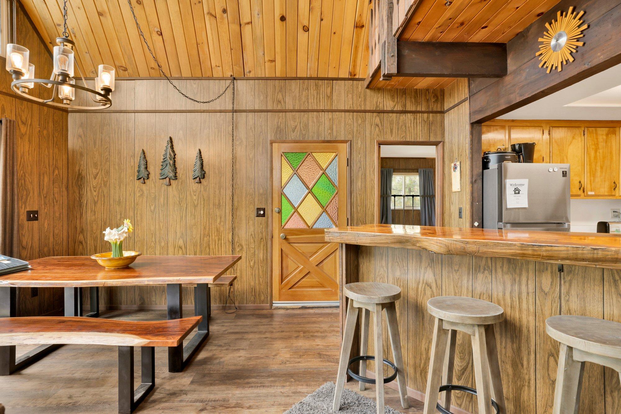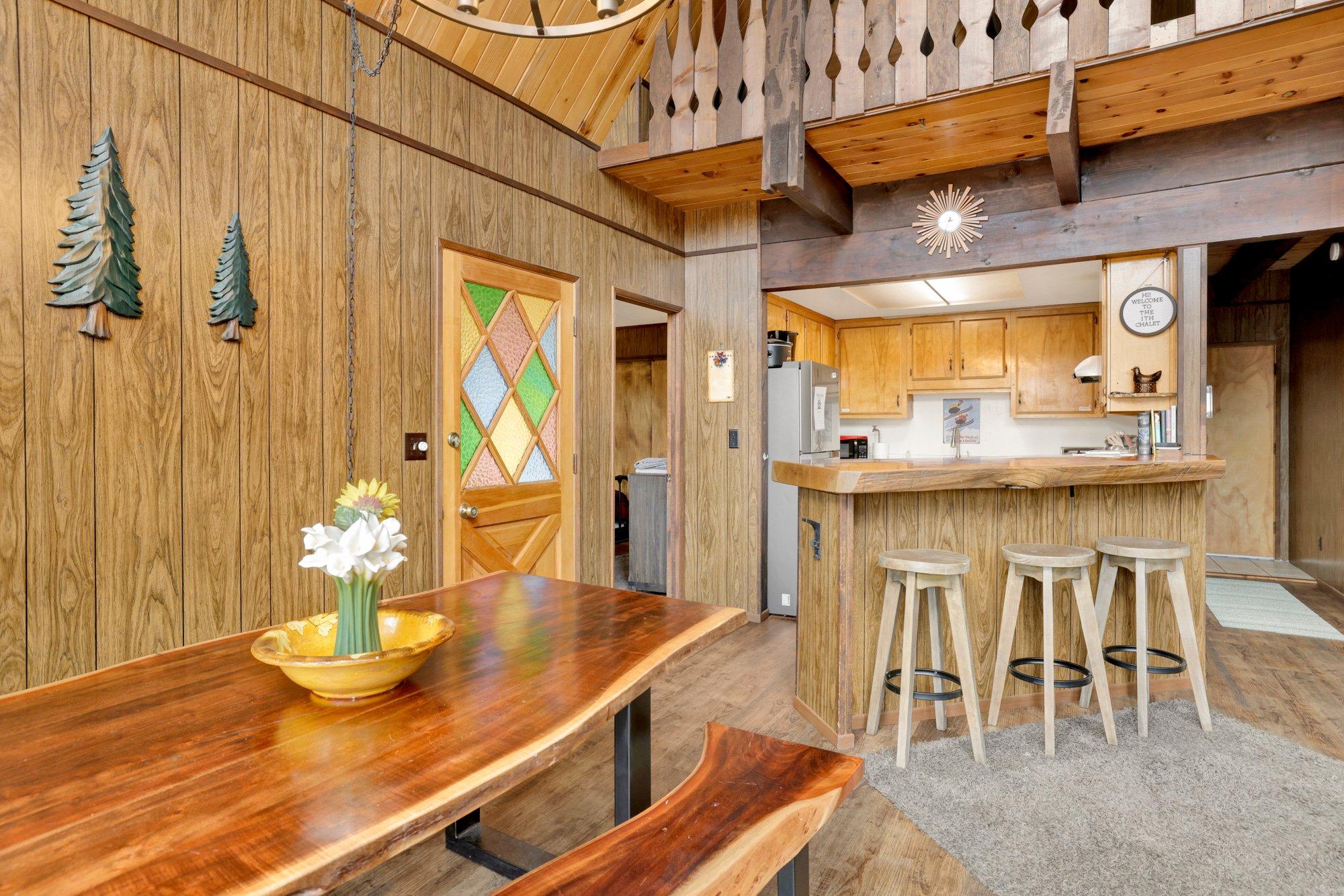 This chalet home comfortably sleeps up to 9 guests, with three well-appointed bedrooms and an upstairs sleeping loft offering a restful retreat. Step outside to enjoy the fresh mountain air on the front porch or unwind in the spacious backyard. In winter months you're just minutes from the slopes, and in summer, the lake, hiking trails, and village events are all within walking distance. Whether you're here for skiing, boating, hiking, or just relaxing by the fire, this charming home is your base for all things Big Bear.