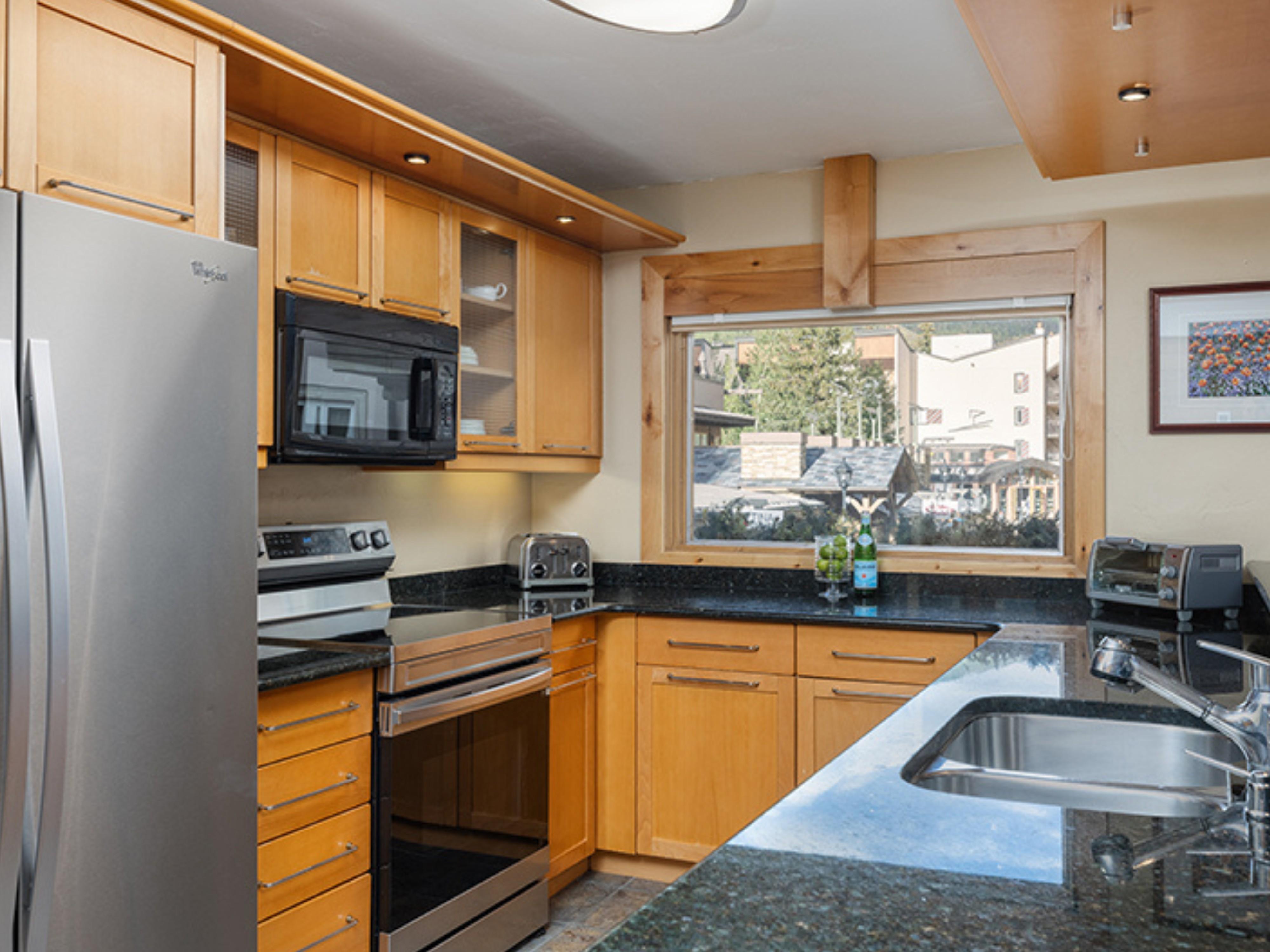Montaneros in Vail 202 is a spacious 1,500 sq ft platinum-rated three-bedroom, two-bath condominium located on the 2nd floor, offering partial Vail Mountain views. This well-appointed condo comfortably sleeps up to eight guests. The master bedroom features a king bed and an en-suite bathroom with a bidet. The second and third bedrooms both offer two twin beds that can be converted into king beds, and share a Jack and Jill bathroom. The living area includes a queen sofa sleeper and a fully equipped kitchen with granite tile floors and stainless steel appliances, perfect for preparing meals and entertaining.