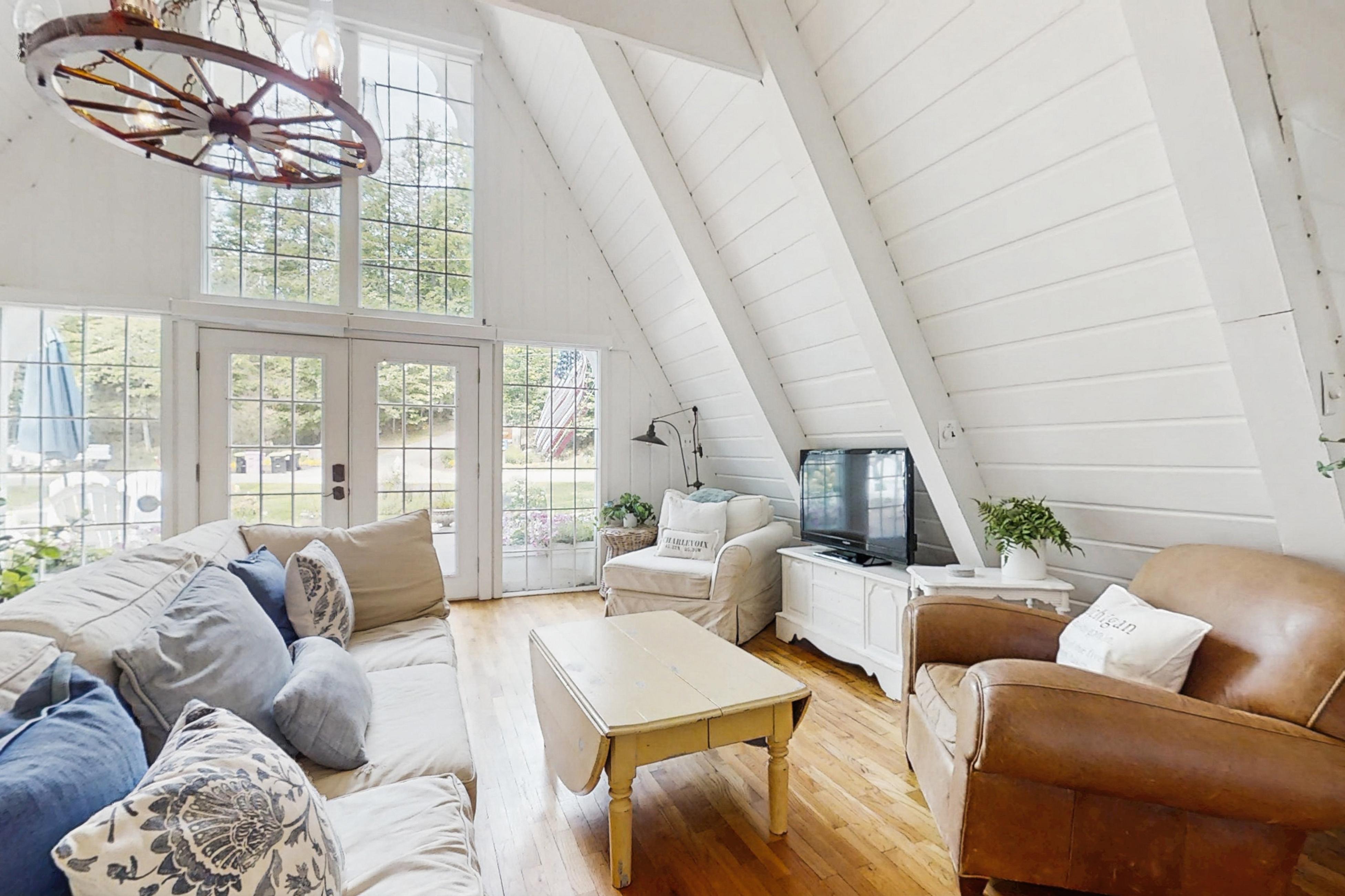 Come and experience a tranquil and unique getaway at this splendid A-Frame cottage near the beach, Mount McSauba Recreation Area, and downtown Charlevoix! The beautiful town of Charlevoix and its award-winning harbor (Round Lake) are just a short walk away. You can also walk to Lake Michigan and Lake Charlevoix beaches. Outdoor enthusiasts can find hiking and skiing options nearby as well as the North Point Nature Preserve. There is a bike path all the way to Petoskey. This charming cottage is on the route for the Charlevoix Marathon (every June). Other fantastic attractions include Mount McSauba, Mount McSauba Recreation Area, Lake Michigan beaches and sand dunes, Earl Young Mushroom House Tour, North Point Nature Preserve beaches and dunes, Depot Beach, Michigan Beach Park, Bay Harbor, Petoskey, and Harbor Spring, among others.