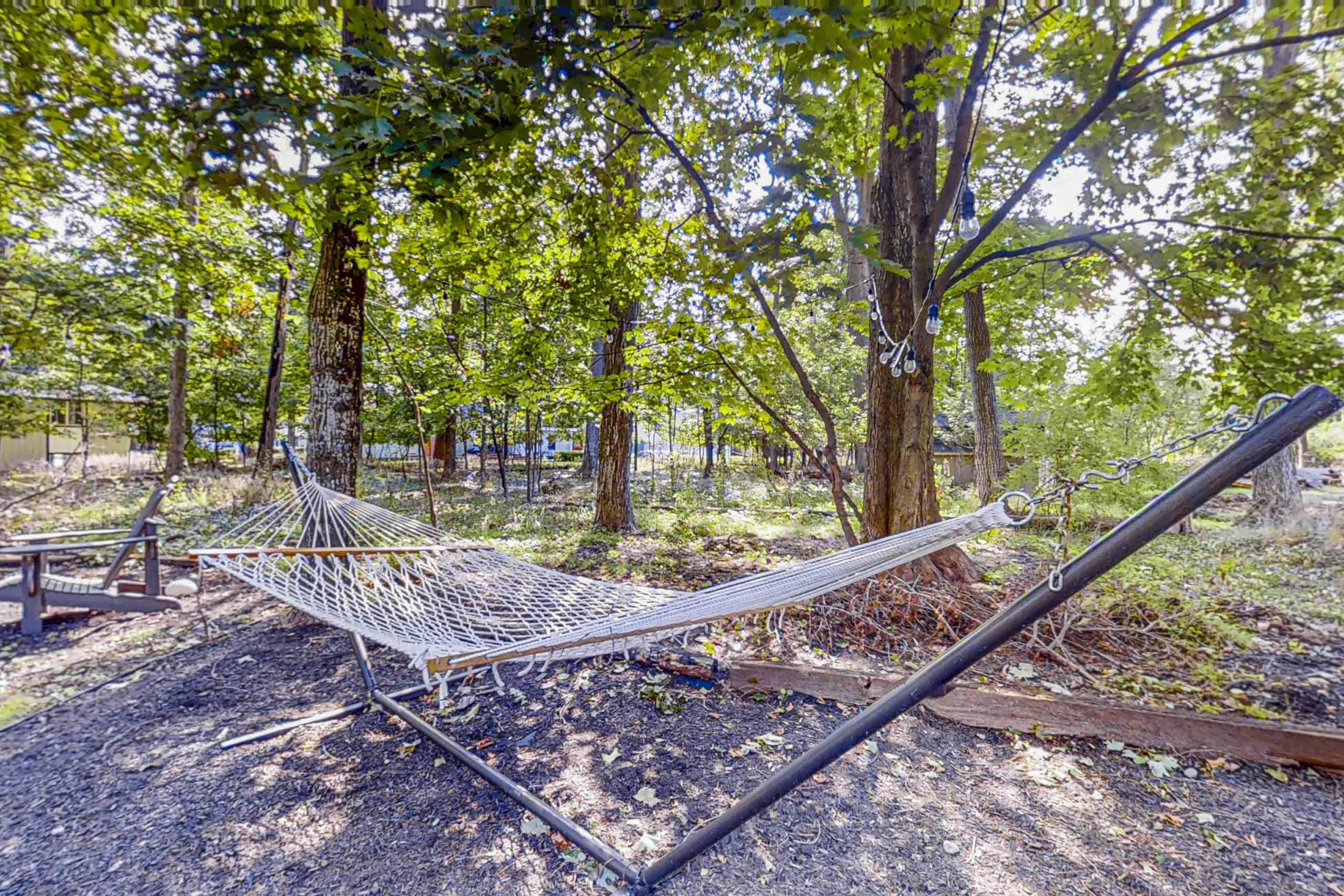 This gorgeous retreat offers a great outdoor space to unwind and create everlasting memories with your loved ones. Spend entertaining evenings on the deck planning your next adventures or enjoying a savory meal alfresco. Host summertime cookouts using the provided gas grill, or challenge your friends to a badminton match. The firepit is a great spot to gather as the sun sets, and there is a large hammock in case you need some time on your own to read your favorite novel or simply rest.